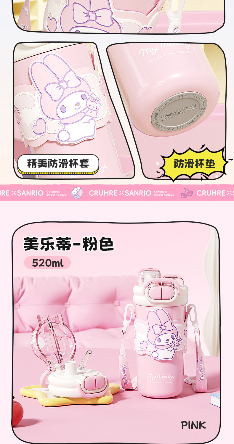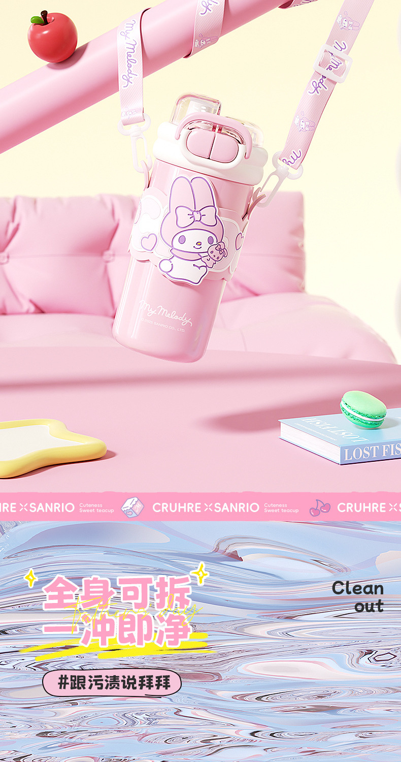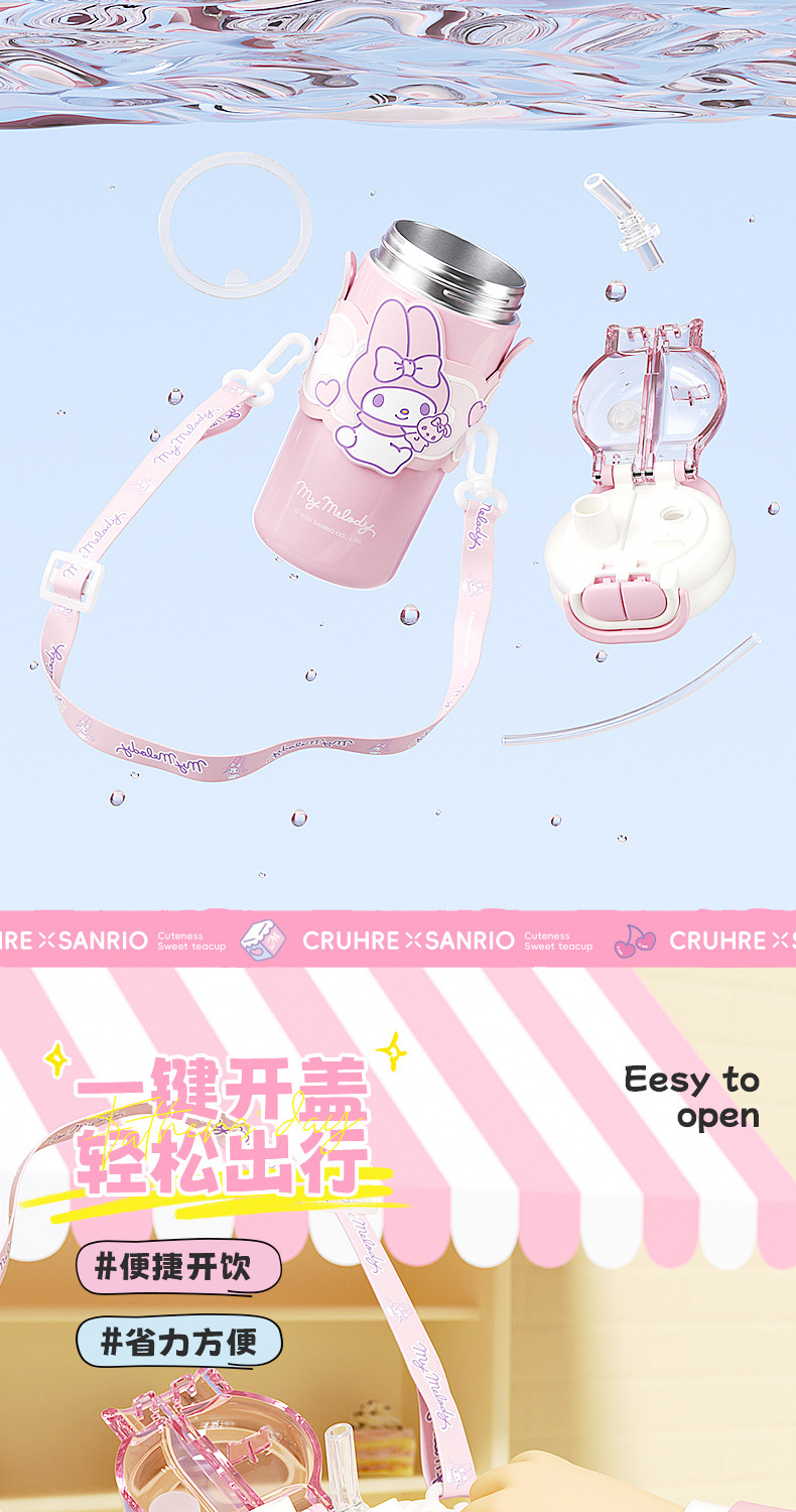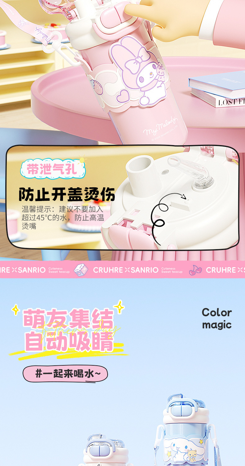Sanrio 정품 공인 더블 드링크 휴대용 보온병 컵 2025 새로운 학교 사용 316 스테인레스 스틸 워터 컵