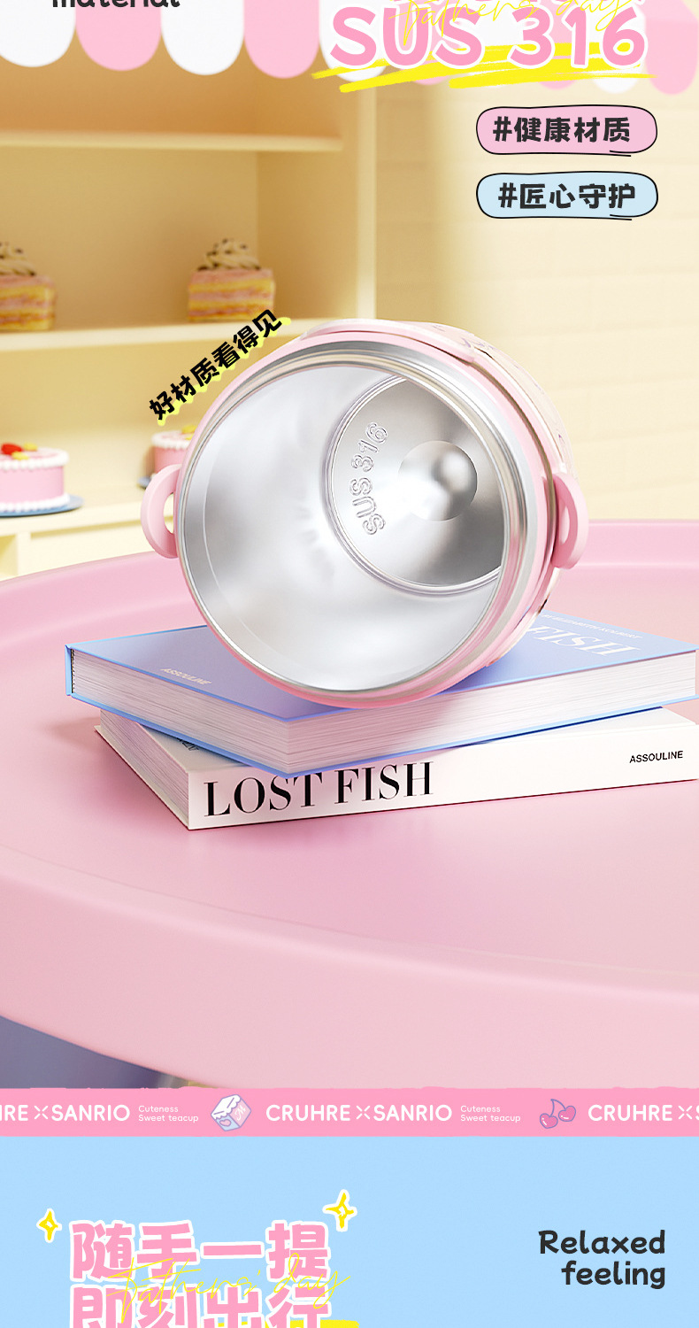 Sanrio 정품 공인 더블 드링크 휴대용 보온병 컵 2025 새로운 학교 사용 316 스테인레스 스틸 워터 컵스토어 가기