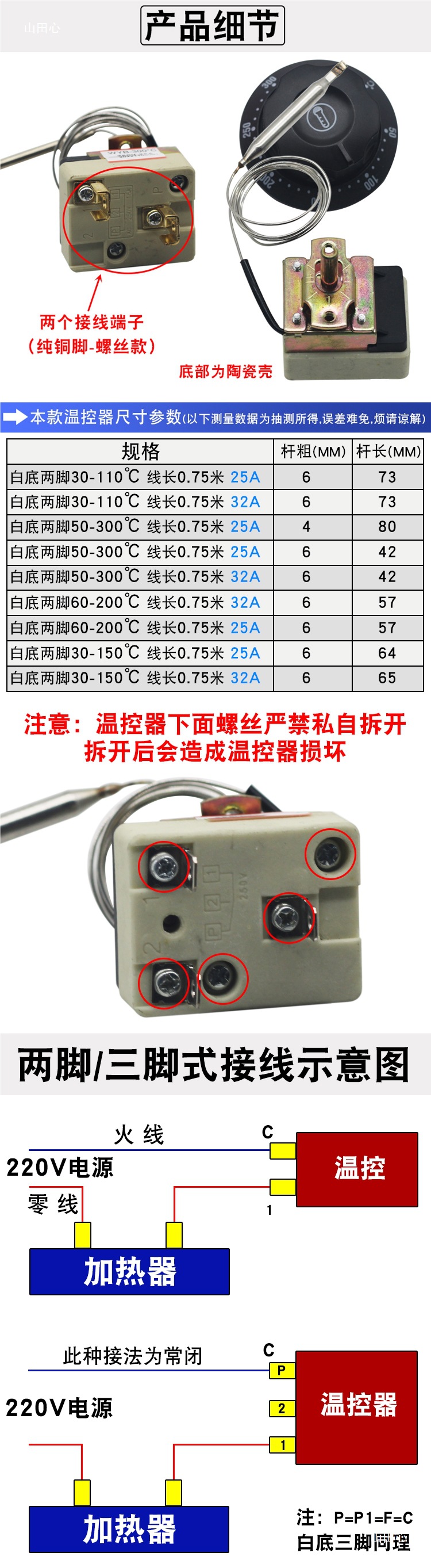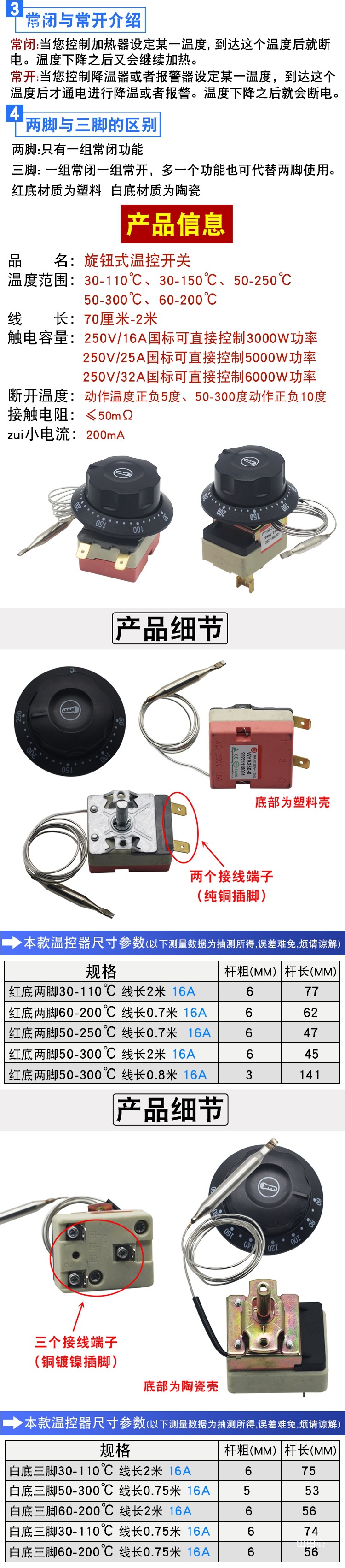 전기 오븐 프라이팬 손잡이 온도 조절기 30-110도 국수 냄비 온도 조절 스위치 전기 프라이팬 프라이팬 컨트롤러