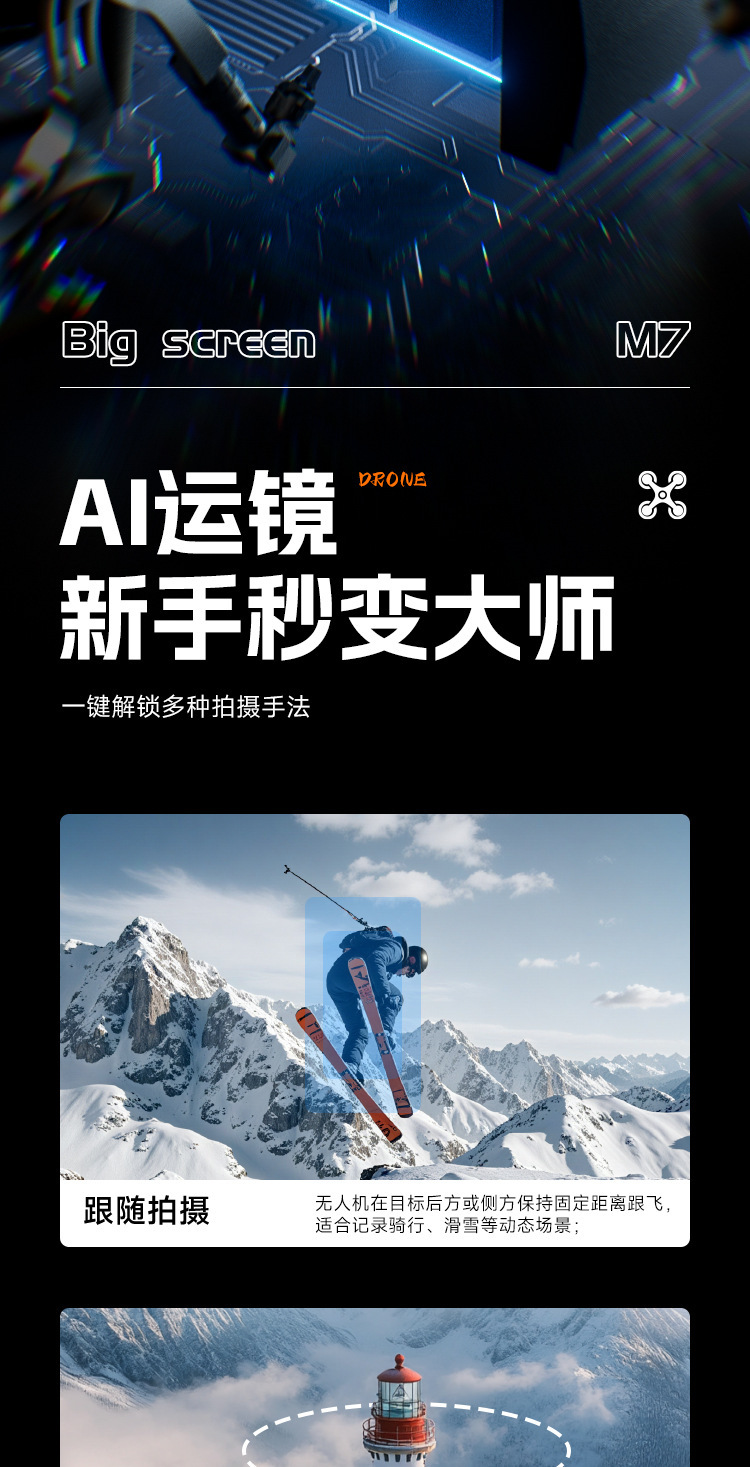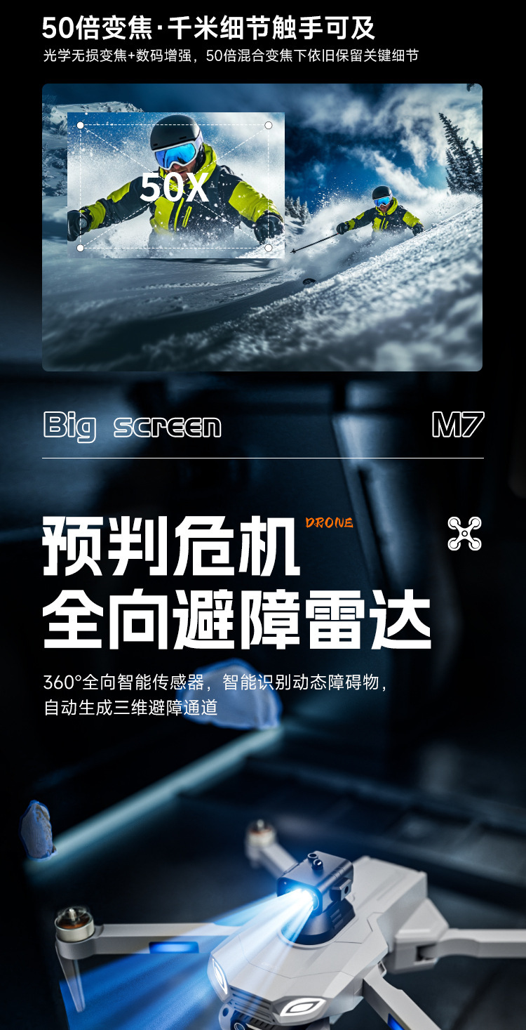 • M7-Black-광학 흐름 GPS 듀얼 카메라 i+브러시리스 장애물 회피 ESC+4.5 화면 제어