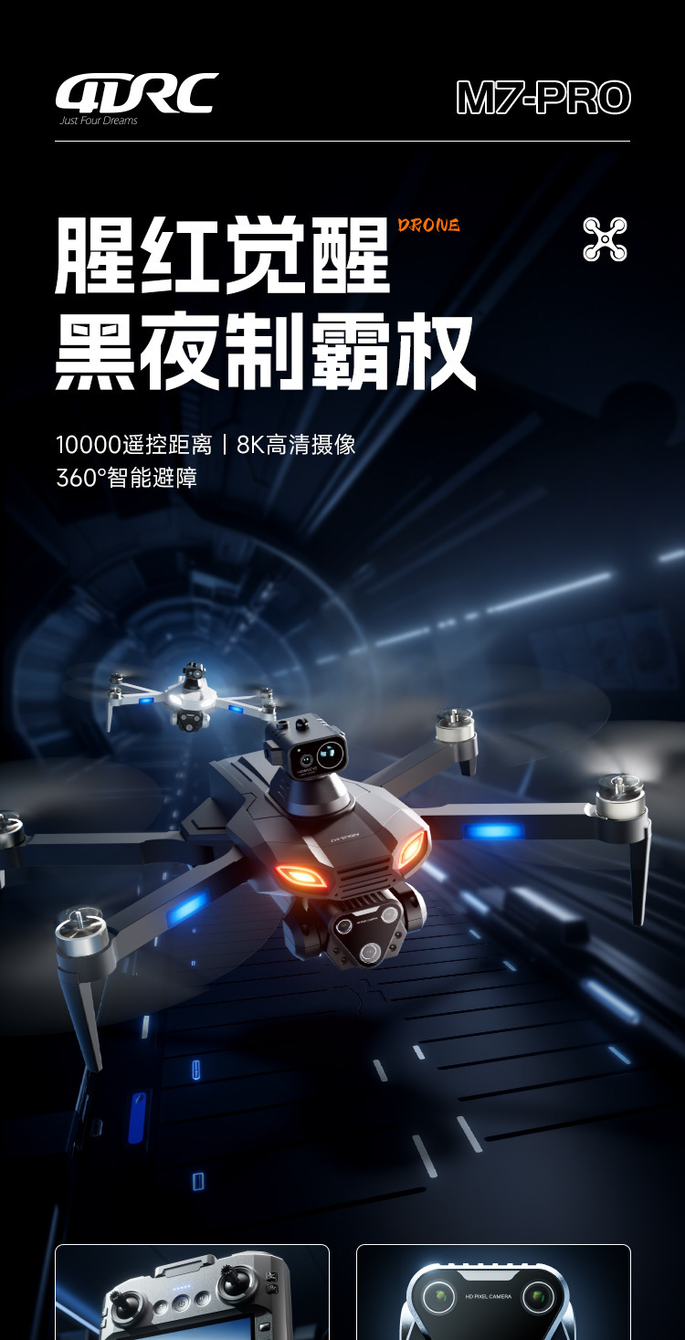 국경 간 새로운 M7 드론 8K HD 항공 사진 장애물 회피 항공기 GPS 대형 브러시리스 4DRC Professional 4.5inch 대형 스크린스토어 가기