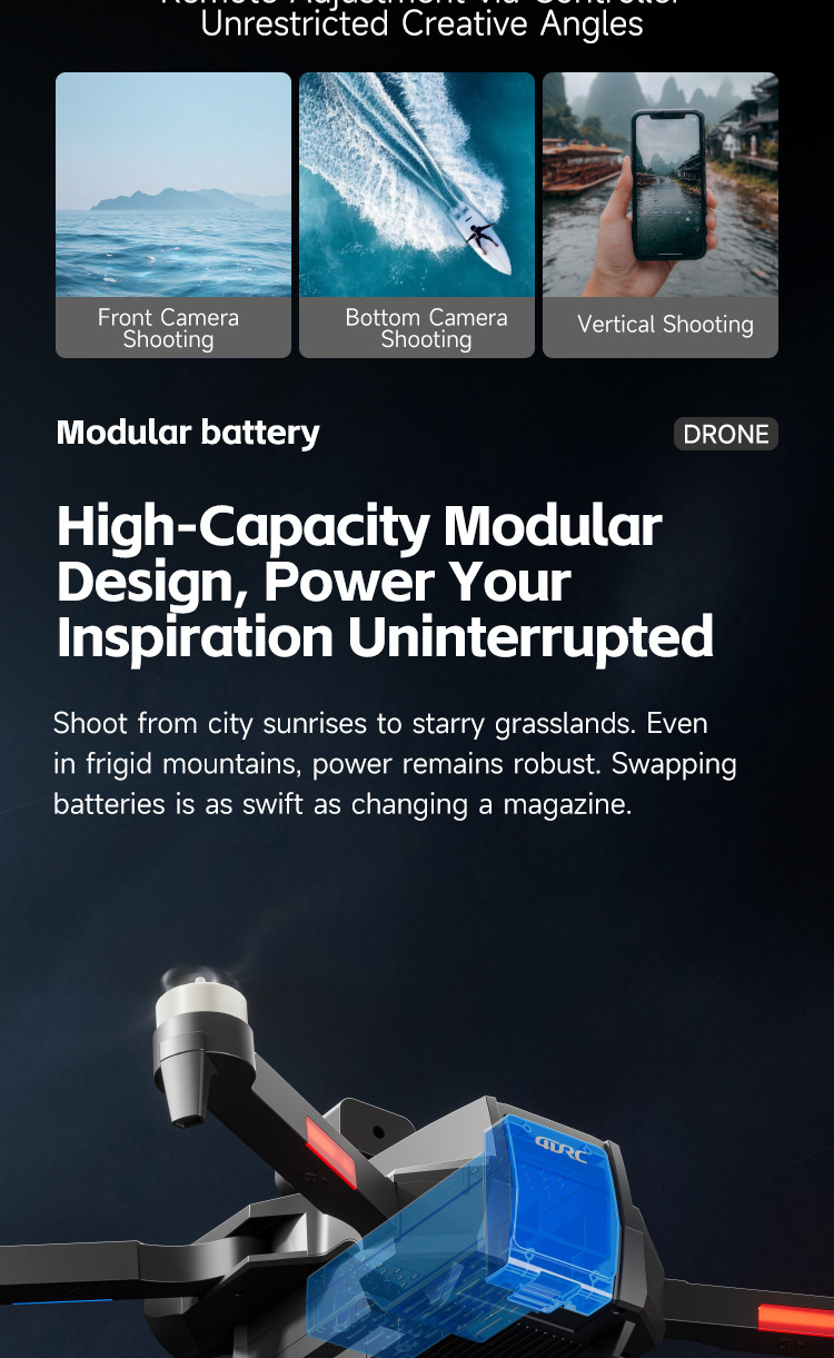 • M7-블랙-광학 흐름 WiFi 듀얼 카메라 + 브러시리스 장애물 회피 ESC + 4.5 화면 제어