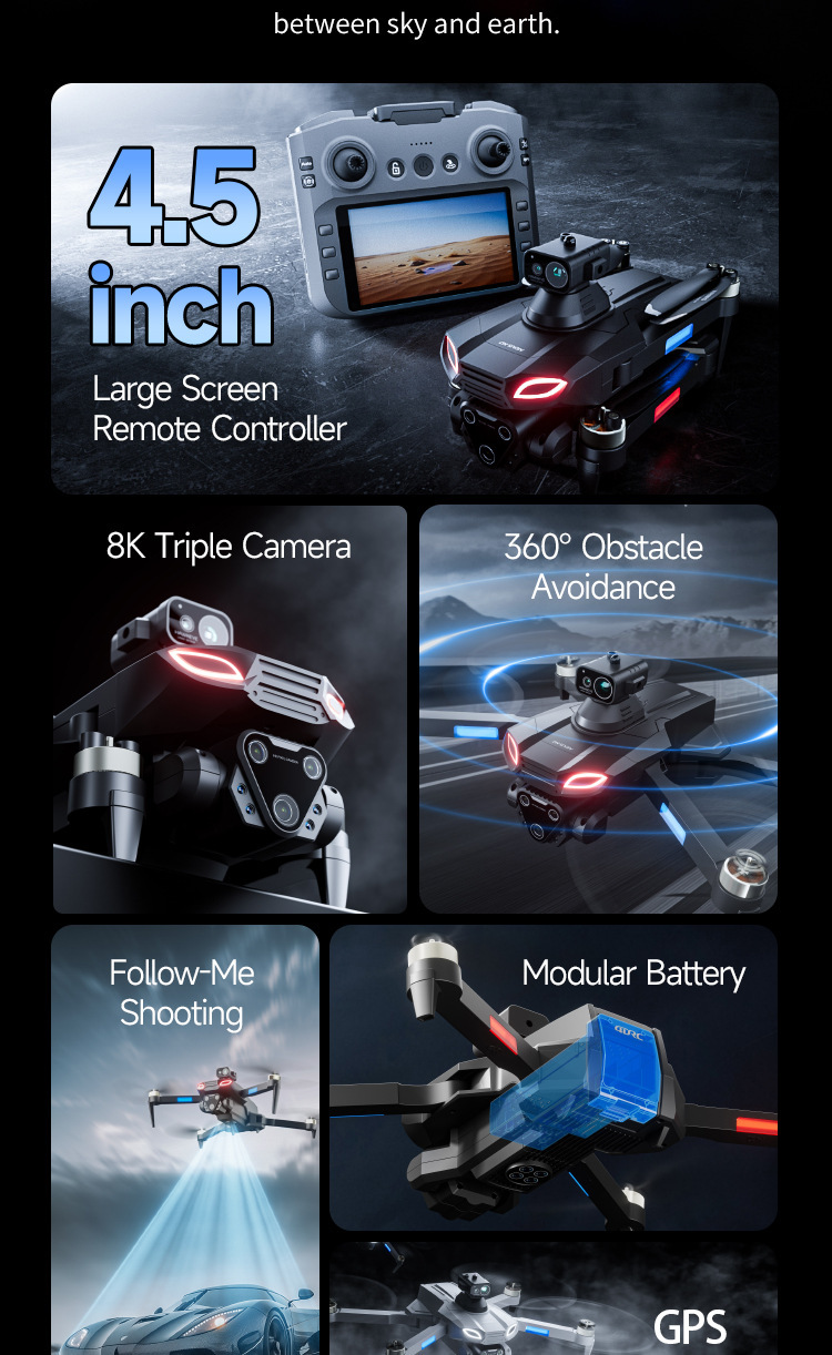 국경 간 새로운 M7 드론 8K HD 항공 사진 장애물 회피 항공기 GPS 대형 브러시리스 4DRC Professional 4.5inch 대형 스크린