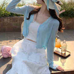 니트 스웨터 여성용 자외선 차단 카디건 얇은 2025 새로운 느슨한 짧은 숄 코트 블라우스 탑스토어 가기