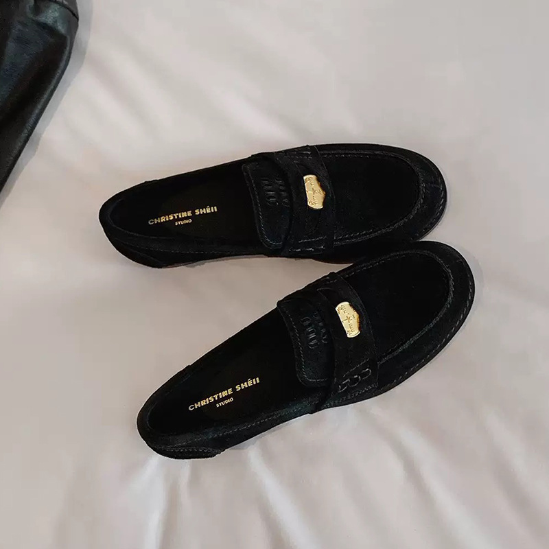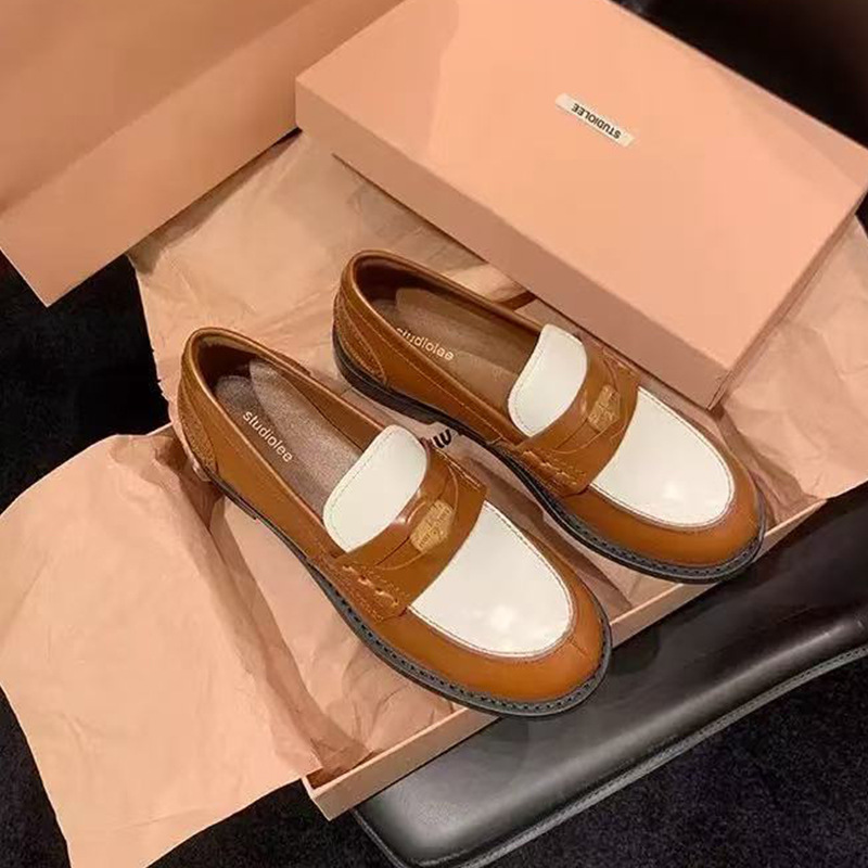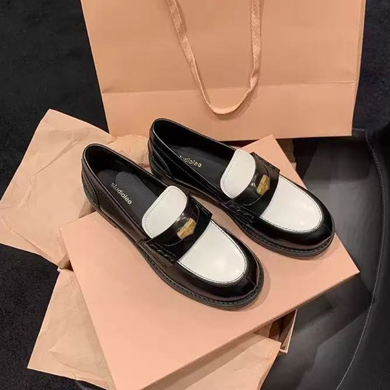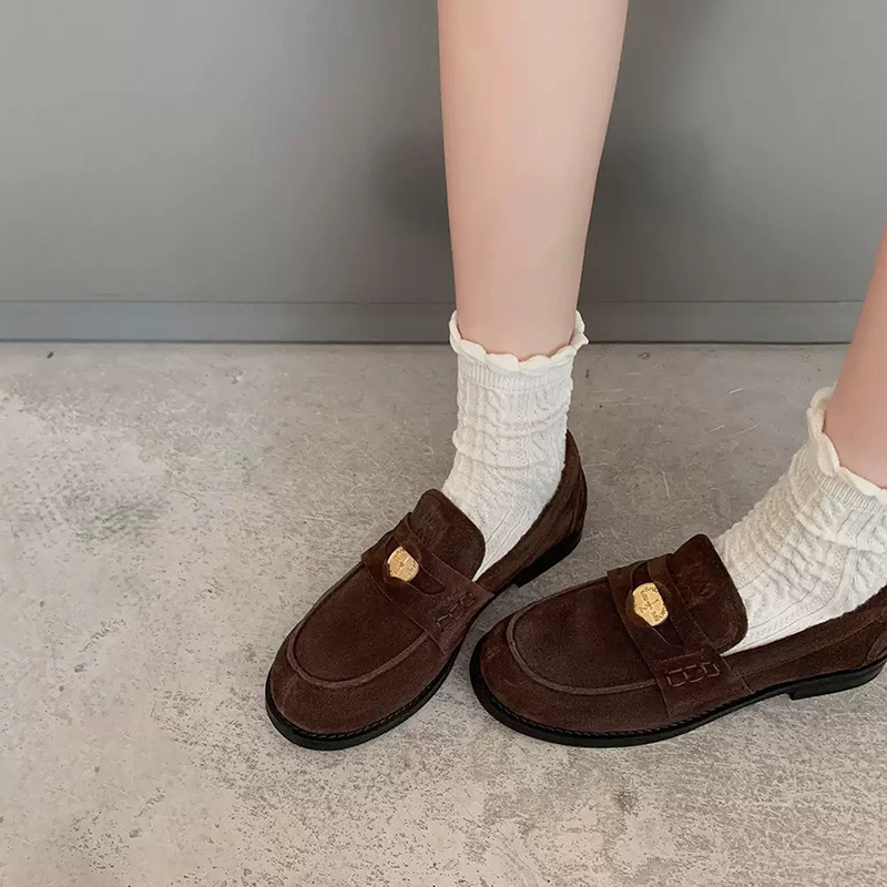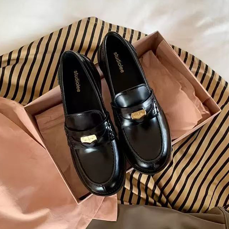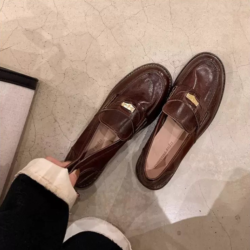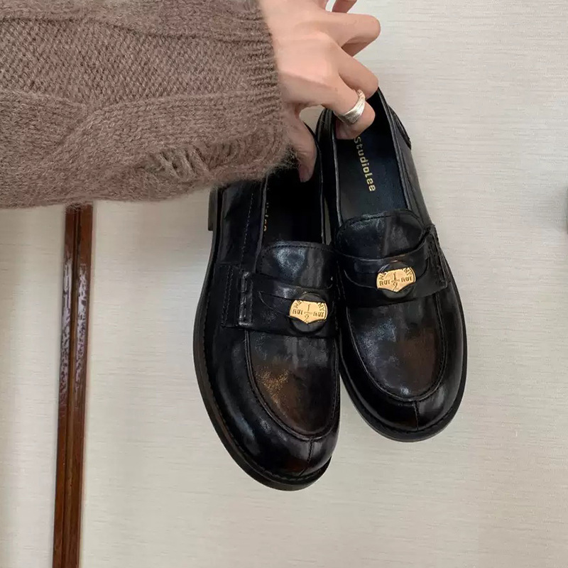 말가죽 버전 정품 가죽 복고풍 클래식 다용도 둥근 발가락 작은 금화 발을 보여주는 작은 낮은 굽 게으른 영국 스타일 여성용 로퍼