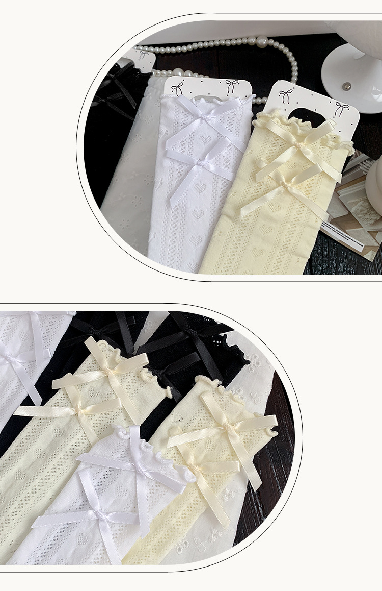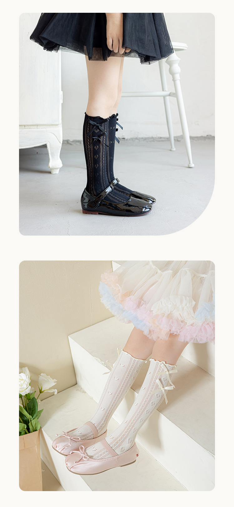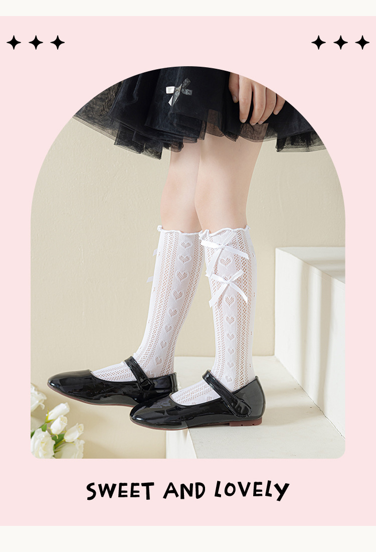Misscucudog 어린이 로리타 양말 여성용 사이드 러브 보우 한국 소녀 레이스 미드 튜브