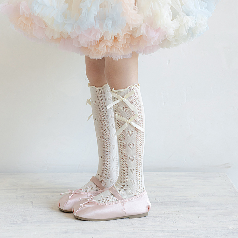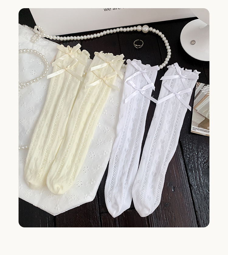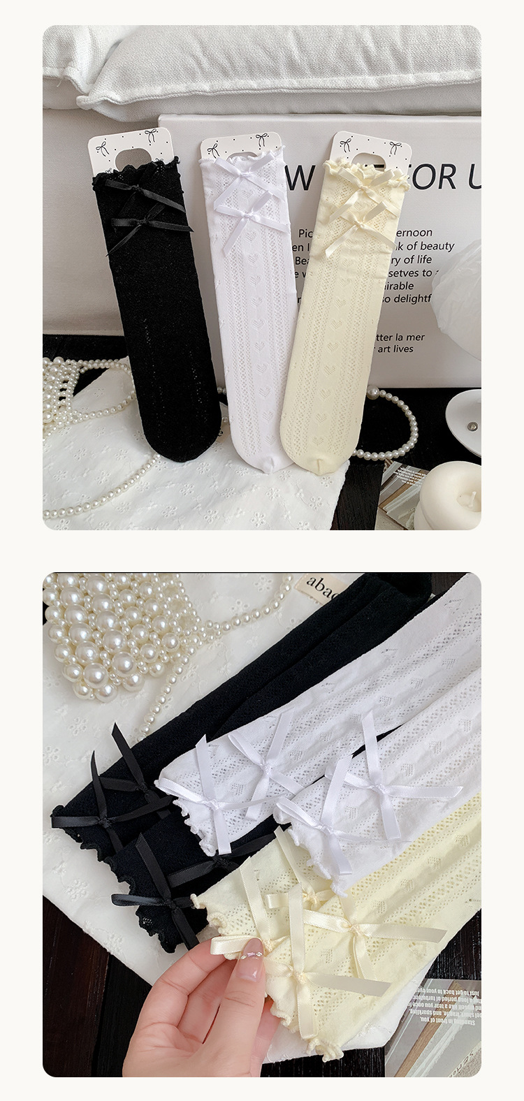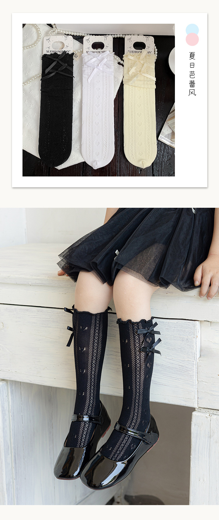 Misscucudog 어린이 로리타 양말 여성용 사이드 러브 보우 한국 소녀 레이스 미드 튜브