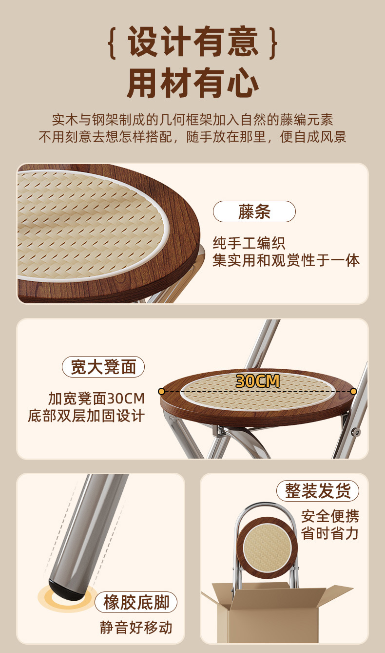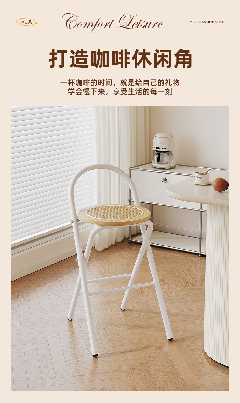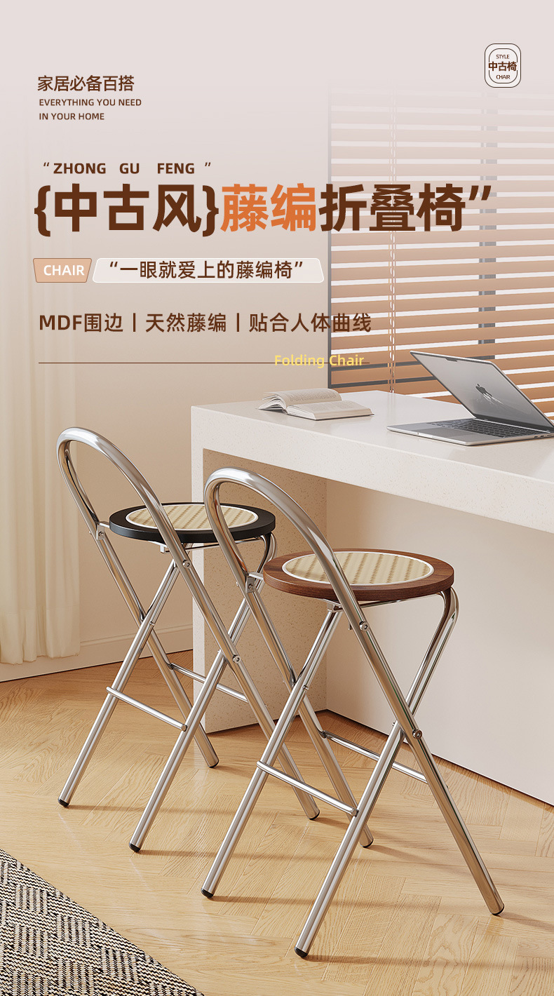 접이식 바 스툴 여름용 낮은 등받이 의자 중고 가정용 레트로 바 의자 PE 라탄 야외 레저 의자 접이식스토어 가기