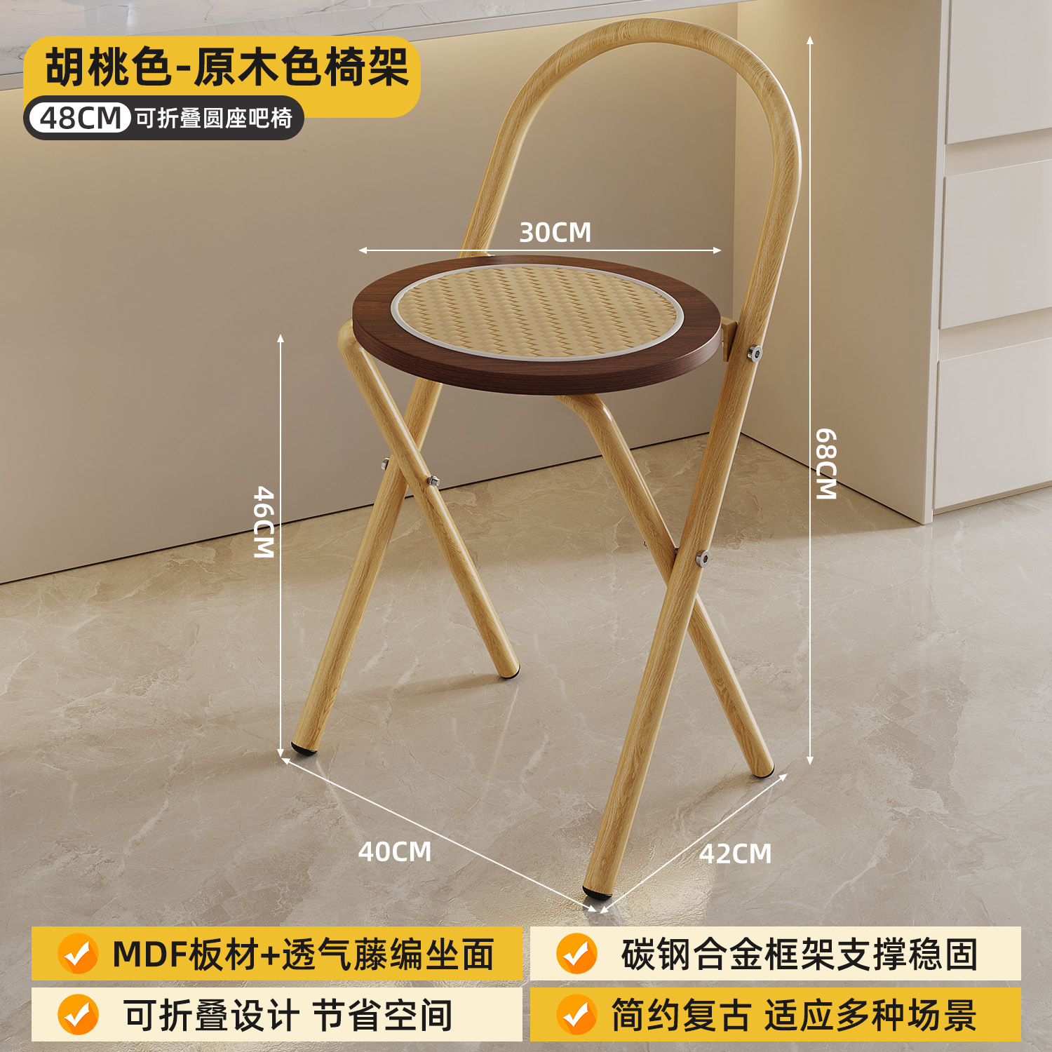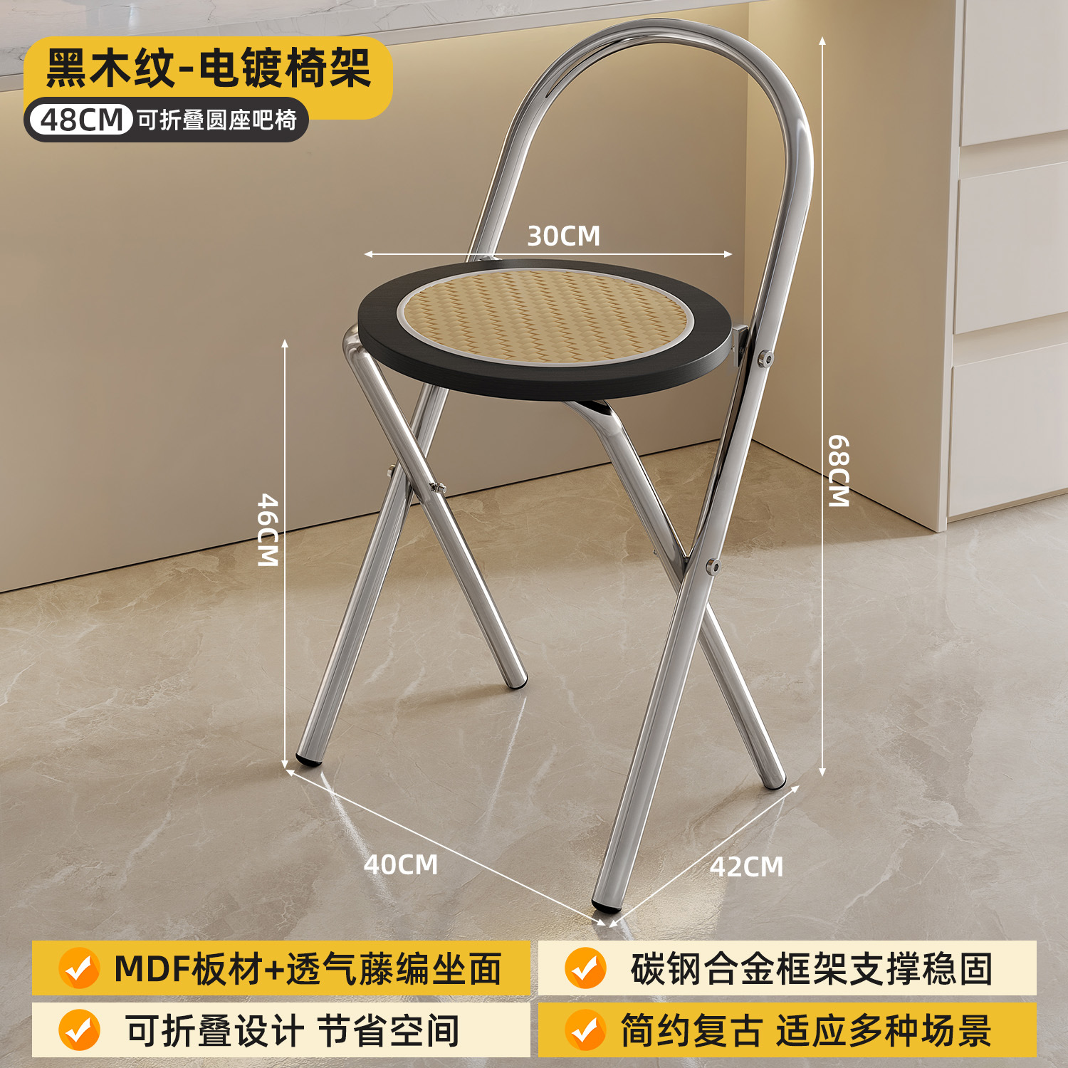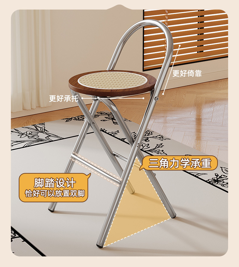 접이식 바 스툴 여름용 낮은 등받이 의자 중고 가정용 레트로 바 의자 PE 라탄 야외 레저 의자 접이식스토어 가기