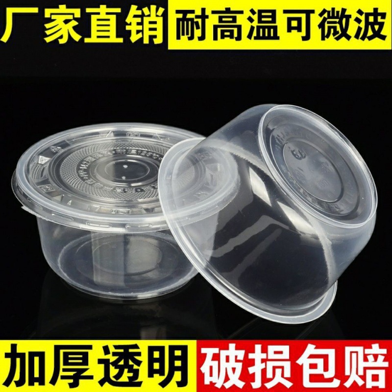 일회용 그릇 플라스틱 원형 도시락 상자 얼음 가루 젤리 그릇 테이크 아웃 포장 상자 뚜껑이있는 상업용 식기스토어 가기