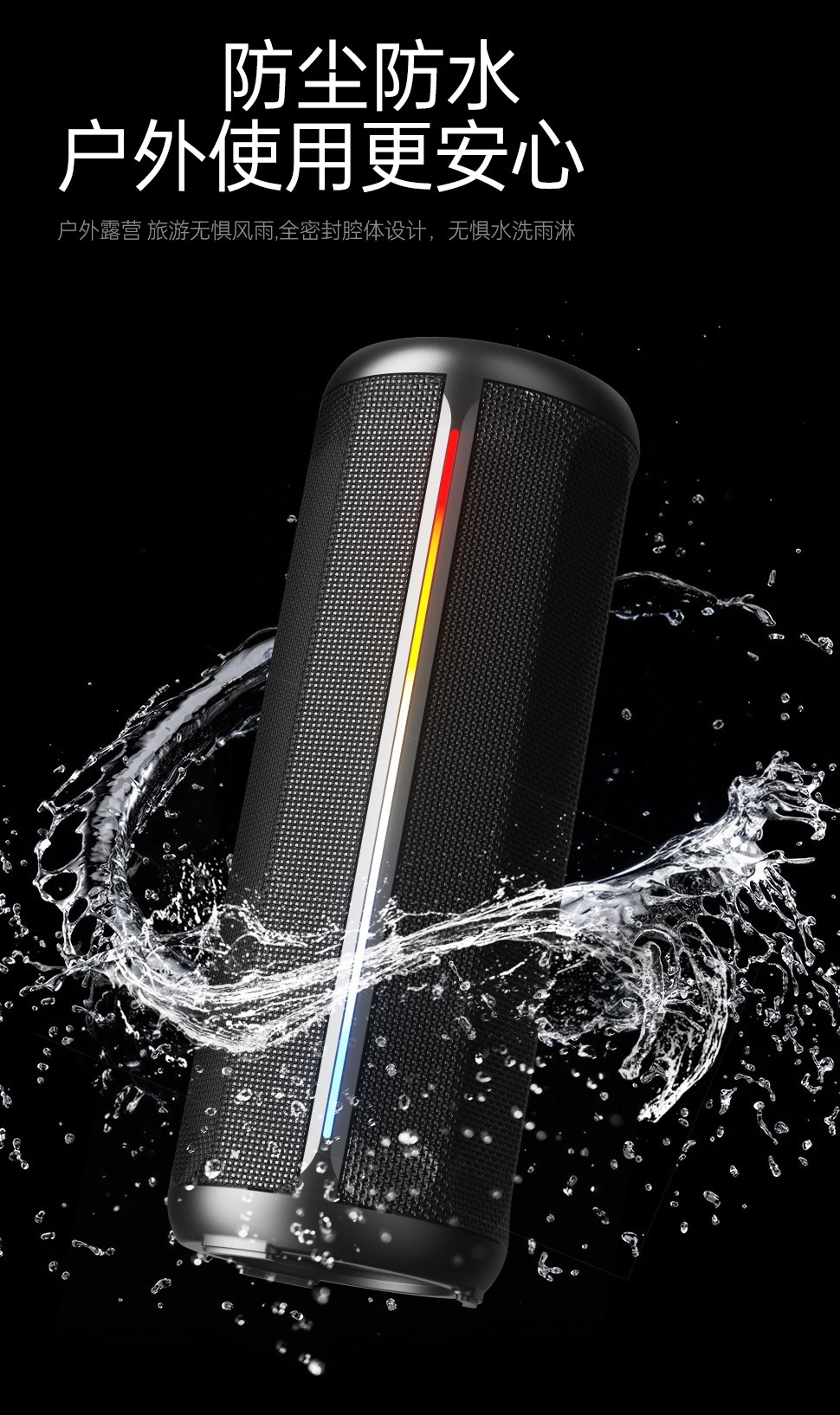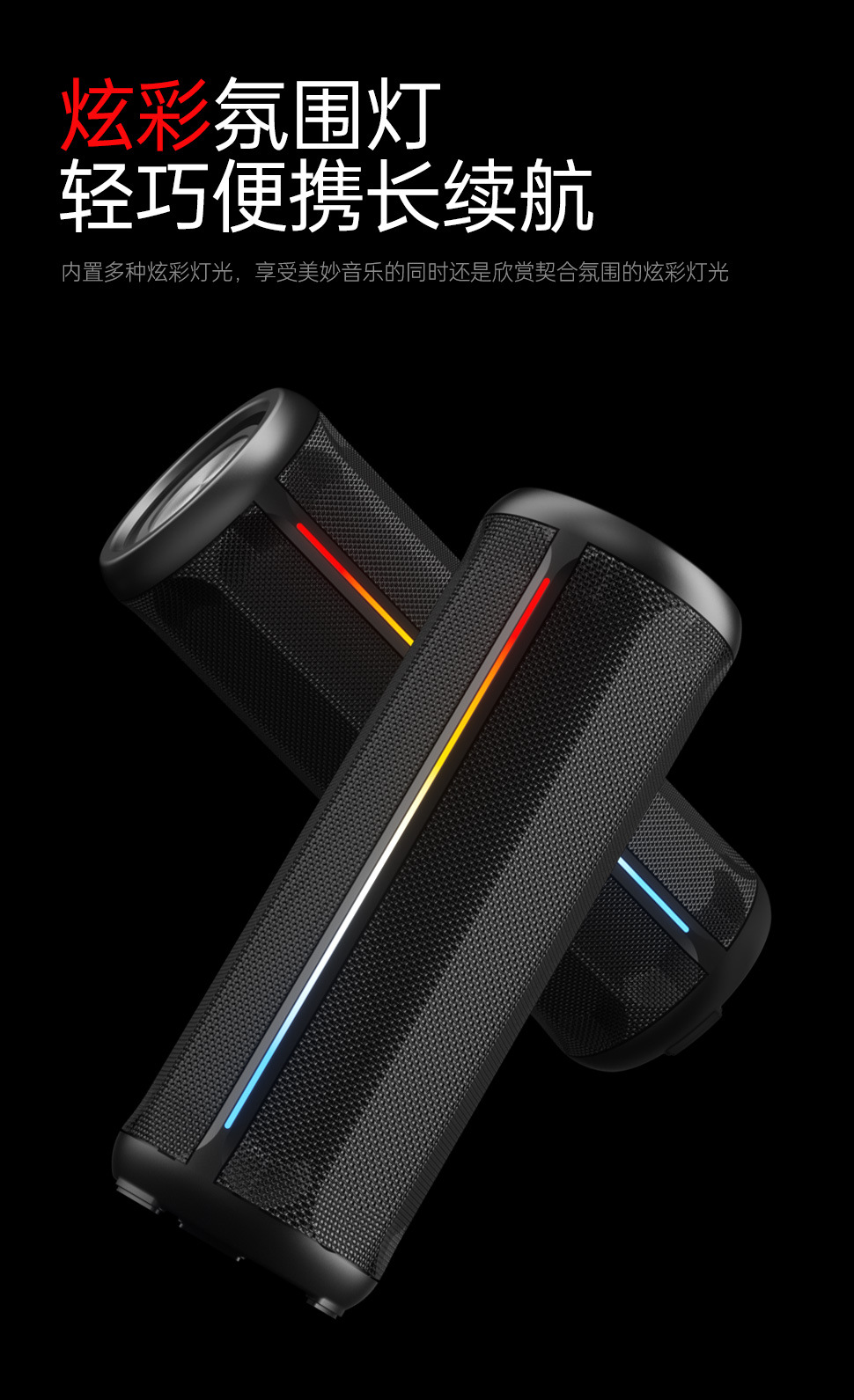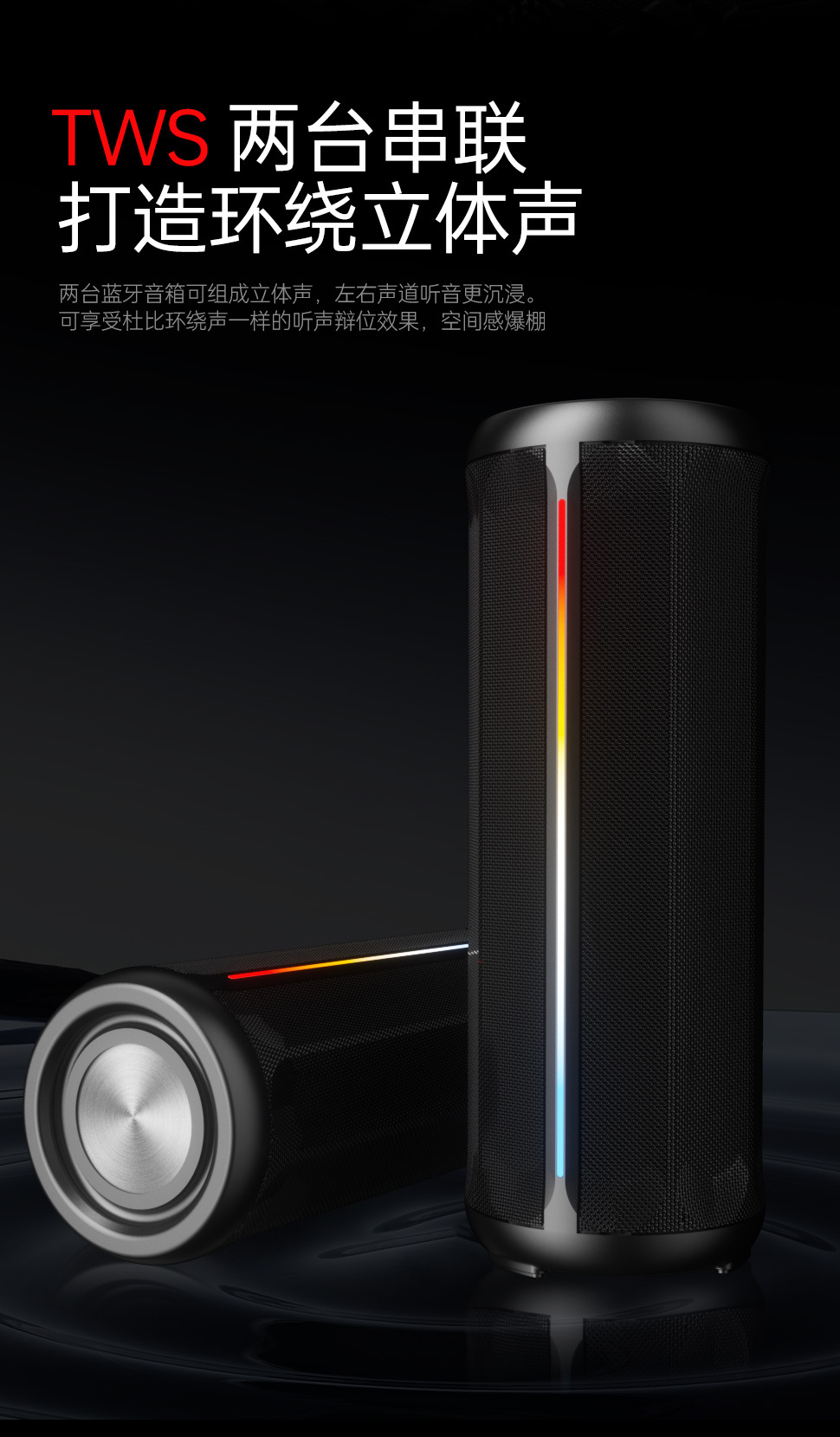 새로운 무선 블루투스 스피커 야외 방수 휴대용 슈퍼 서브 우퍼 RGB 라이트 실린더 패브릭 오디오