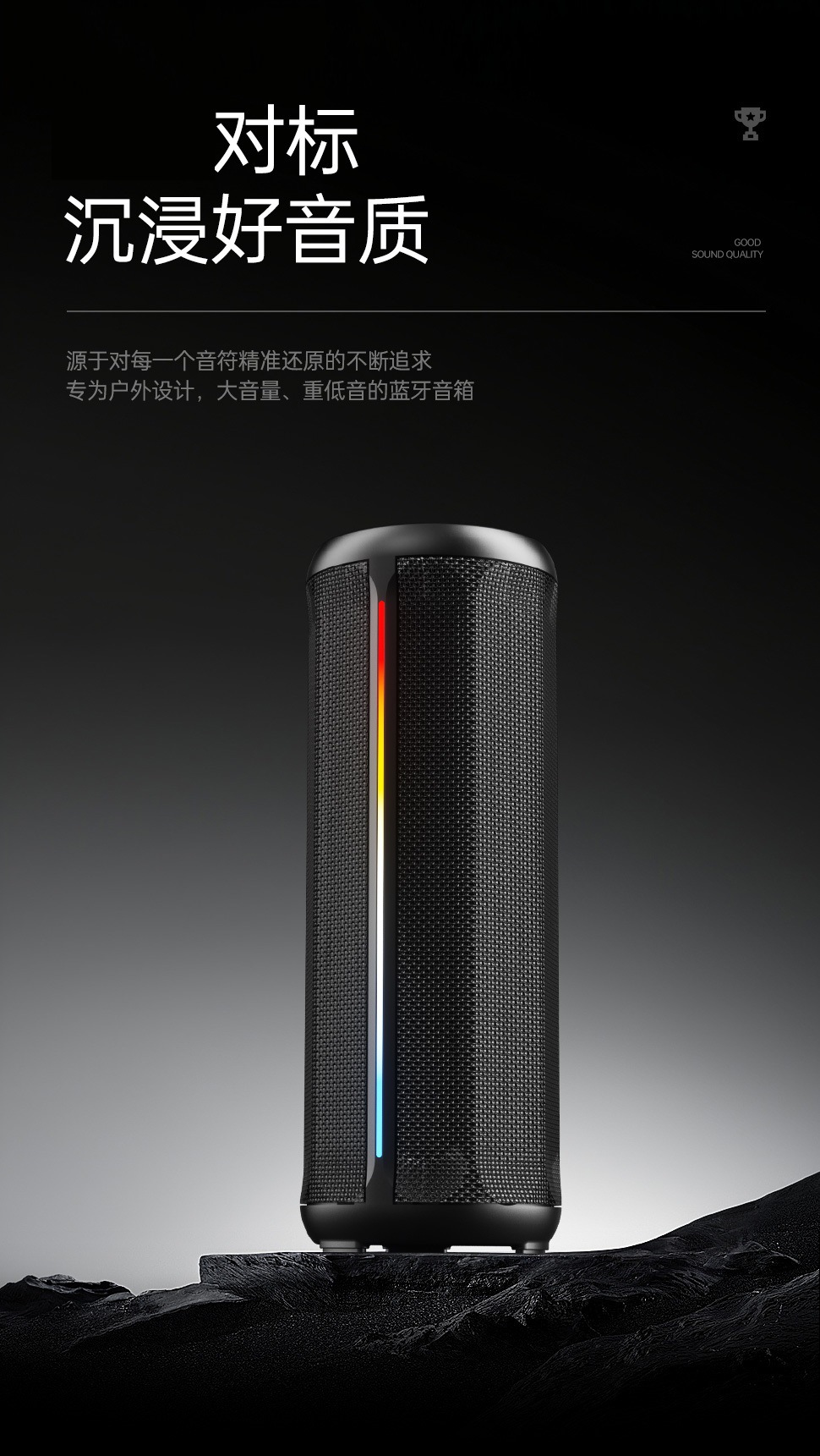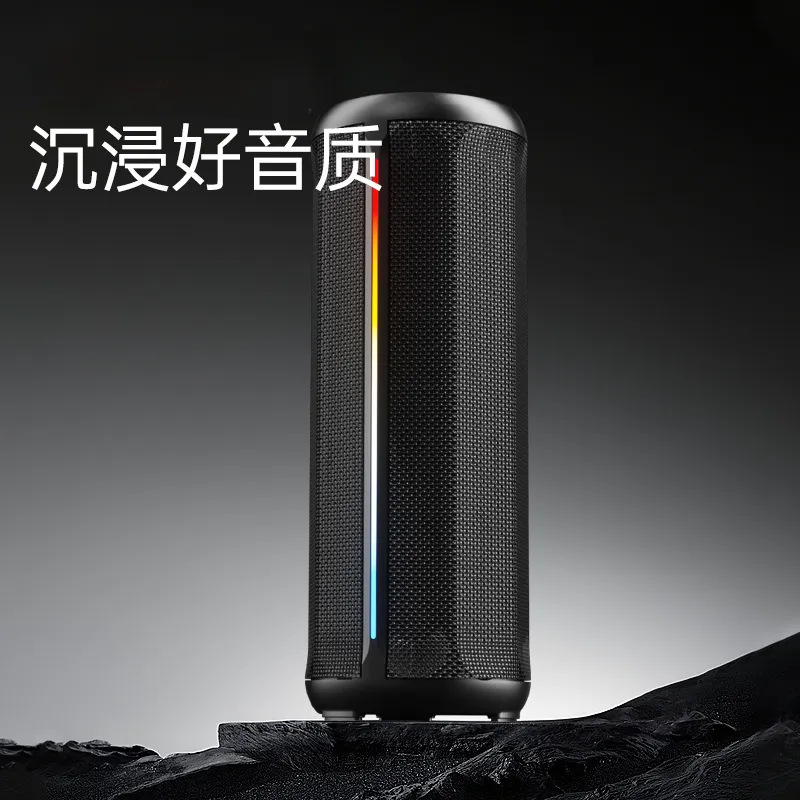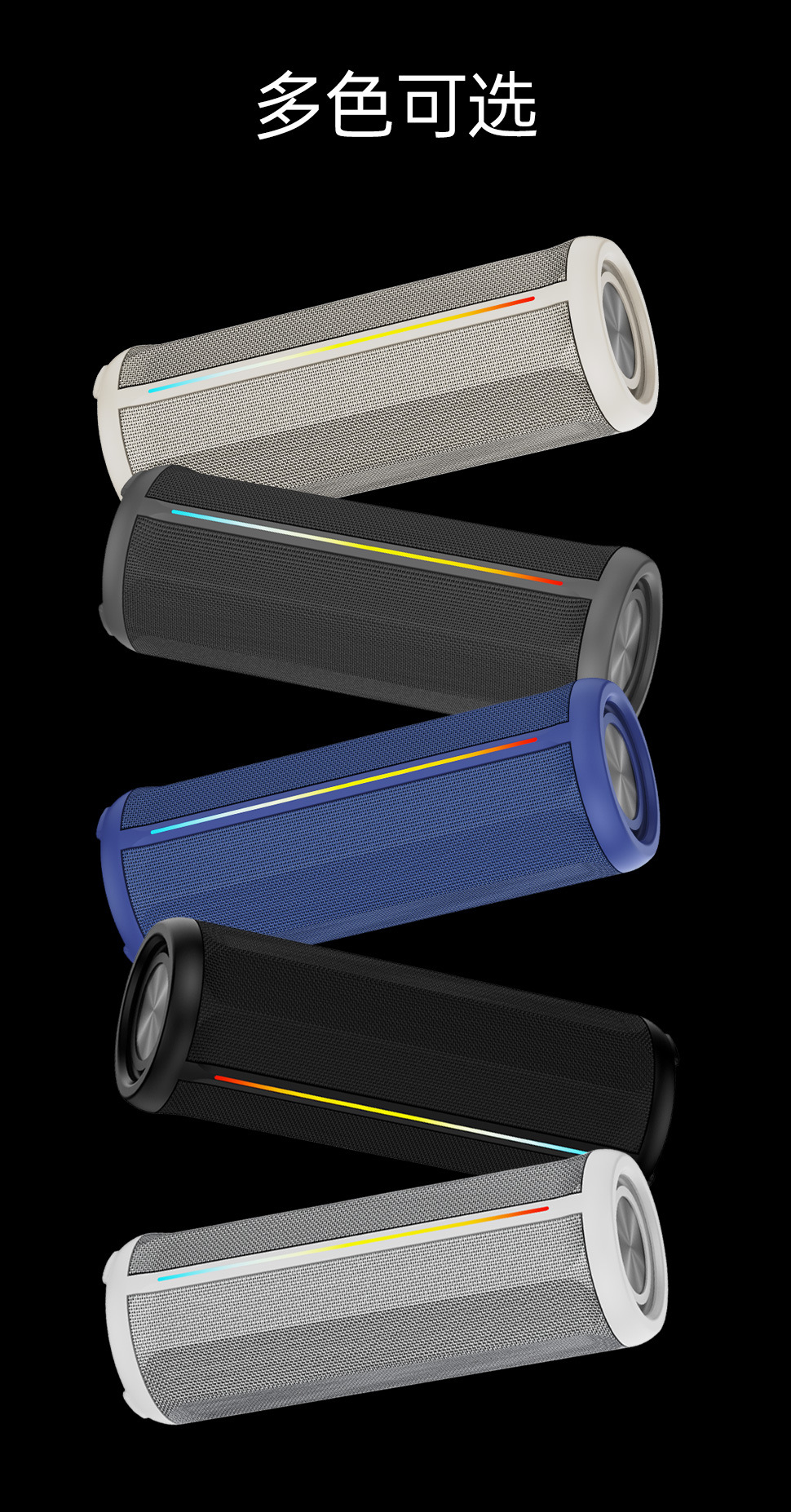 새로운 무선 블루투스 스피커 야외 방수 휴대용 슈퍼 서브 우퍼 RGB 라이트 실린더 패브릭 오디오