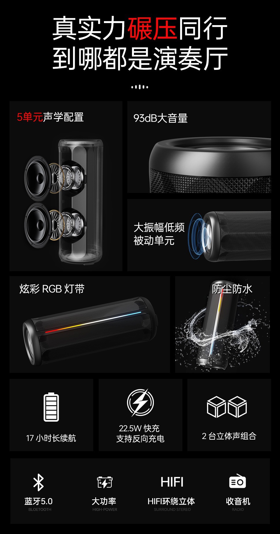 새로운 무선 블루투스 스피커 야외 방수 휴대용 슈퍼 서브 우퍼 RGB 라이트 실린더 패브릭 오디오스토어 가기