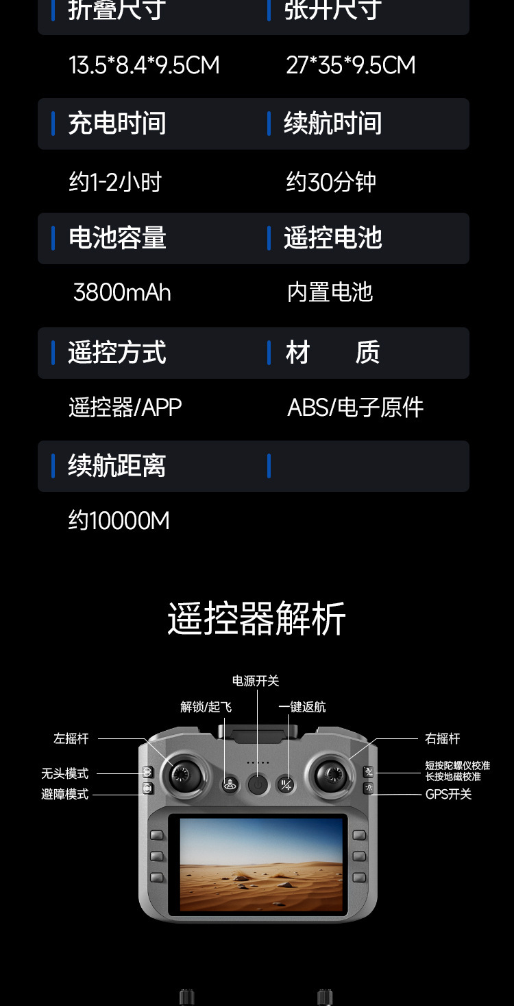 机身电池容量: 3.7V 3800毫安 50克