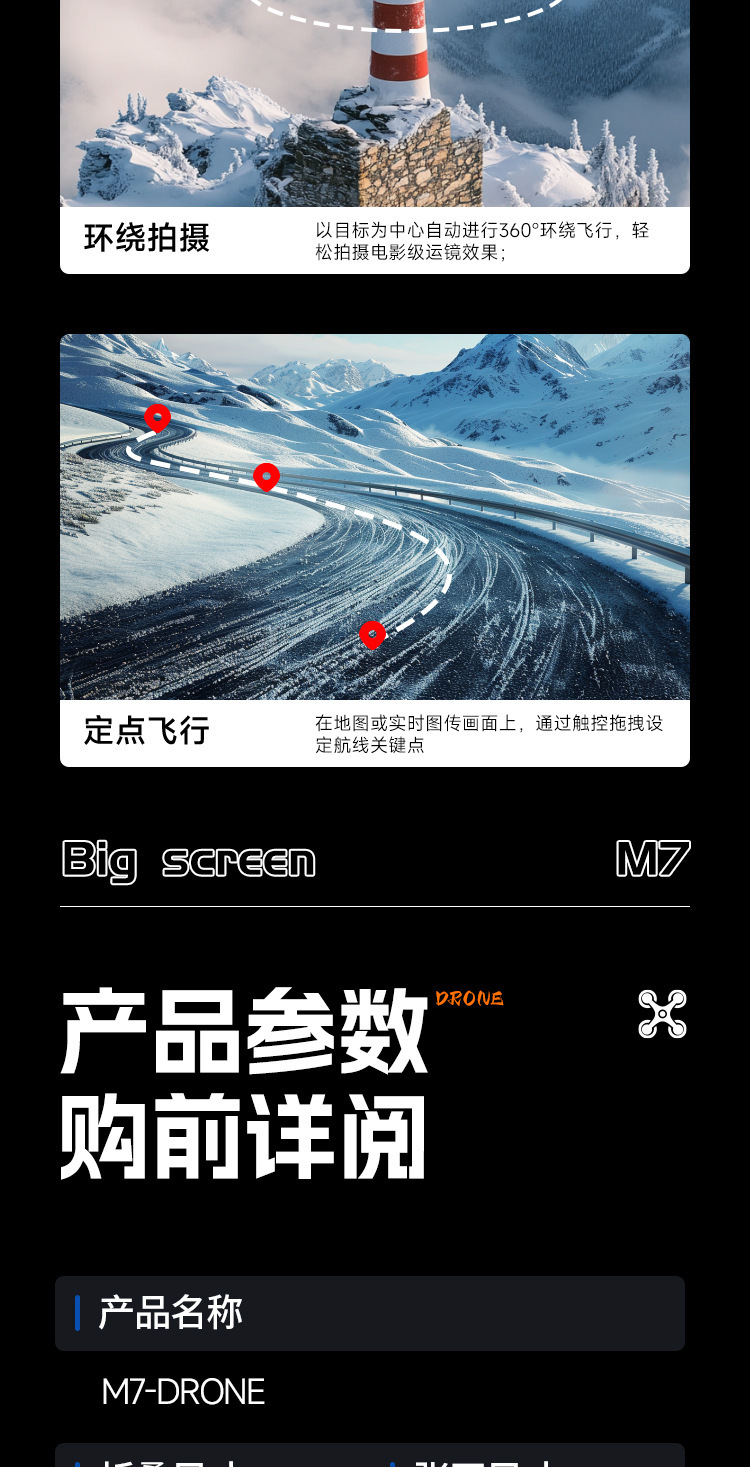 • M7-Black-광학 흐름 GPS 듀얼 카메라 i+브러시리스 장애물 회피 ESC+4.5 화면 제어