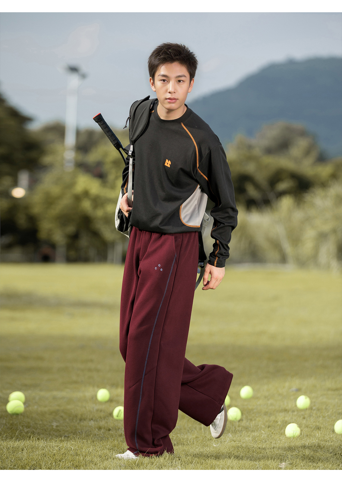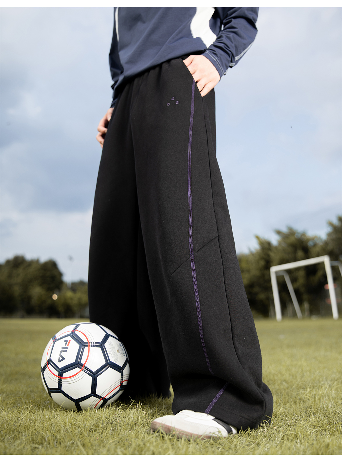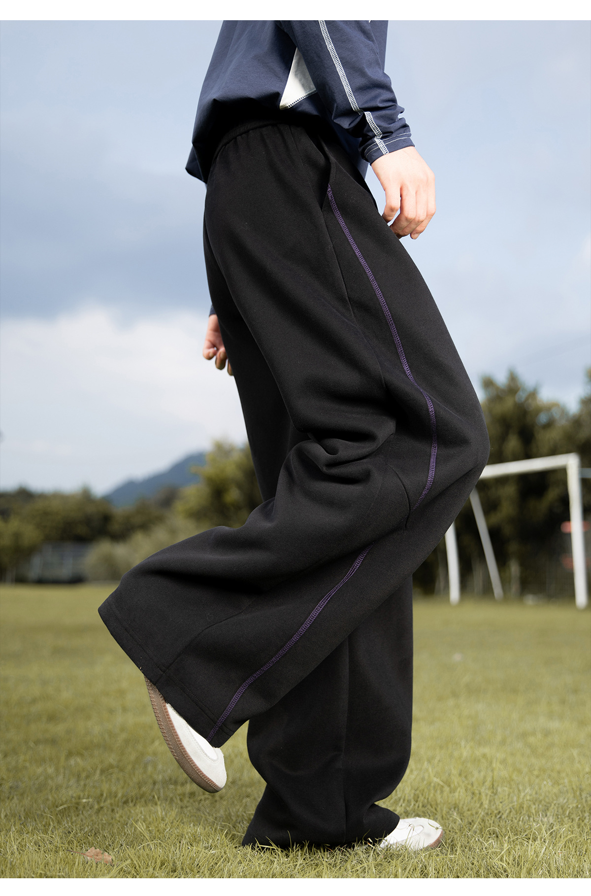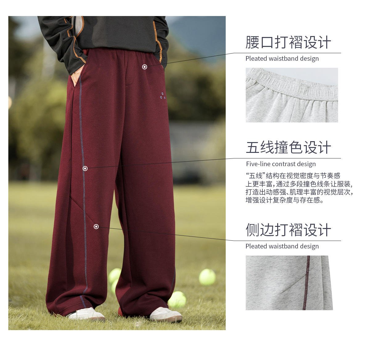 대비되는 색상의 5라인 헤비 텍스처 아메리칸 캐주얼 바지 남성 가을 스트레이트 루즈 스포츠 바지 트렌디 브랜드 자수 스웨트팬츠