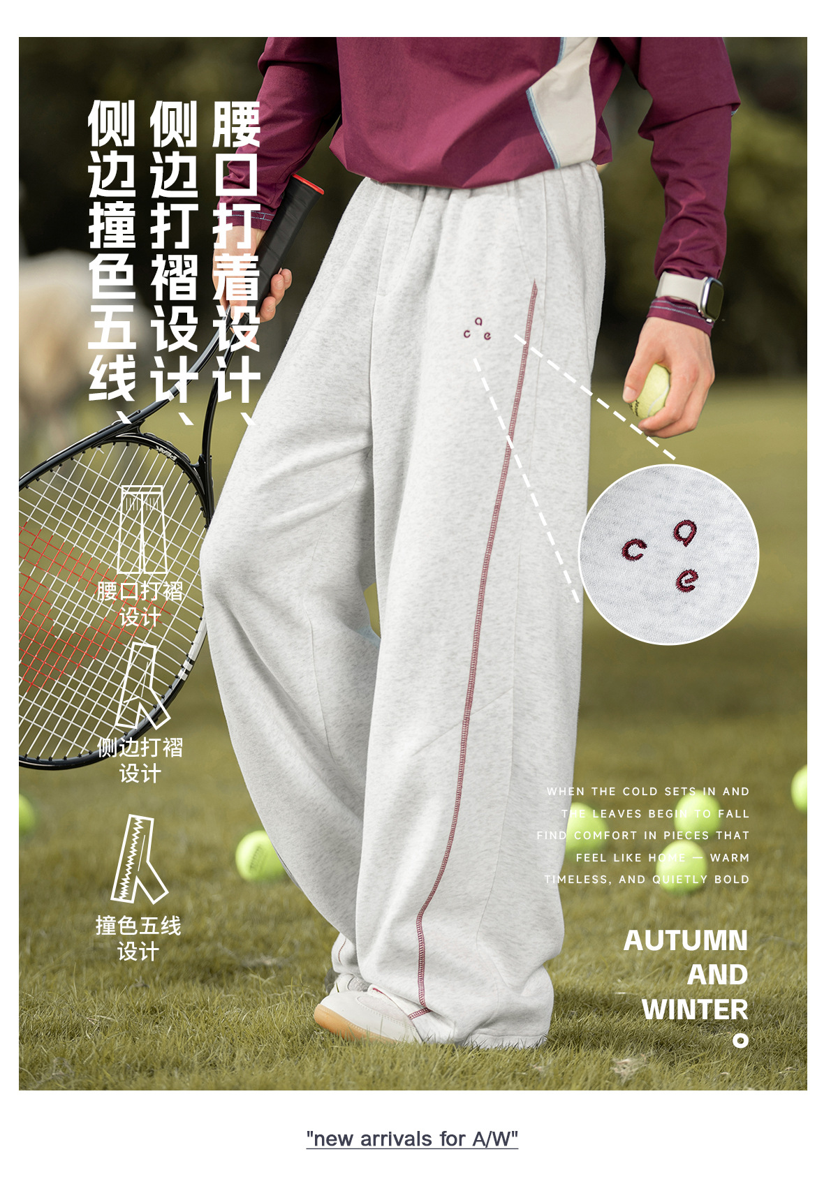 대비되는 색상의 5라인 헤비 텍스처 아메리칸 캐주얼 바지 남성 가을 스트레이트 루즈 스포츠 바지 트렌디 브랜드 자수 스웨트팬츠스토어 가기