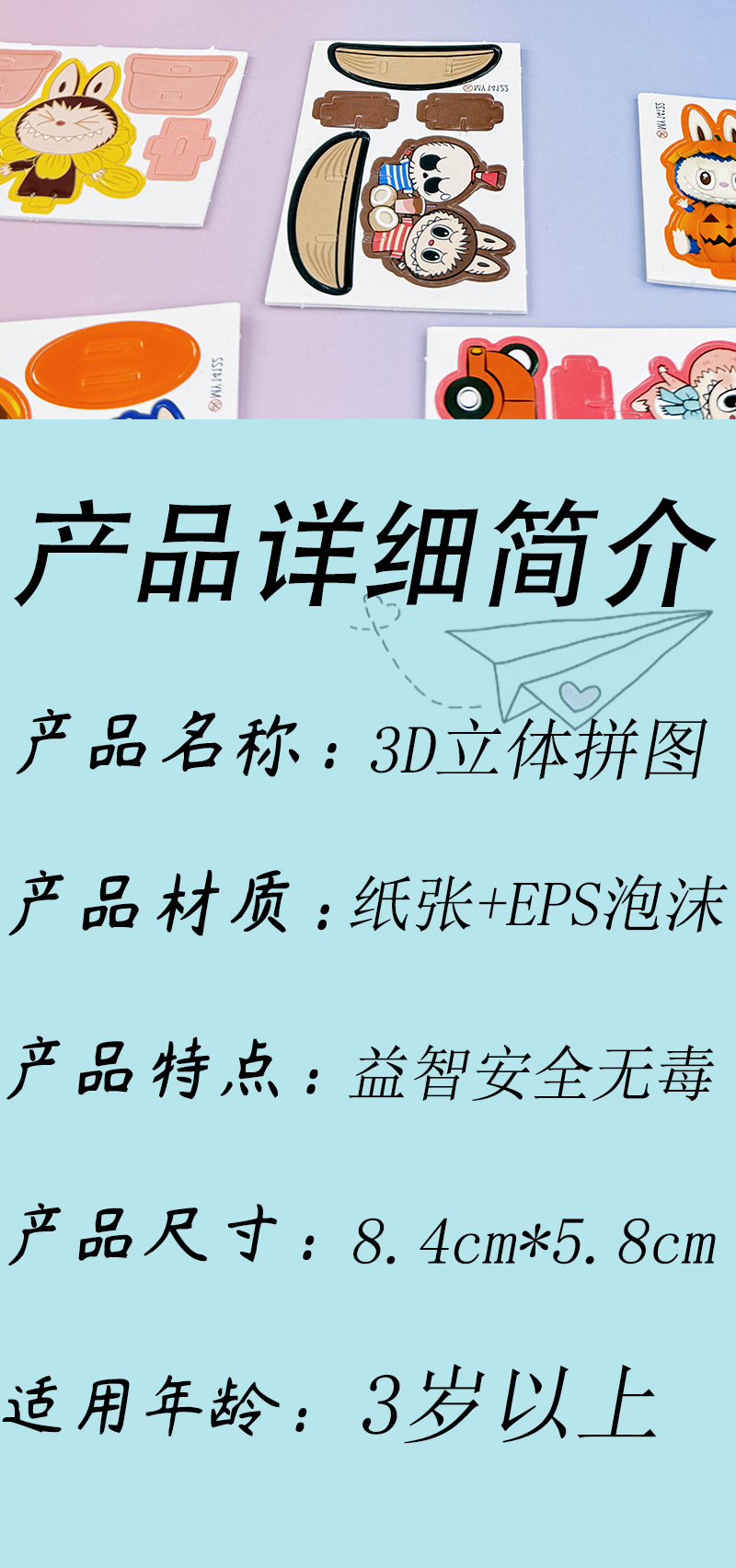 재고 있음 라부부 퍼즐 만화 3D 입체 어린이 교육용 장난감 종이 유치원 상품 조립식스토어 가기