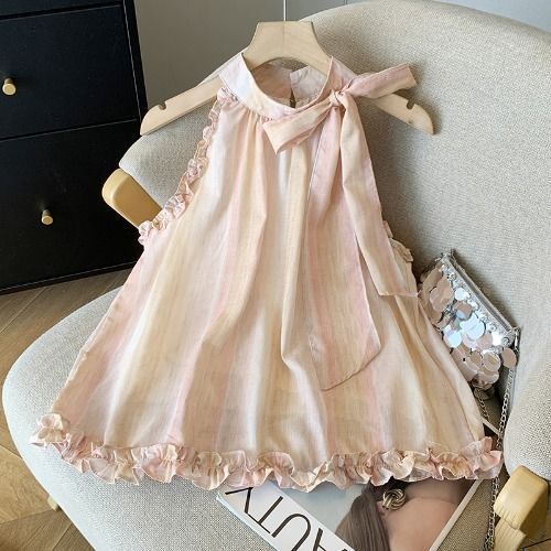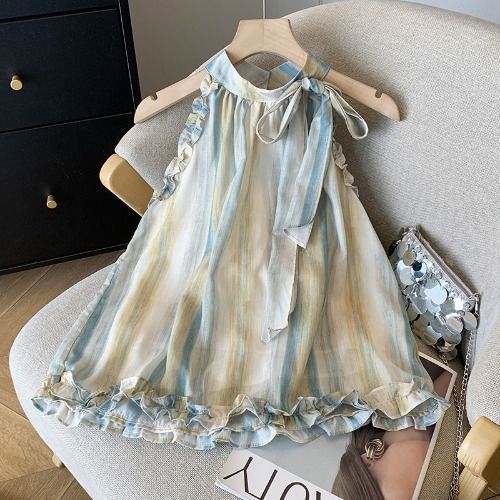 여성용 보우 타이 홀터넥 쉬폰 셔츠 여름 신작 루즈 엣지 베이비돌 셔츠 프렌치 타이 염색 연령 감소 탑