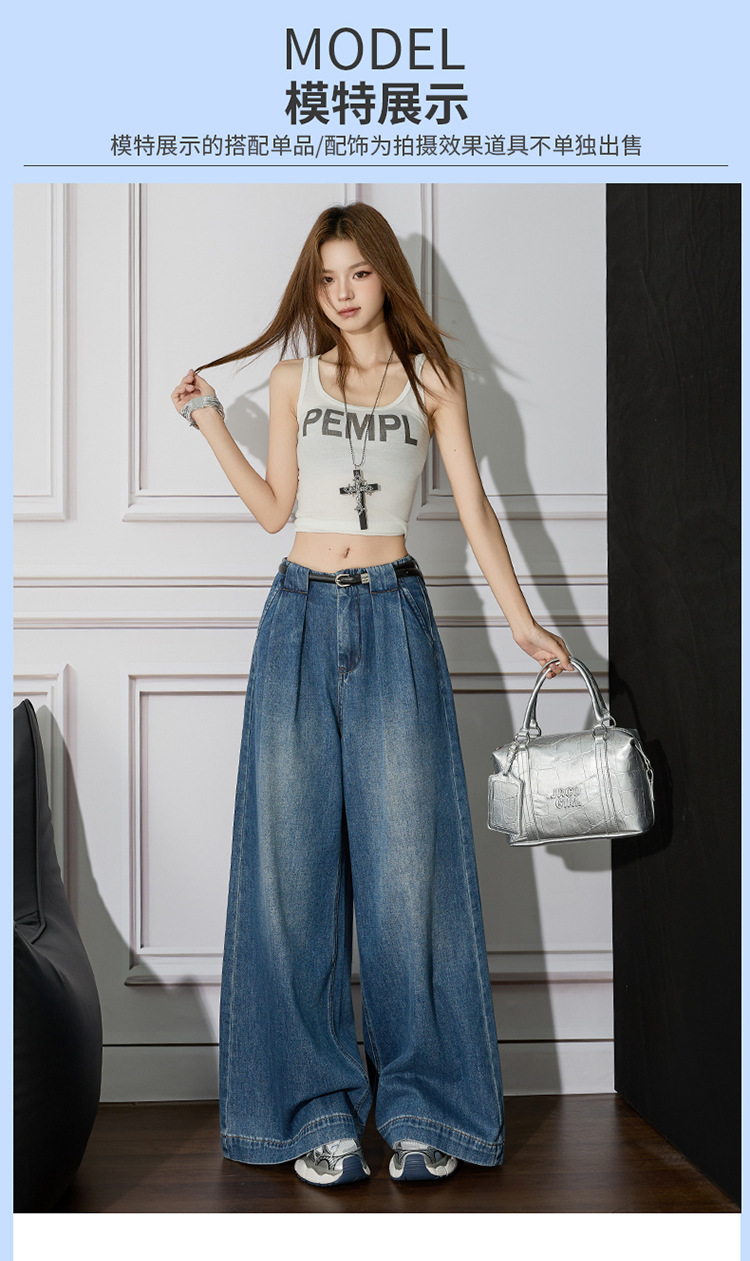 여성을위한 리오셀 텐셀 레트로 하이 웨이스트 와이드 레그 팬츠 봄, 가을 새로운 루즈 슬리밍 드레이프 바닥 길이 아이스 실크 청바지스토어 가기
