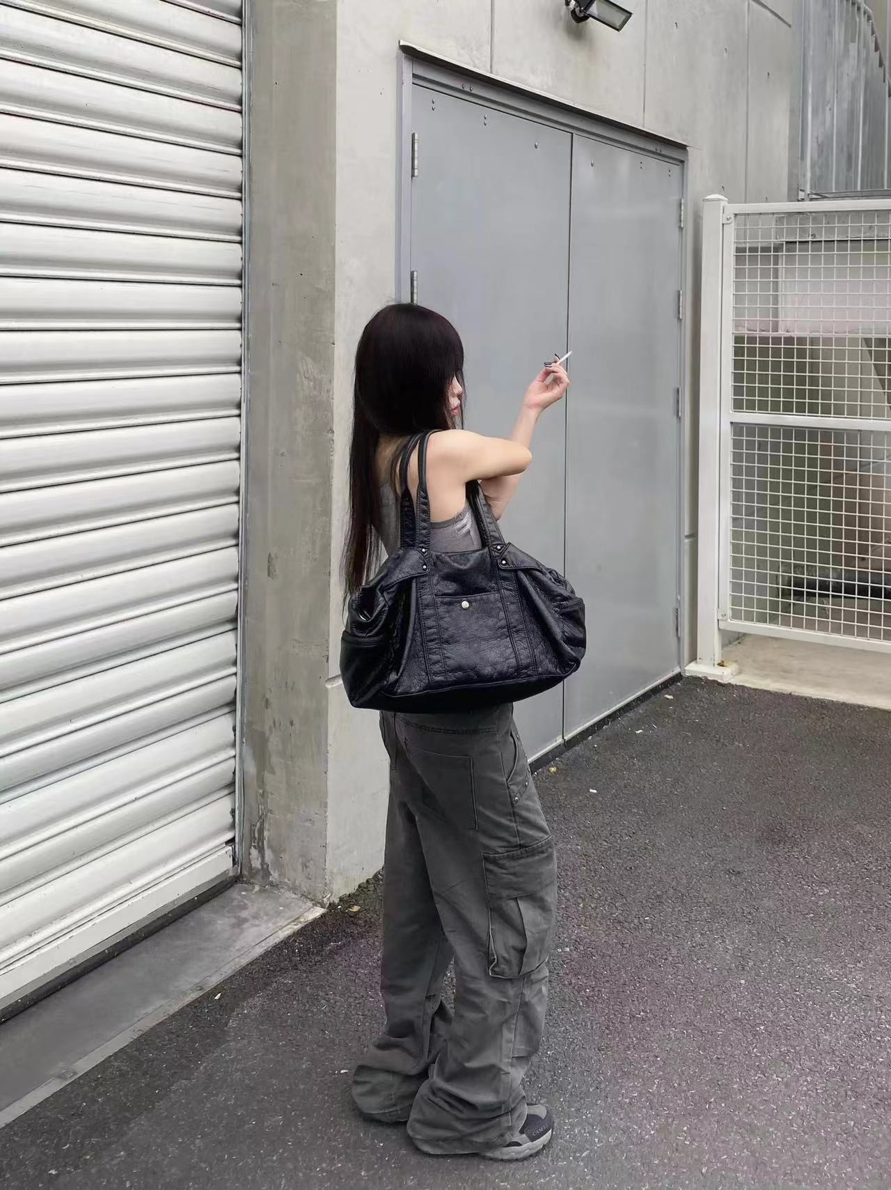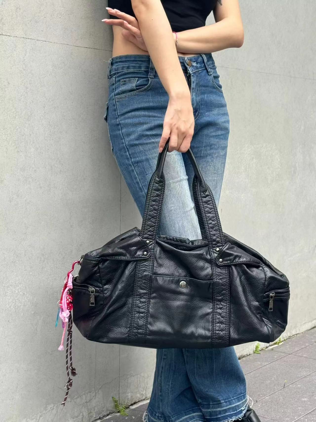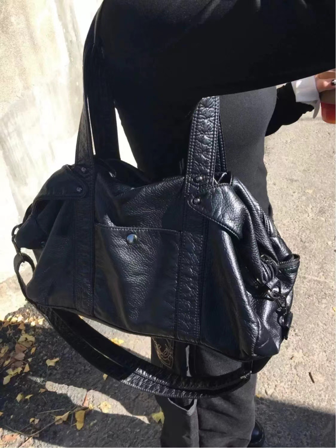 국경 간 인기 복고풍 오토바이 가방 대용량 Y2K 핫 소녀 싱글 숄더 크로스 바디 백 여성용 워시 PU 핸드 토트 백