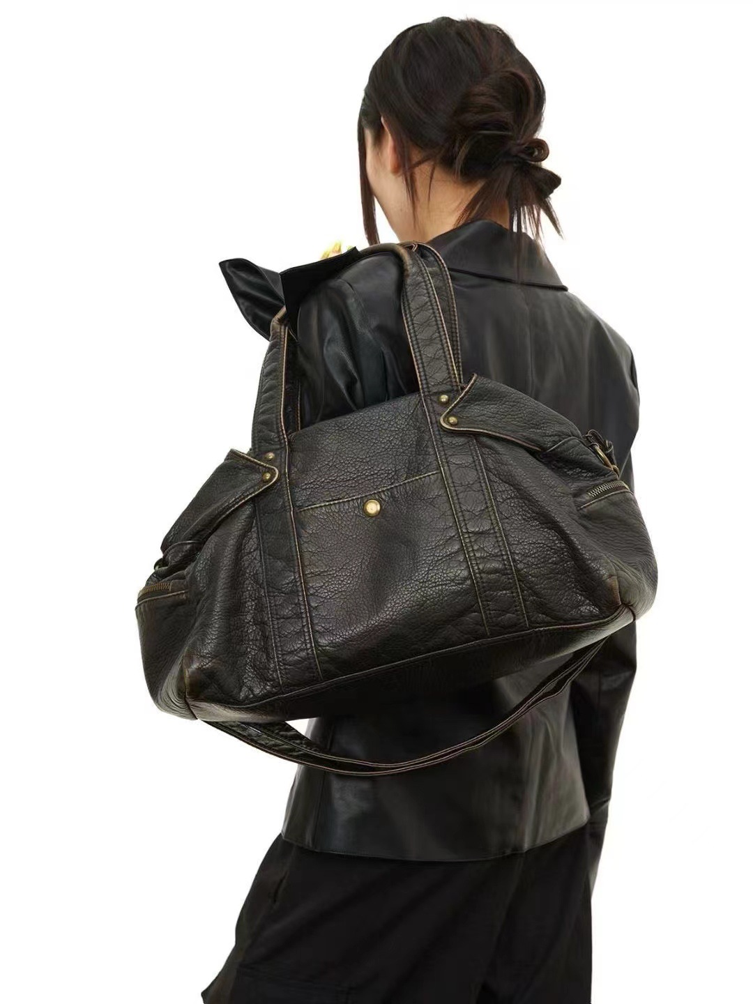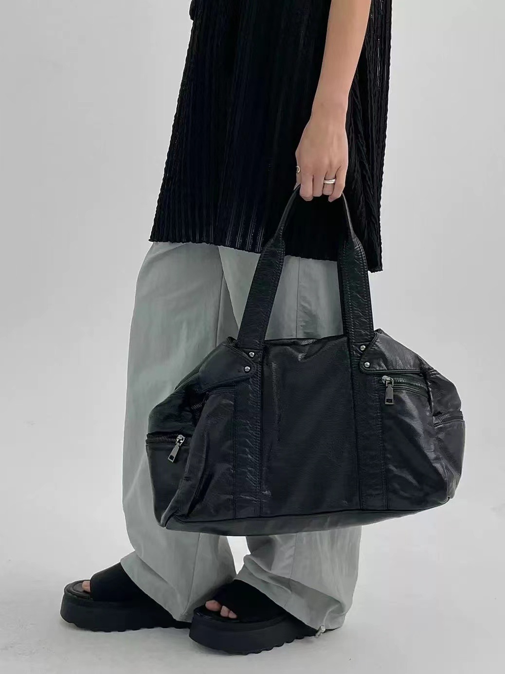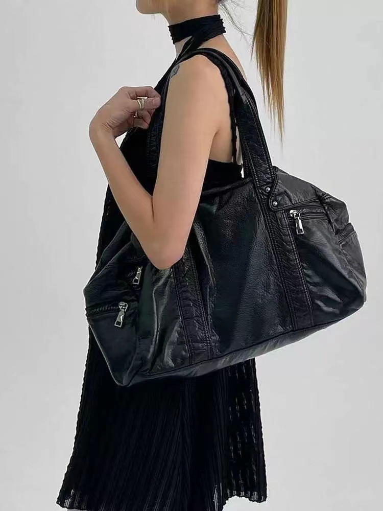 국경 간 인기 복고풍 오토바이 가방 대용량 Y2K 핫 소녀 싱글 숄더 크로스 바디 백 여성용 워시 PU 핸드 토트 백