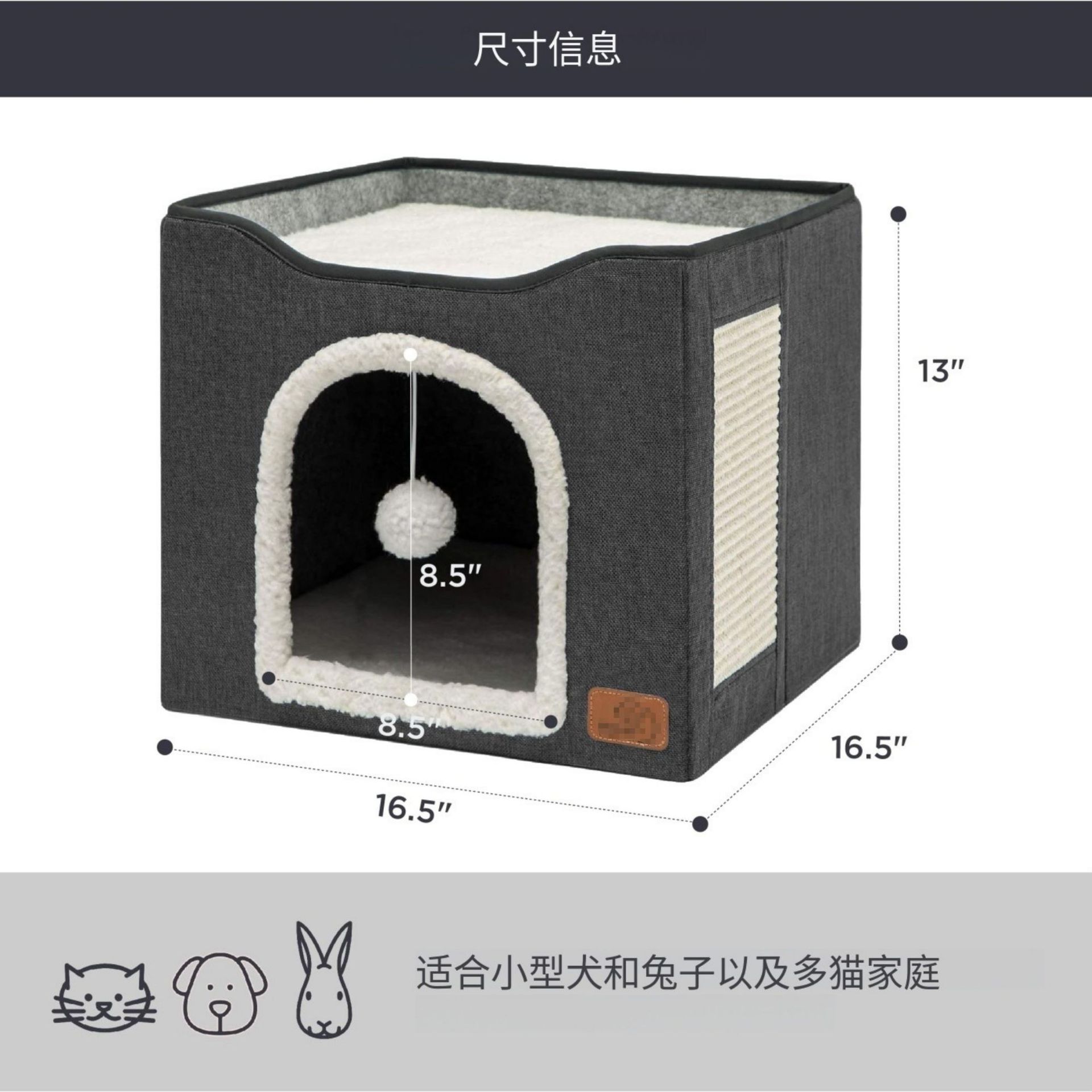 패브릭 고양이 빌라 다기능 고양이 집, 고양이 스크래치 보드 포함, 사계절 사용 가능한 범용 고양이 집, 접이식 애완 동물 고양이 개집