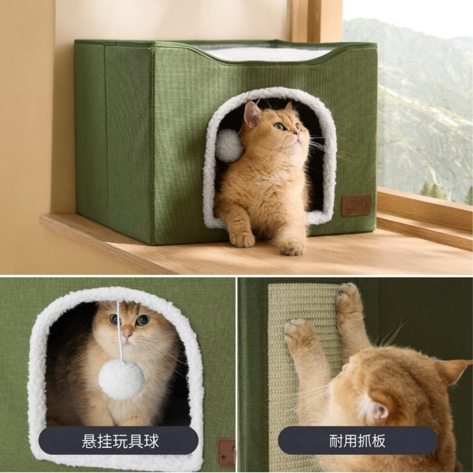 패브릭 고양이 빌라 다기능 고양이 집, 고양이 스크래치 보드 포함, 사계절 사용 가능한 범용 고양이 집, 접이식 애완 동물 고양이 개집스토어 가기