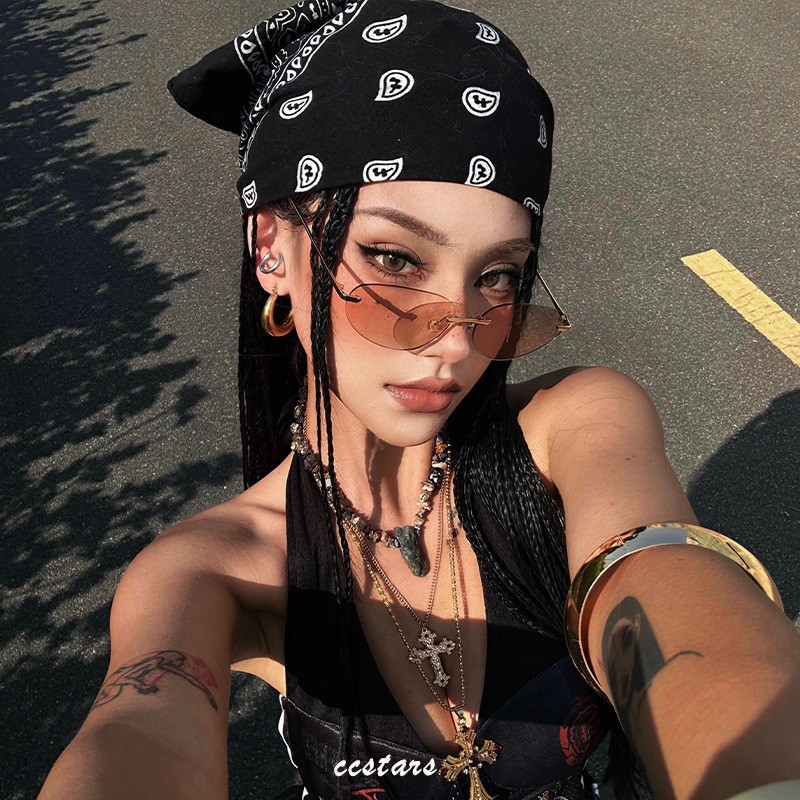 리퀴드 실버 핫걸 실크 스카프 여성용 바오터우 터번 y2k 스퀘어 스카프 가슴 감싸기 다용도 힙합 트렌디 남성 및 여성 스카프 스트리트