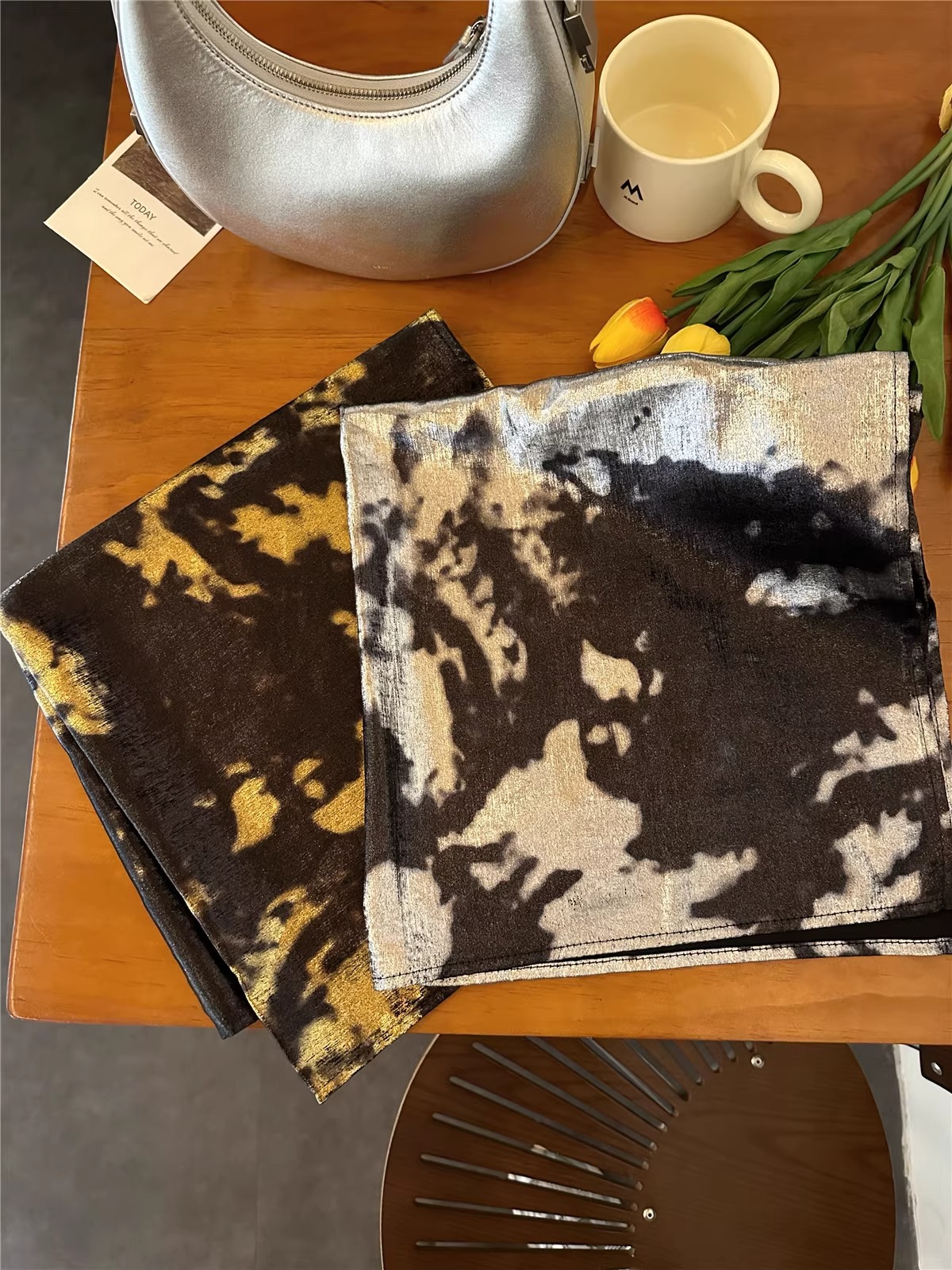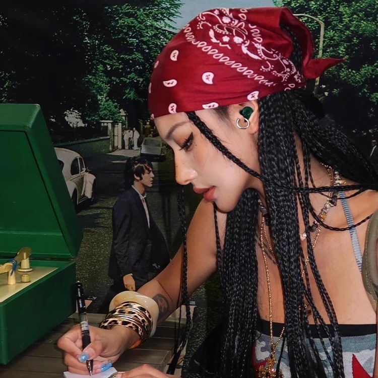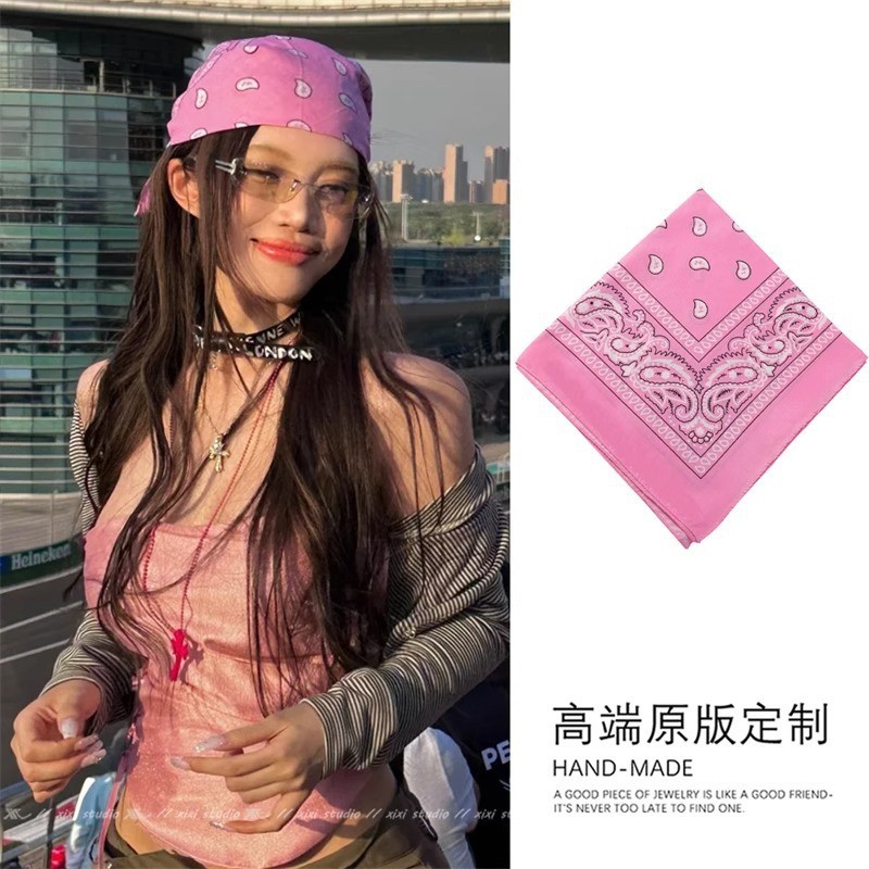 리퀴드 실버 핫걸 실크 스카프 여성용 바오터우 터번 y2k 스퀘어 스카프 가슴 감싸기 다용도 힙합 트렌디 남성 및 여성 스카프 스트리트스토어 가기