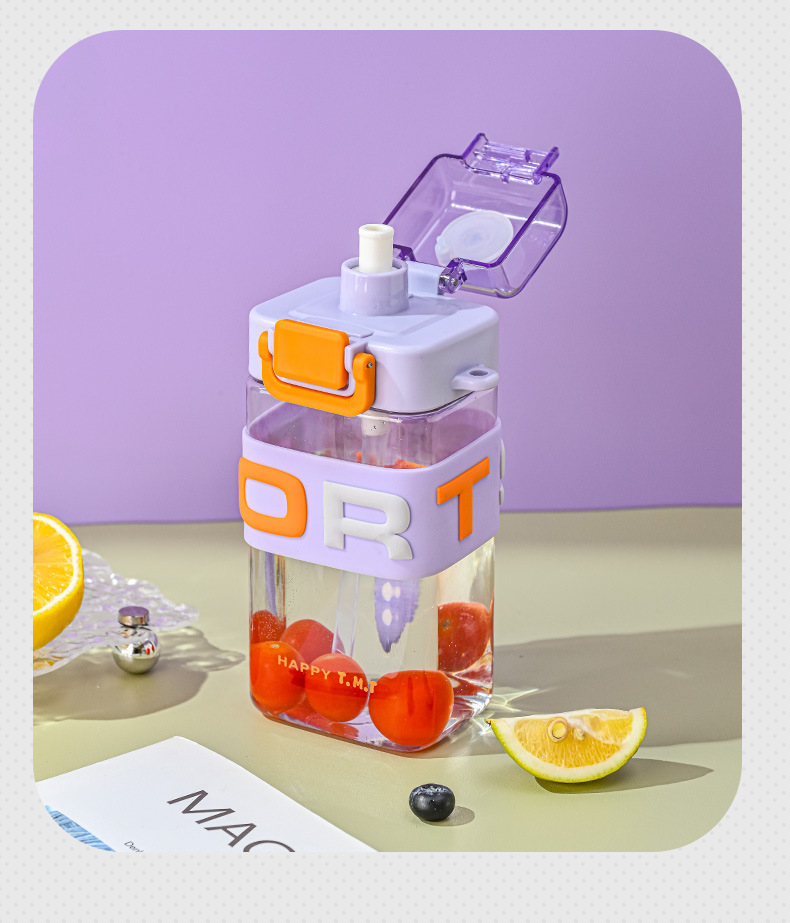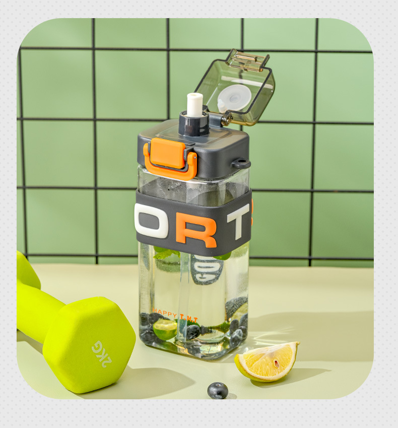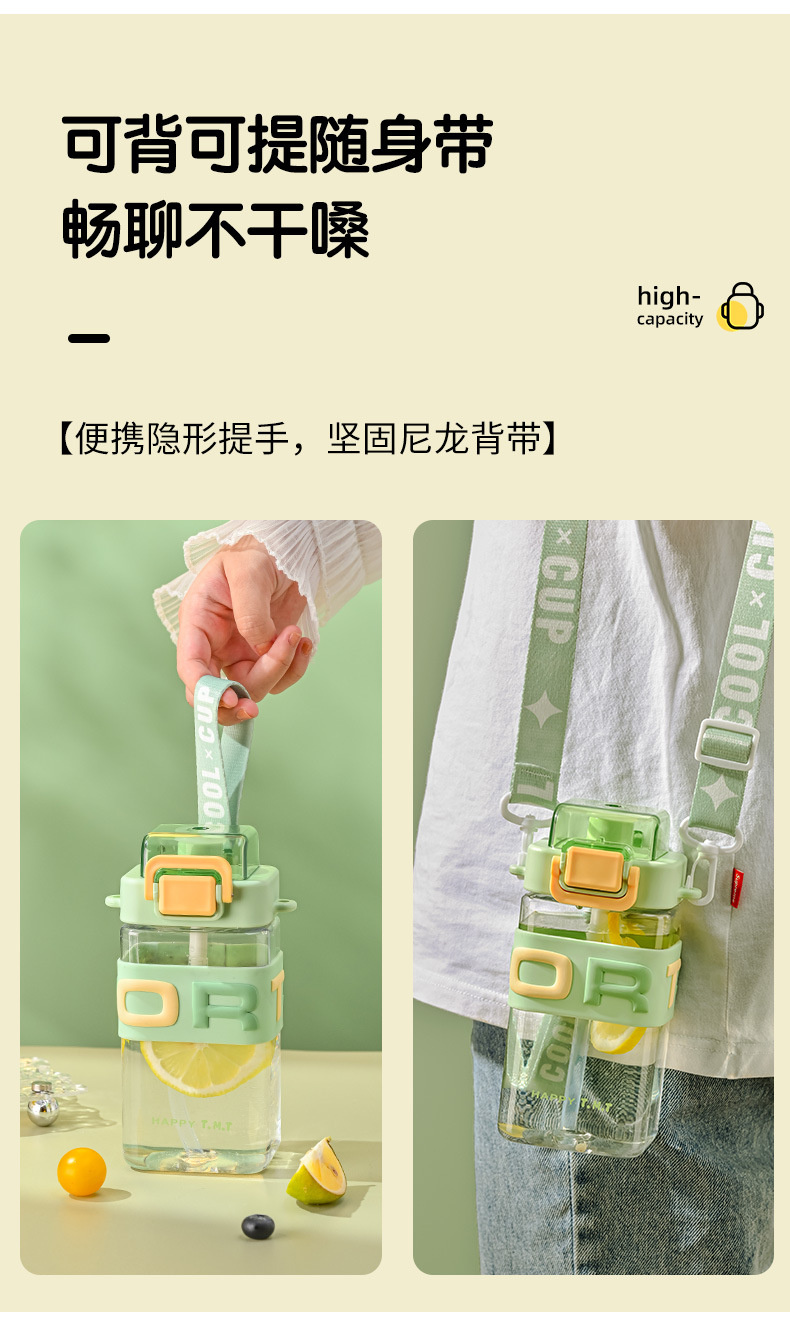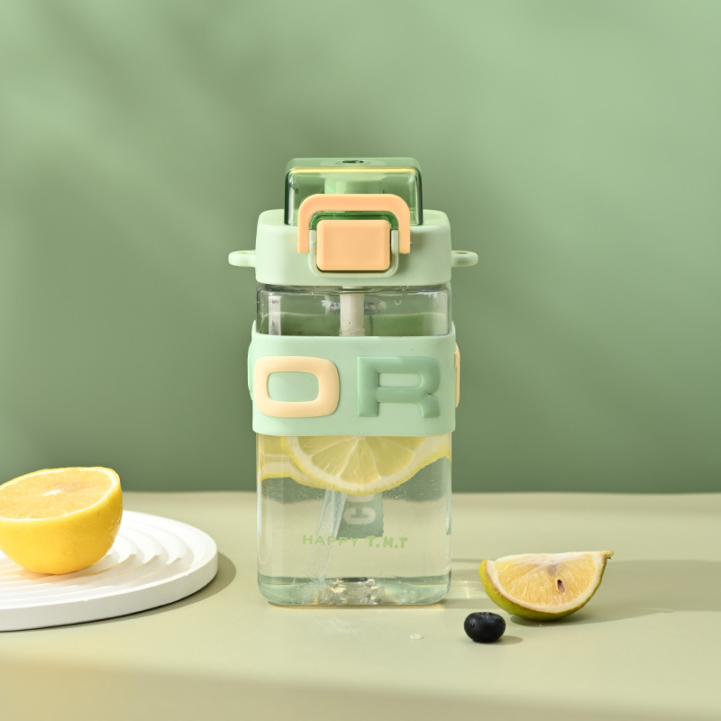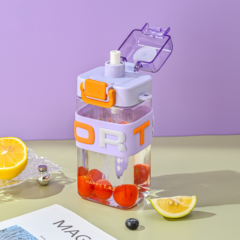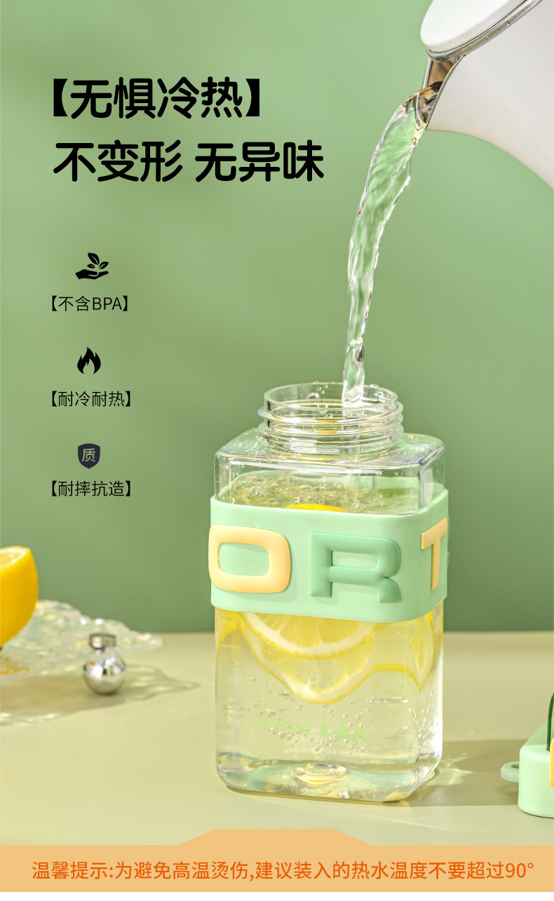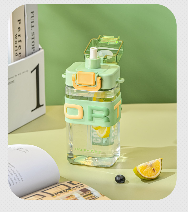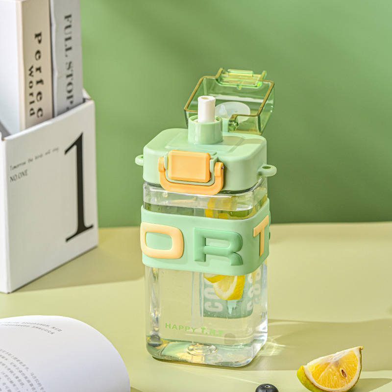 학교에 가는 어린이와 학생을 위한 사각형 물컵, 특수 공간 컵, 스포츠 물병, 로프가 달린 내열성 대용량 밀짚 컵