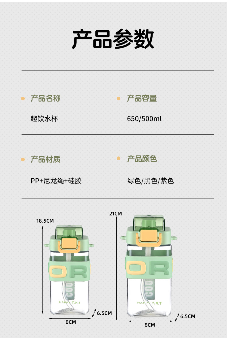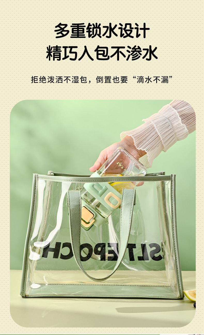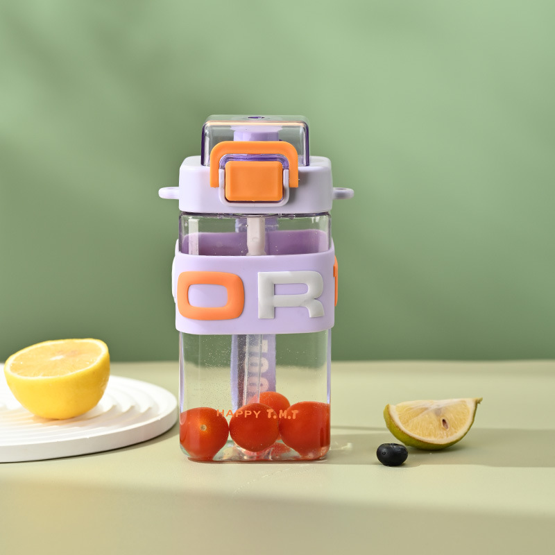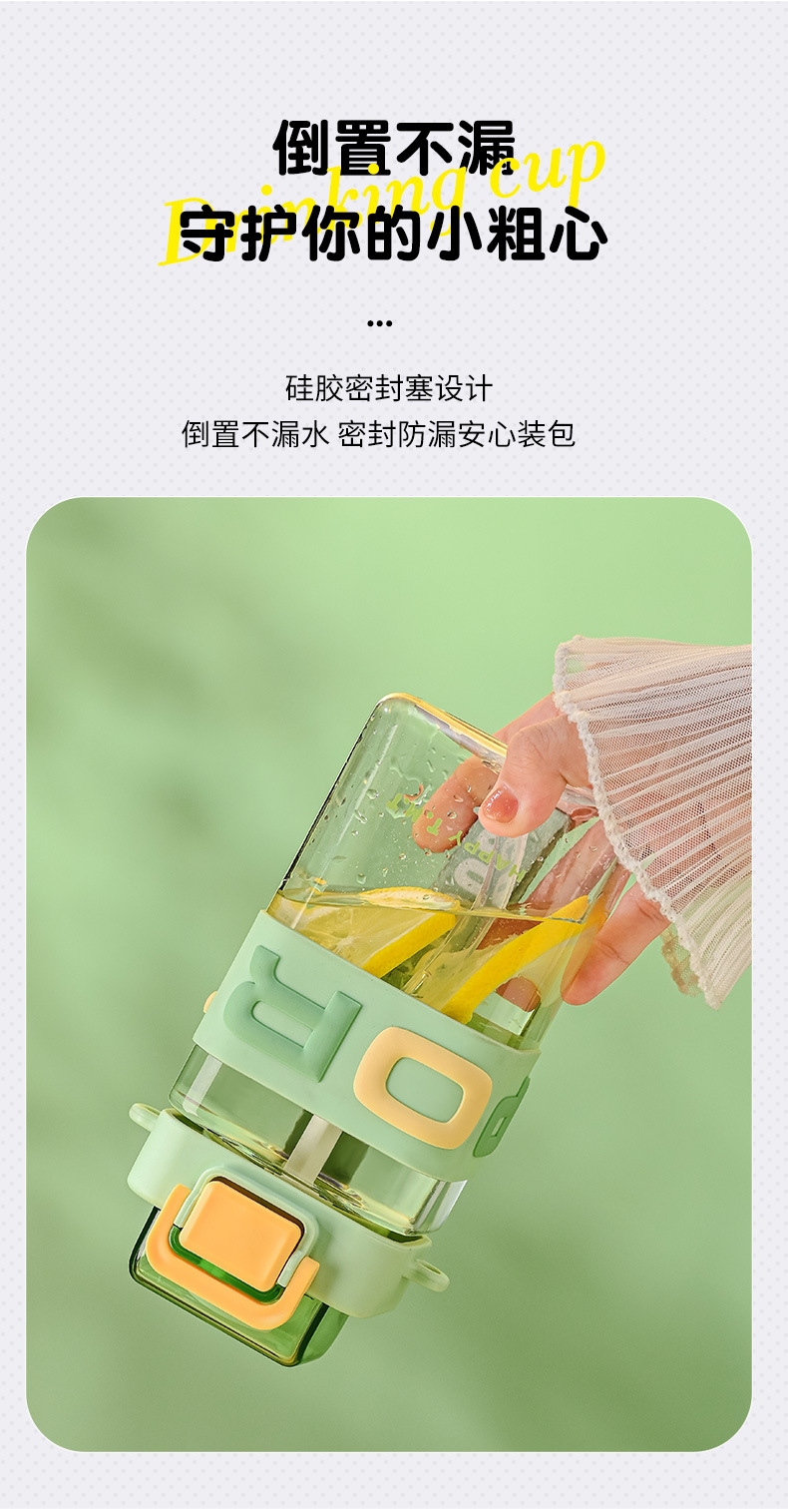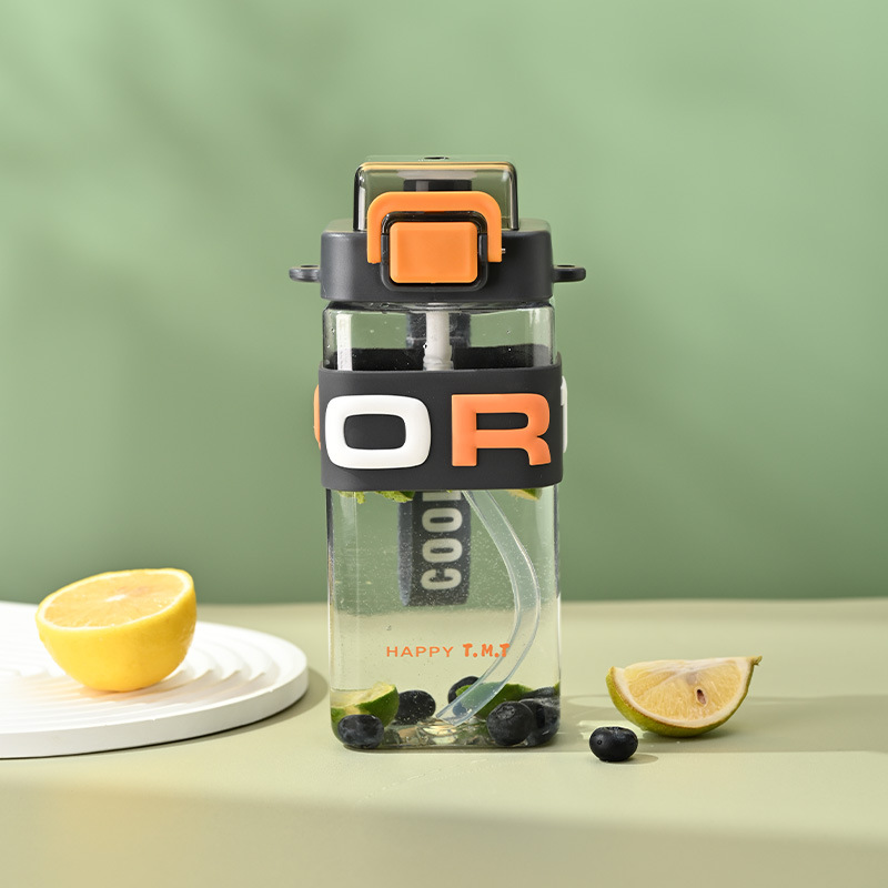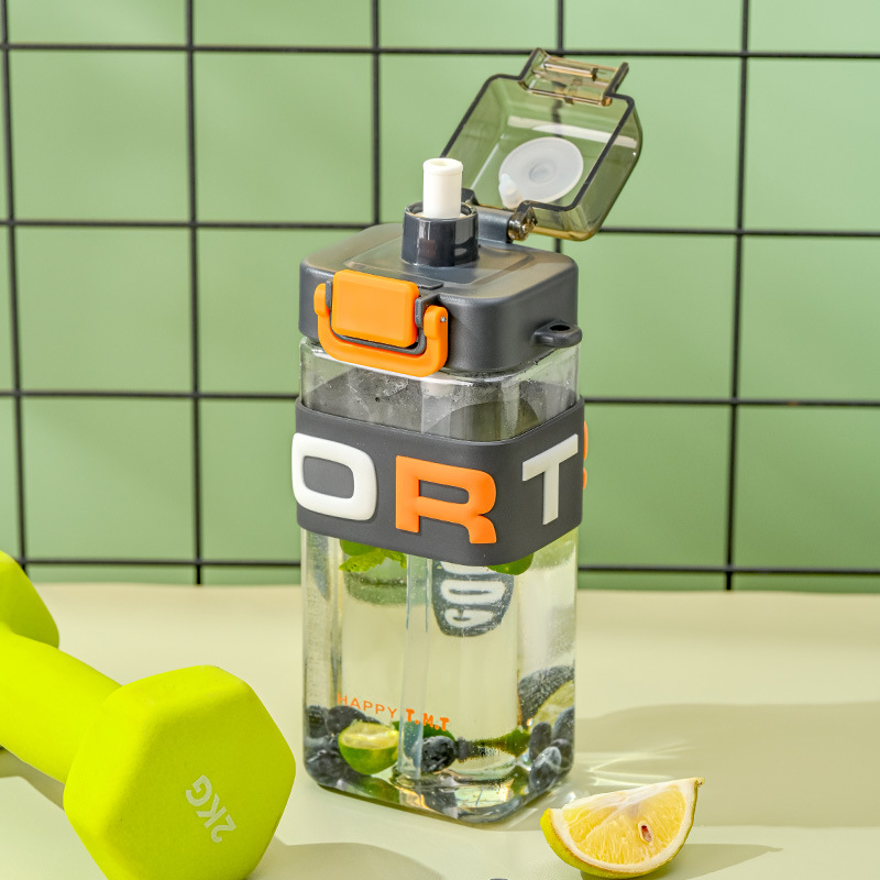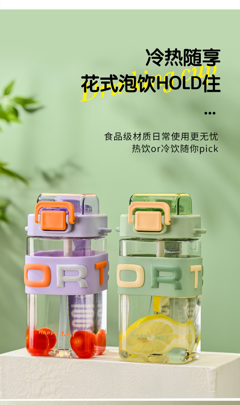 학교에 가는 어린이와 학생을 위한 사각형 물컵, 특수 공간 컵, 스포츠 물병, 로프가 달린 내열성 대용량 밀짚 컵