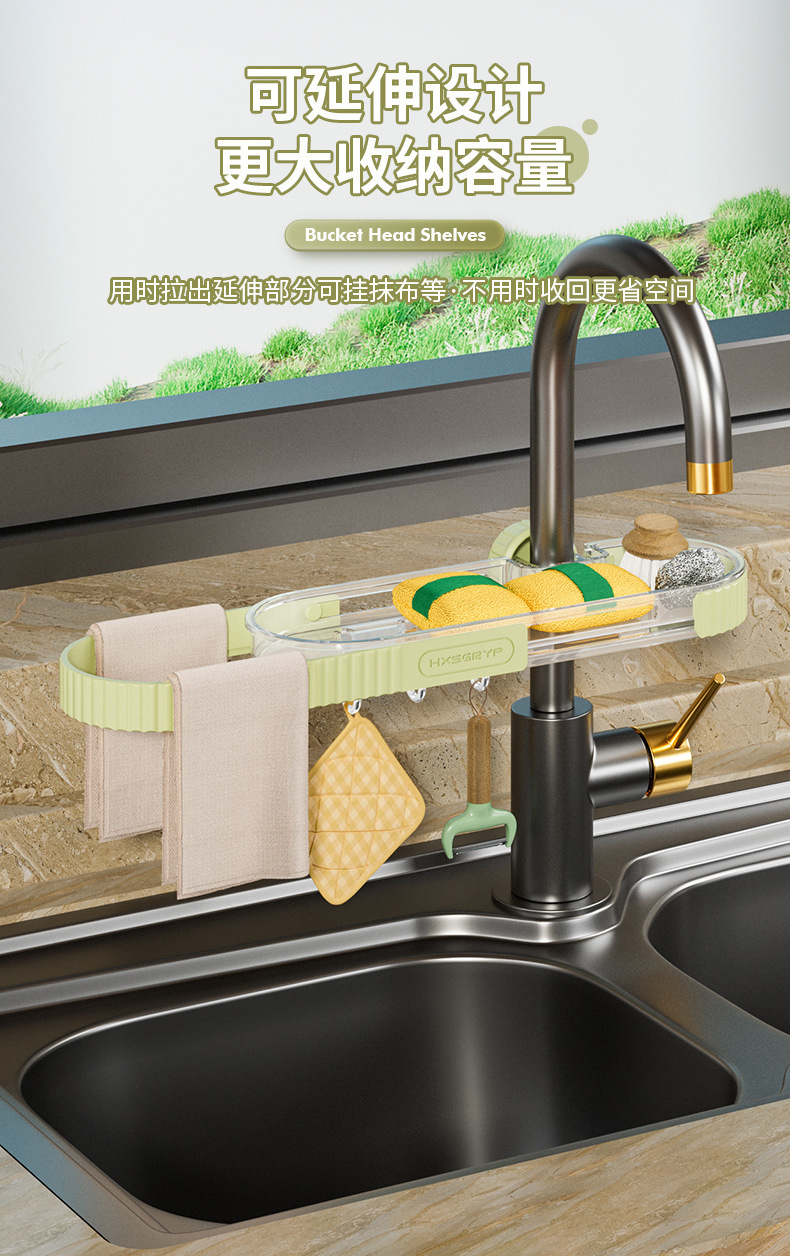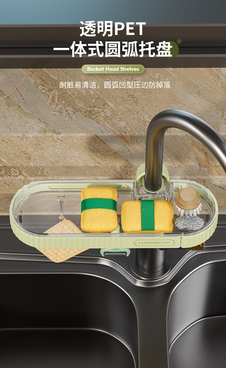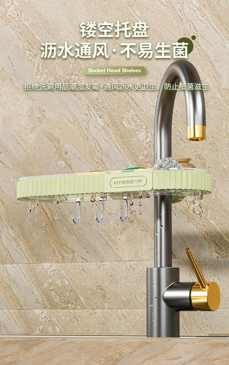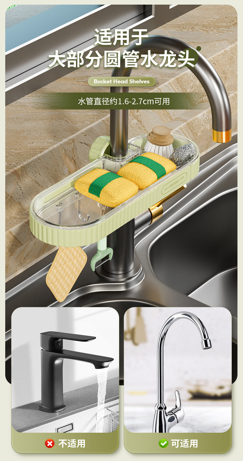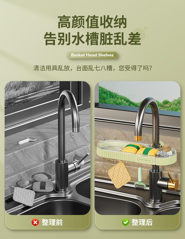 주방 수도꼭지 보관함, 식기 세척대, 싱크대 선반, 배수 바구니, 스펀지 브러시, 수세미, 걸레 보관함