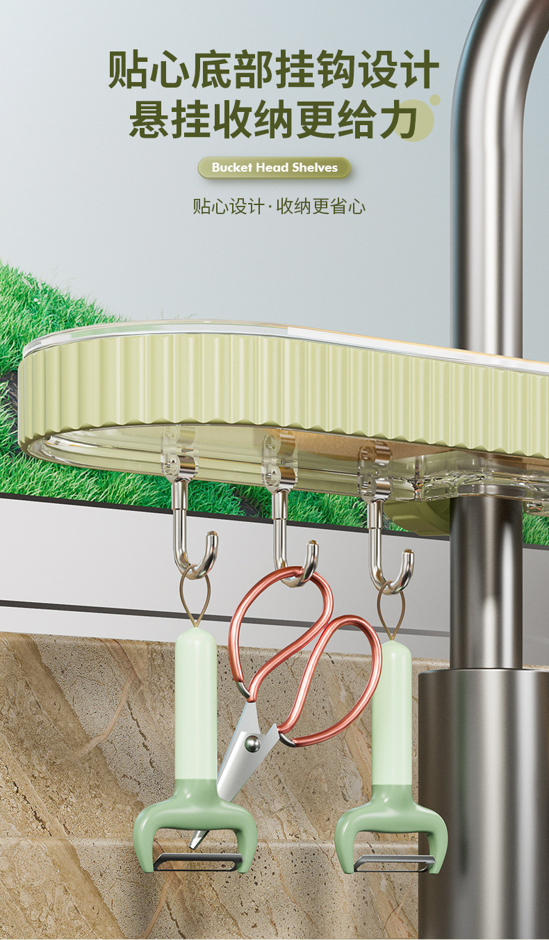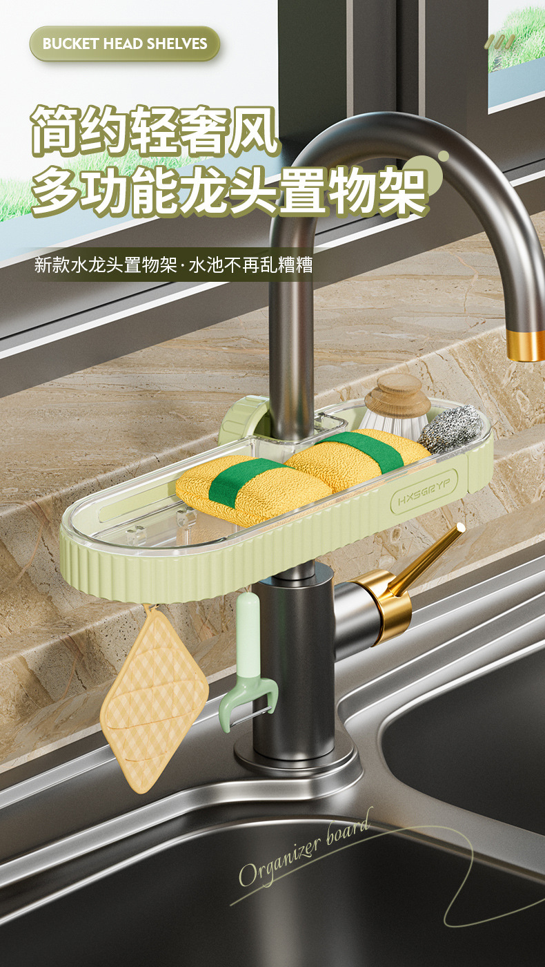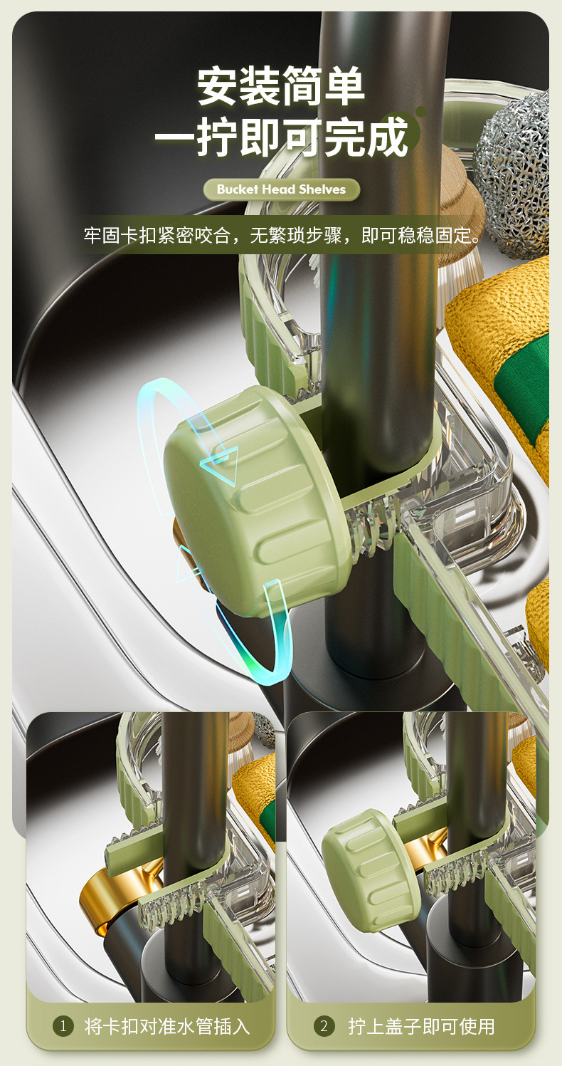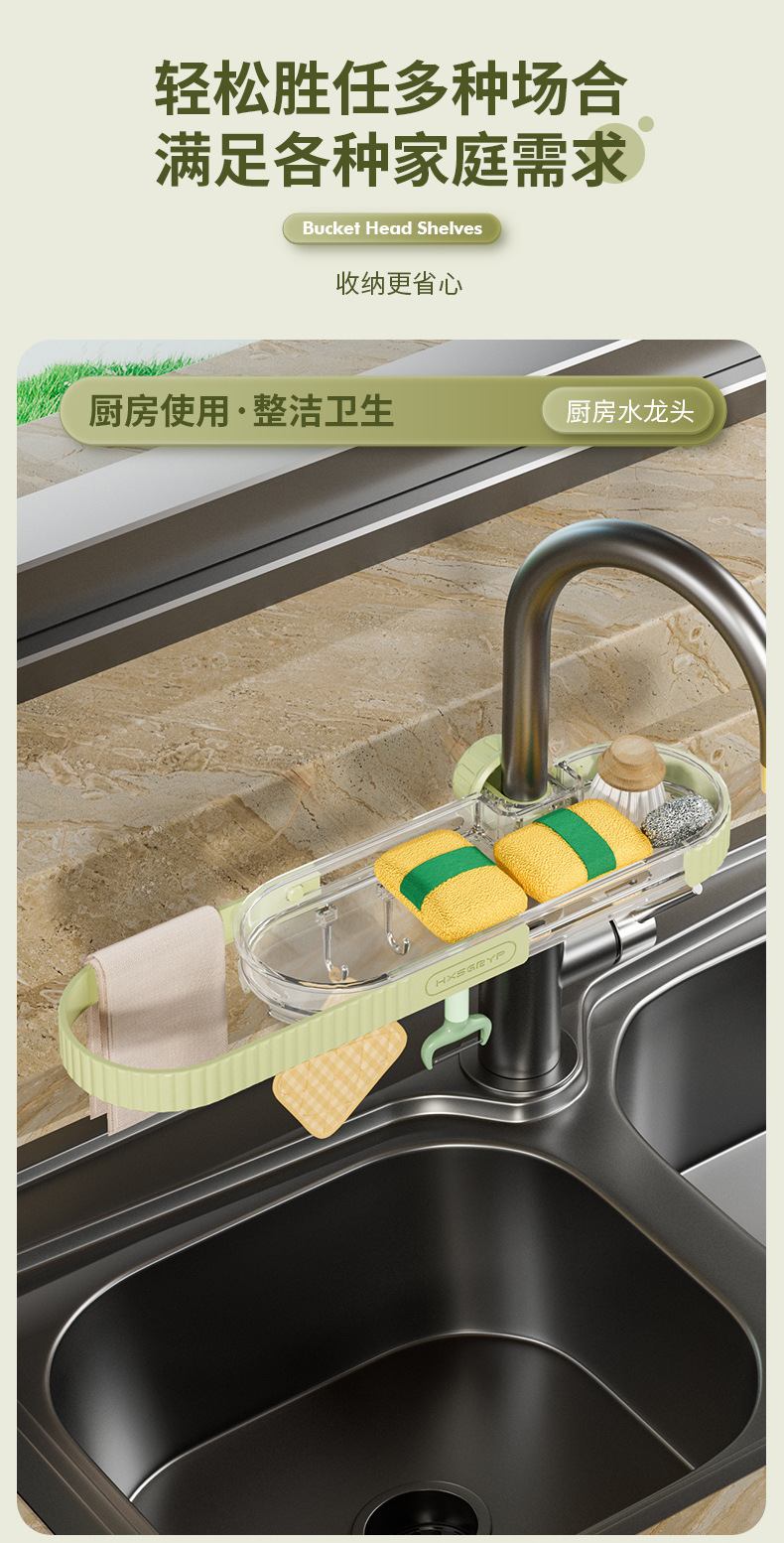 주방 수도꼭지 보관함, 식기 세척대, 싱크대 선반, 배수 바구니, 스펀지 브러시, 수세미, 걸레 보관함