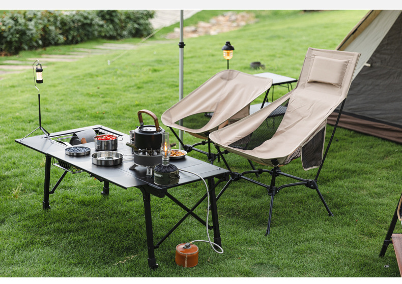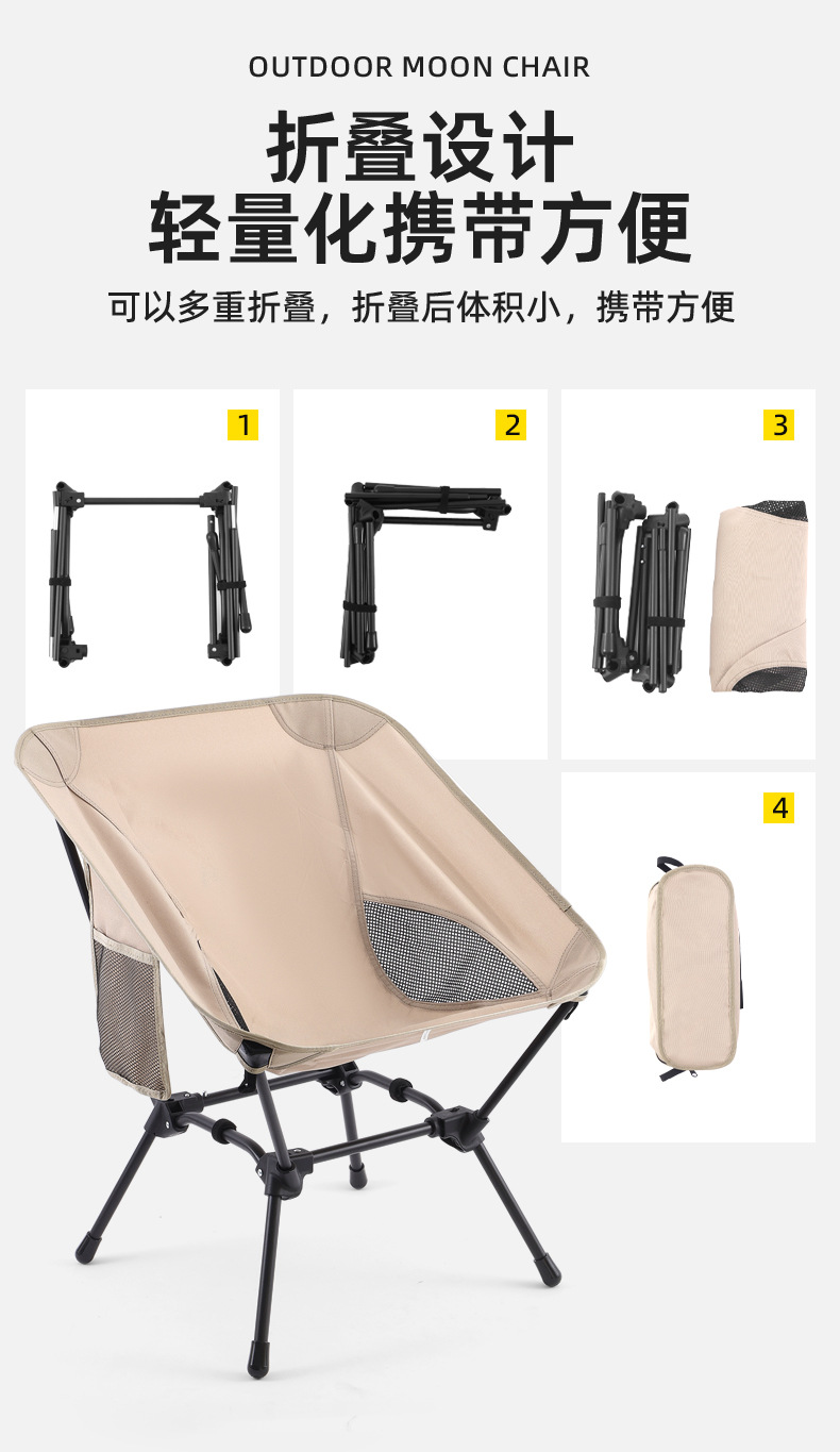 야외 접이식 달 의자 캠핑 피크닉 등받이 의자 자체 운전 바베큐 휴대용 의자 높낮이 2 사용 레저 의자
