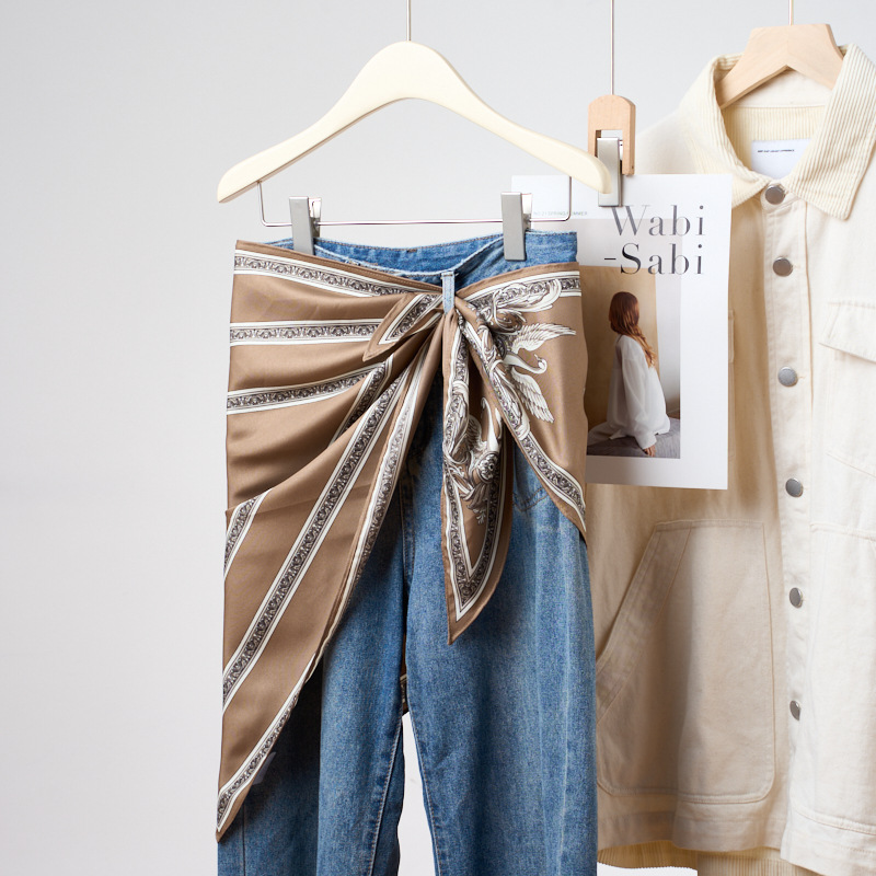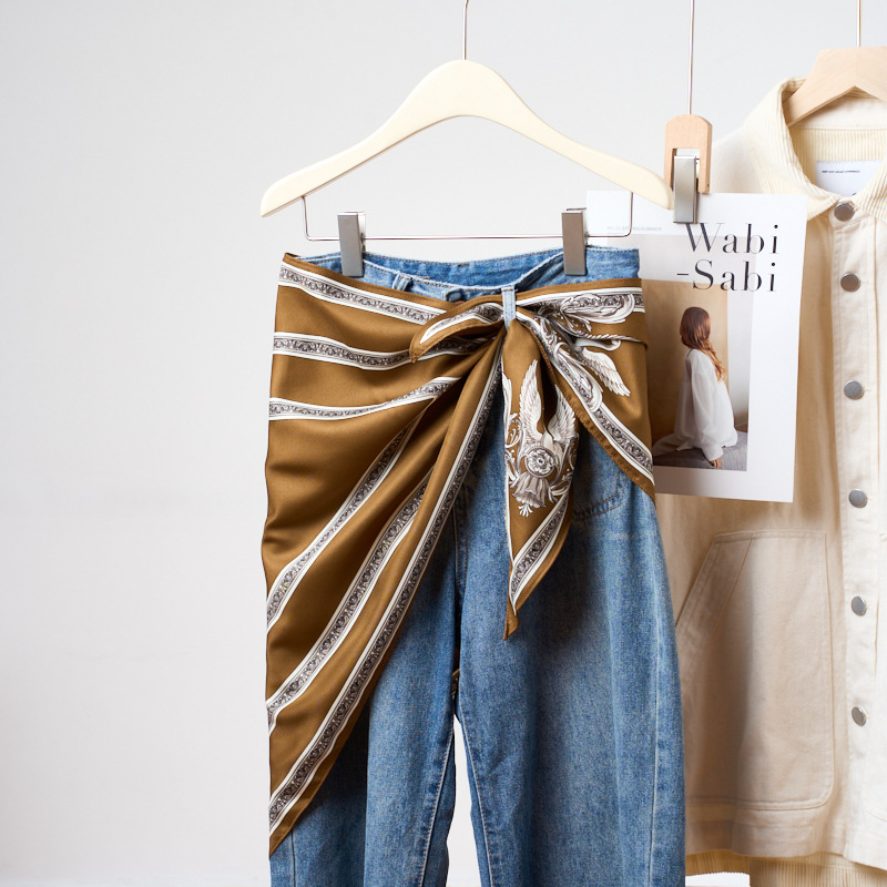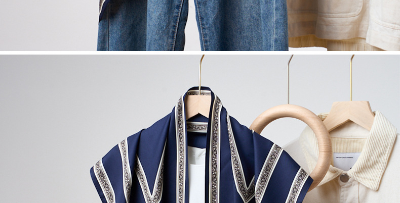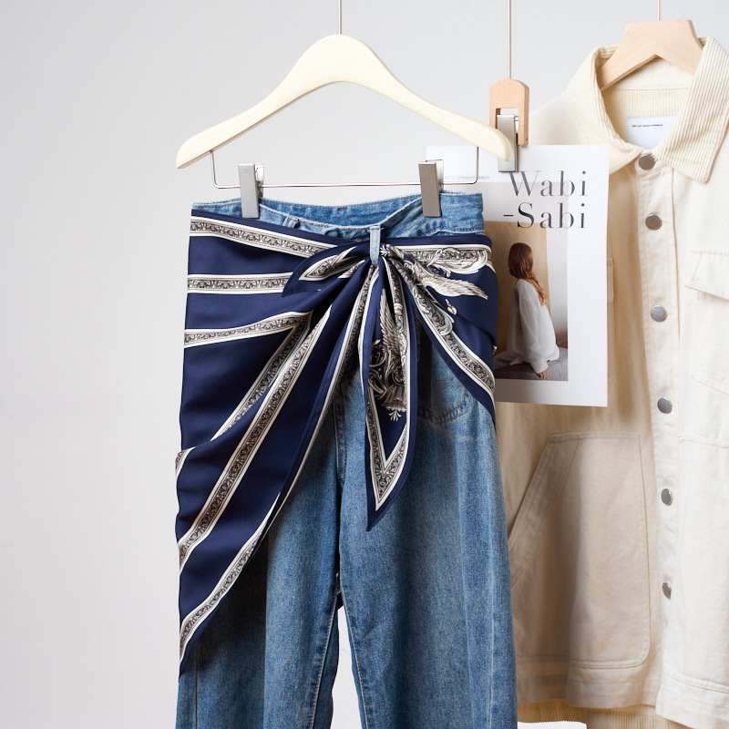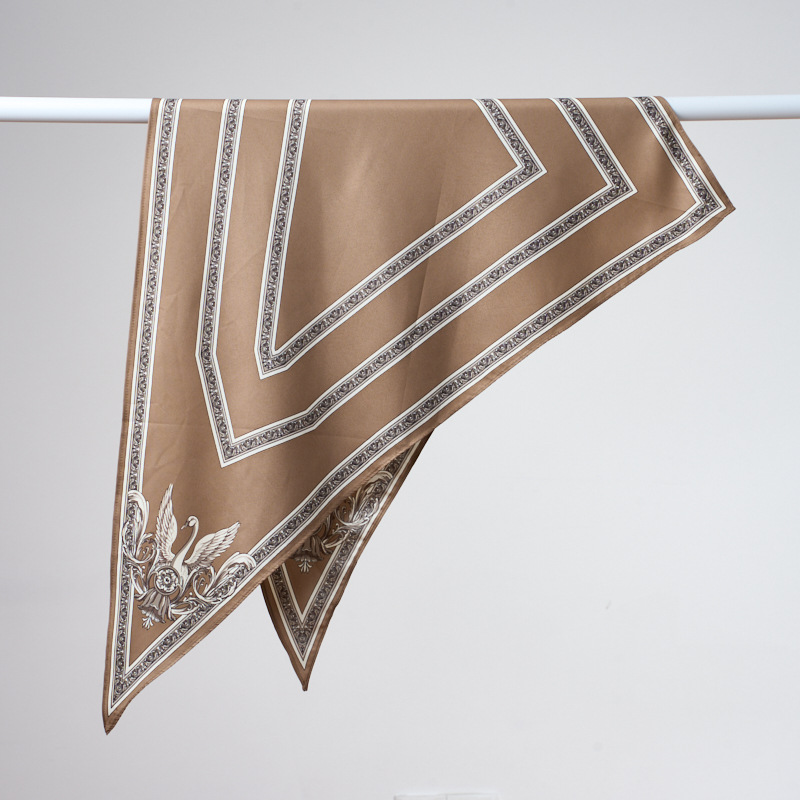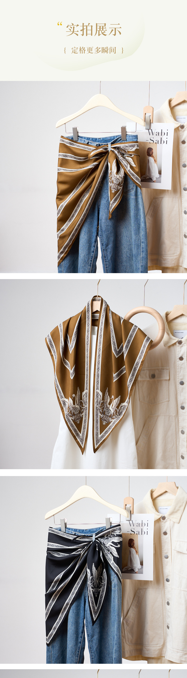 새로운 패셔너블한 한국식 장식 허리띠, 자외선 차단제 및 시원한 느낌의 삼각 스카프, 여성용 고급 모조 실크 스카프스토어 가기