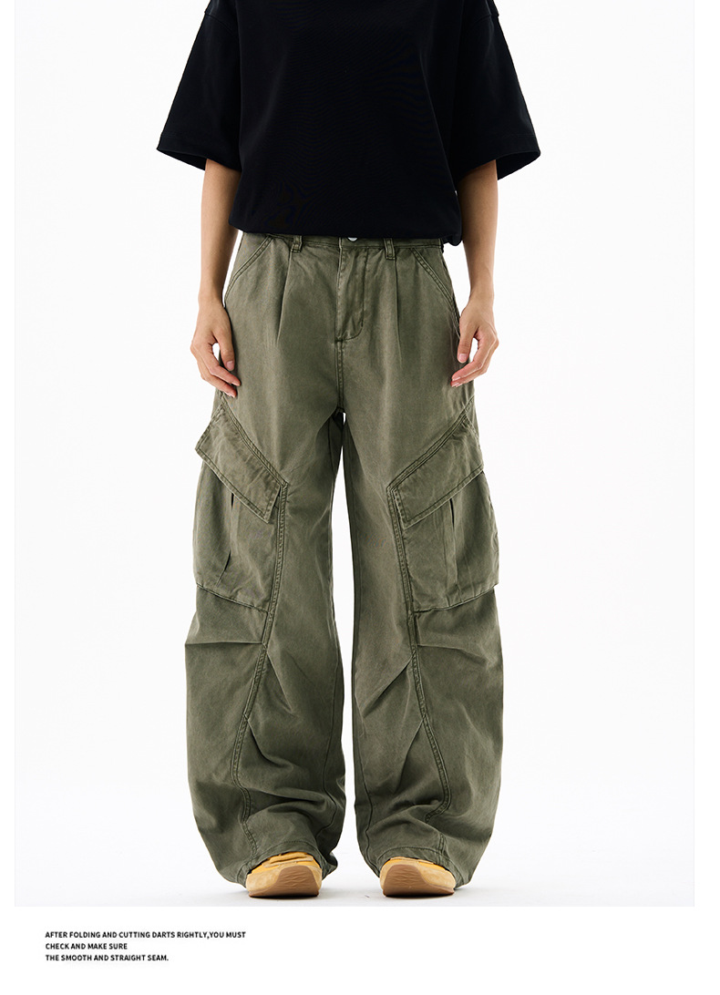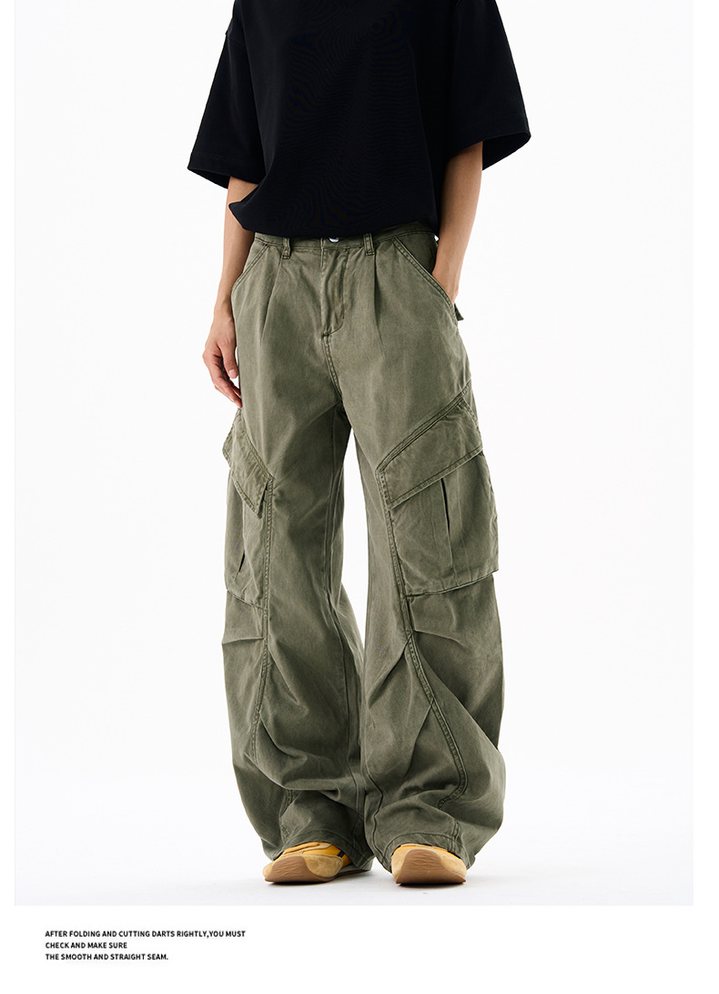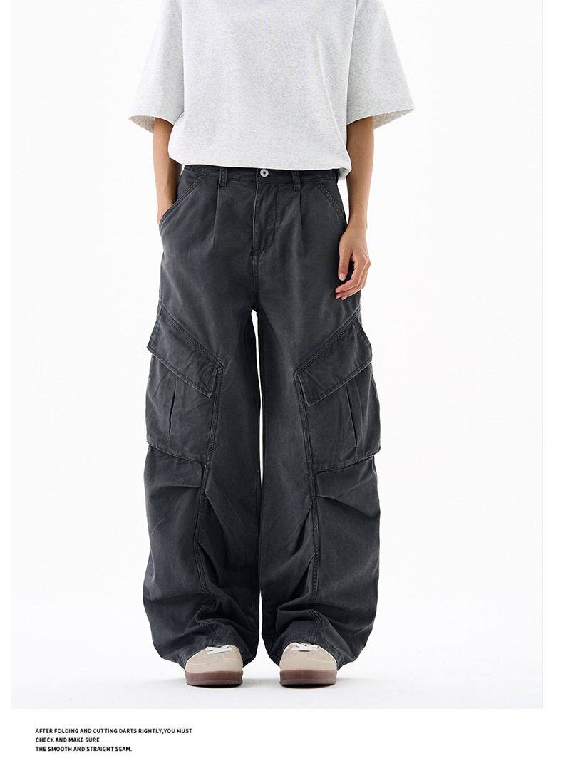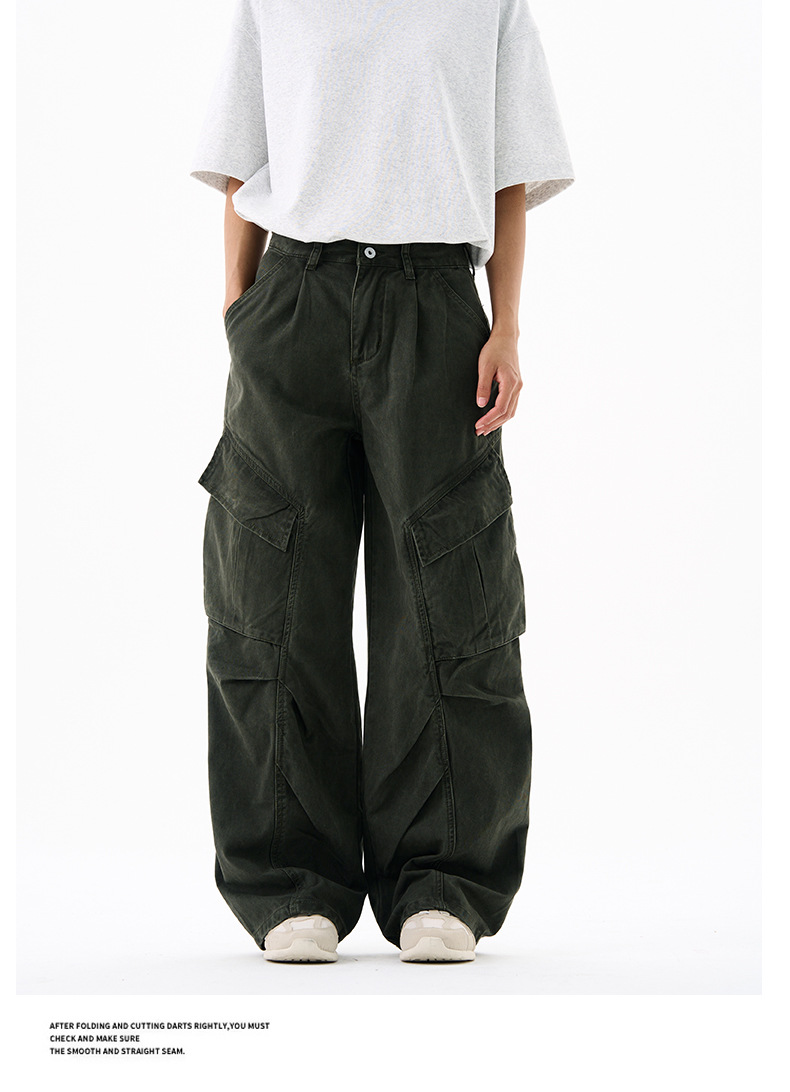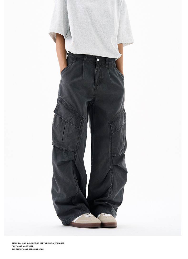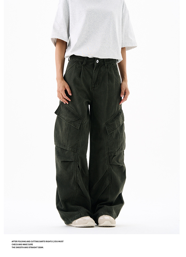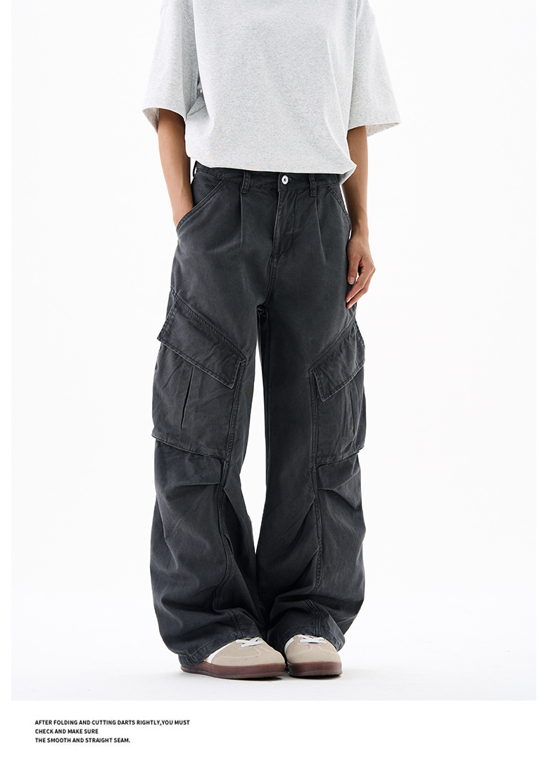Muqiu 남성복 | 미국 트렌디 브랜드 스트리트 레트로 워싱 오버올 남녀 동일 스타일 루즈 와이드 레그 캐주얼 바지스토어 가기