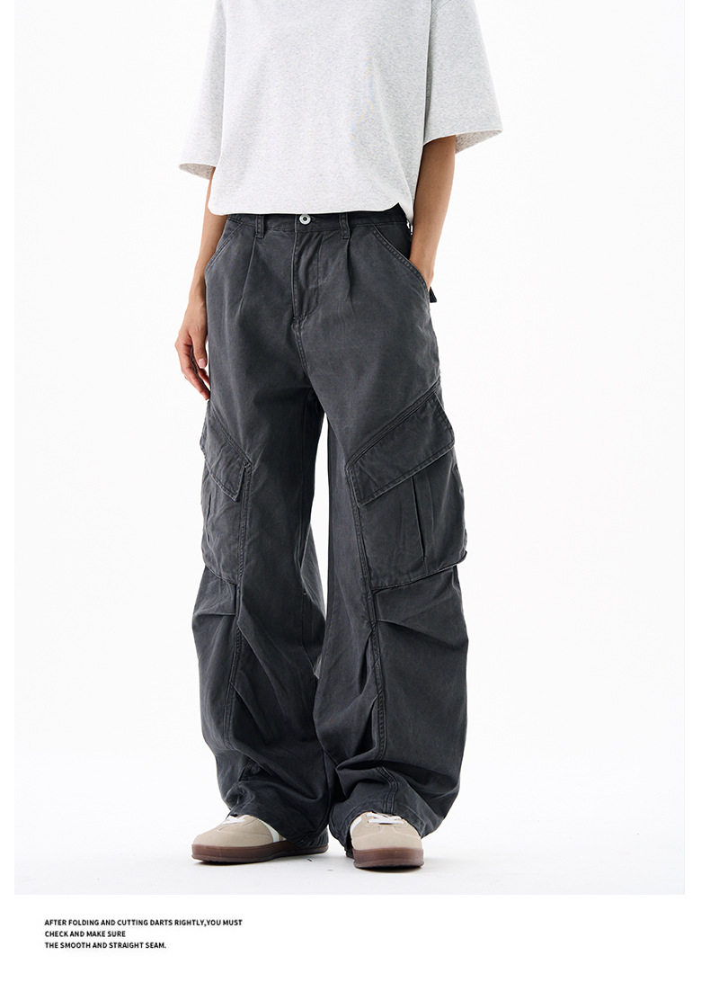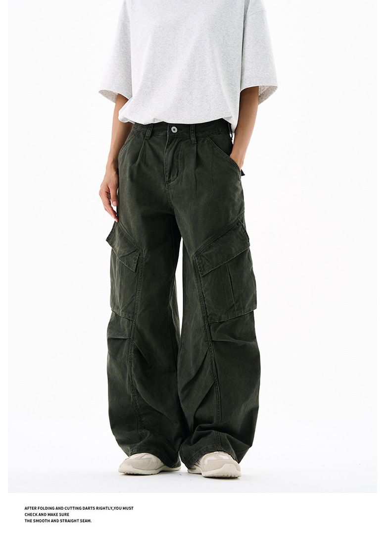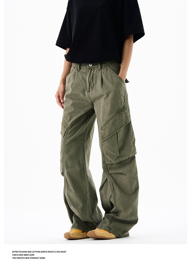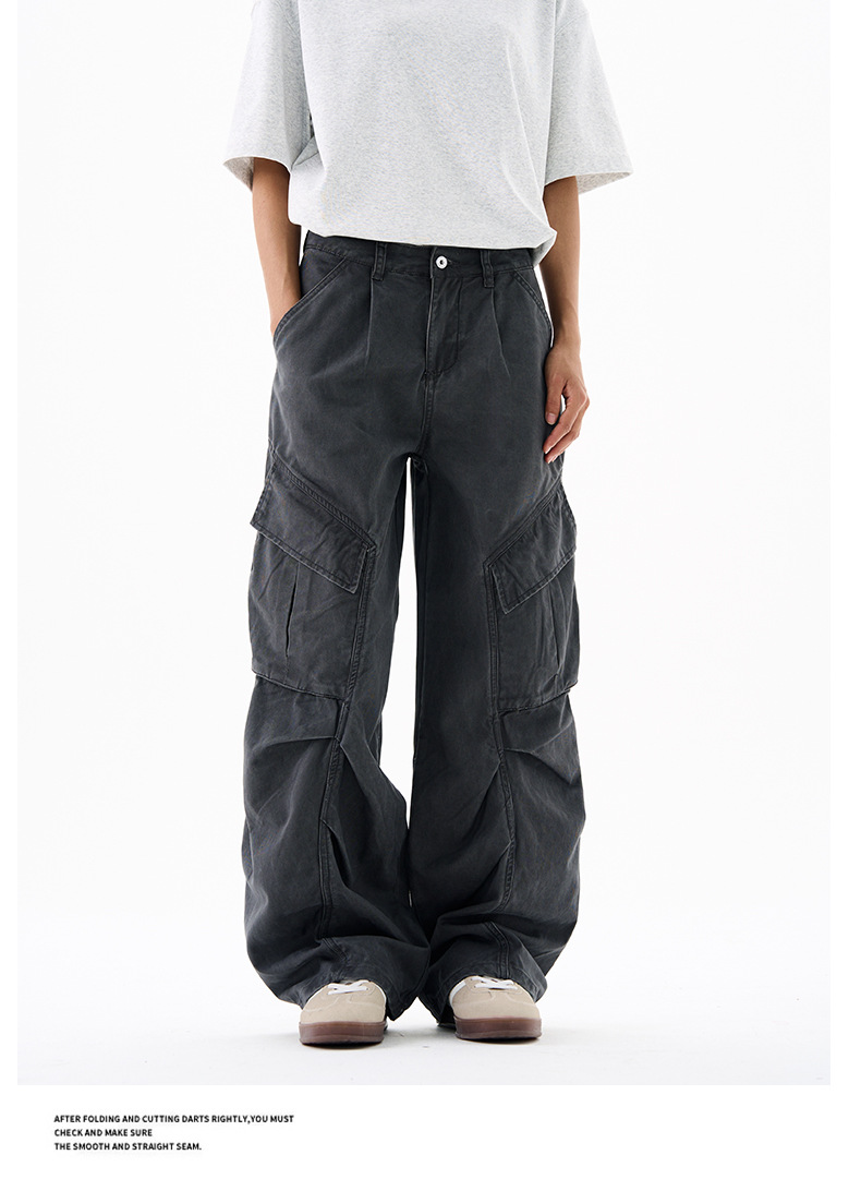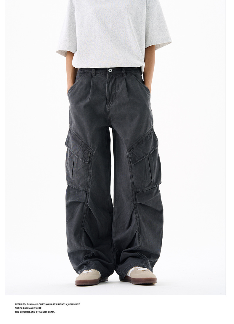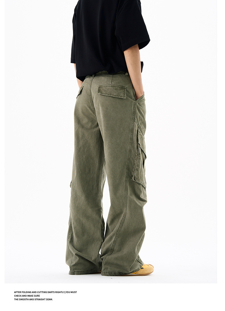 Muqiu 남성복 | 미국 트렌디 브랜드 스트리트 레트로 워싱 오버올 남녀 동일 스타일 루즈 와이드 레그 캐주얼 바지스토어 가기