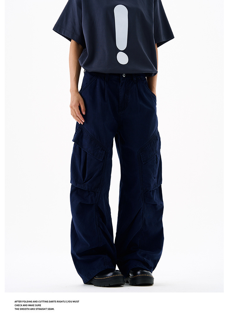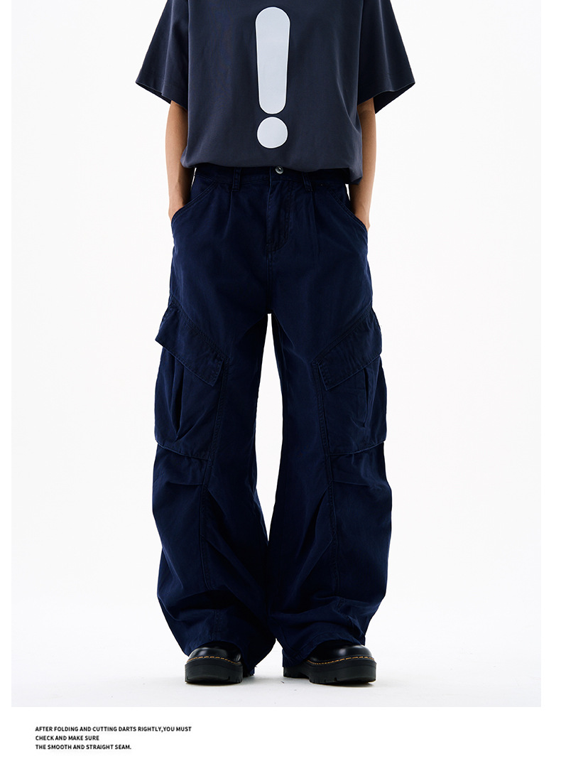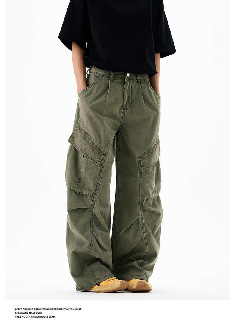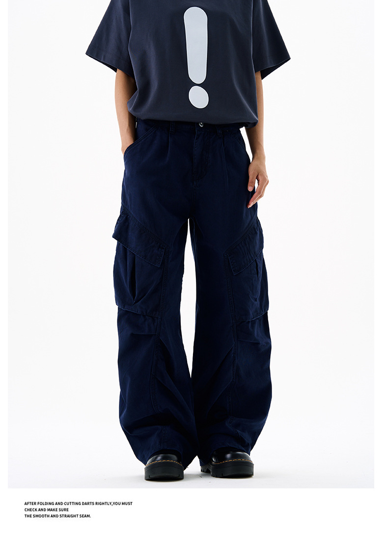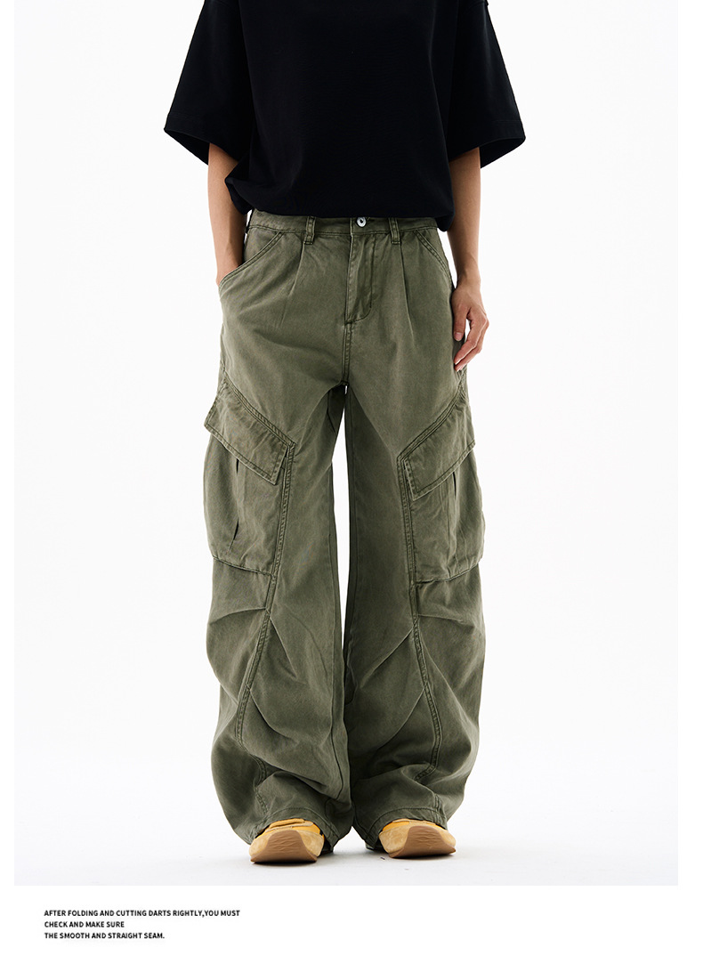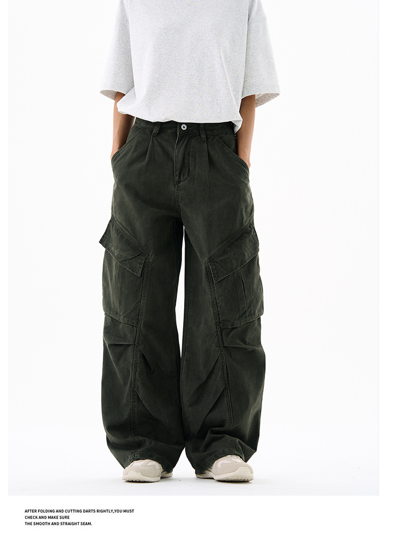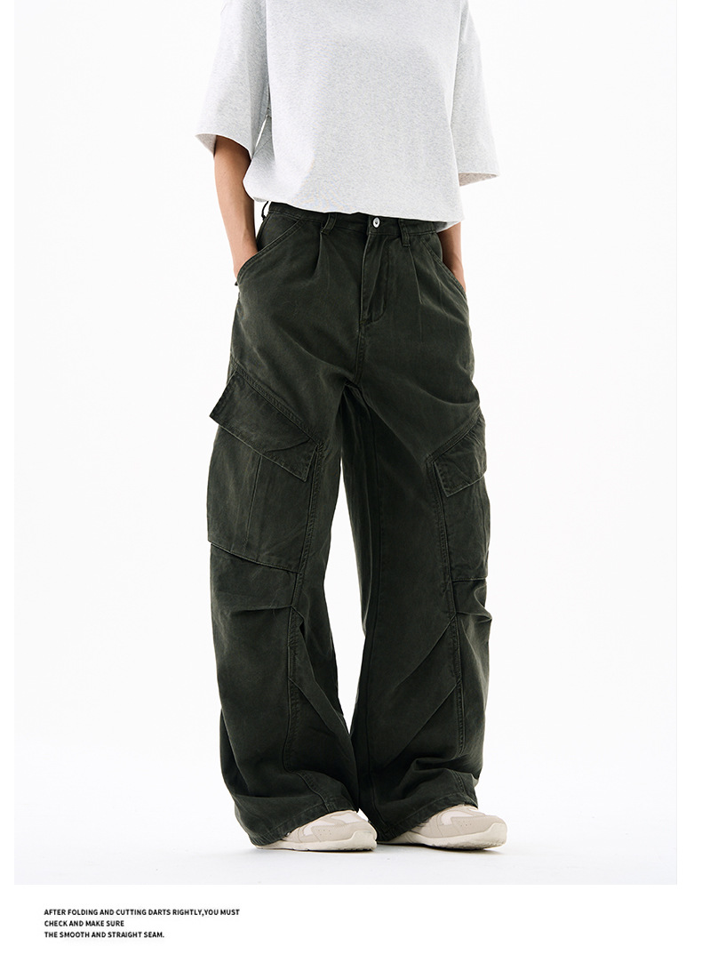 Muqiu 남성복 | 미국 트렌디 브랜드 스트리트 레트로 워싱 오버올 남녀 동일 스타일 루즈 와이드 레그 캐주얼 바지스토어 가기