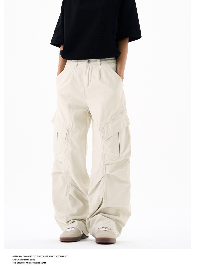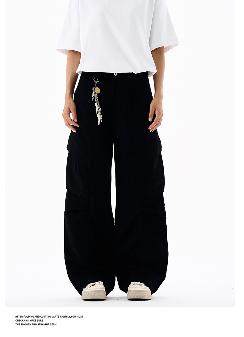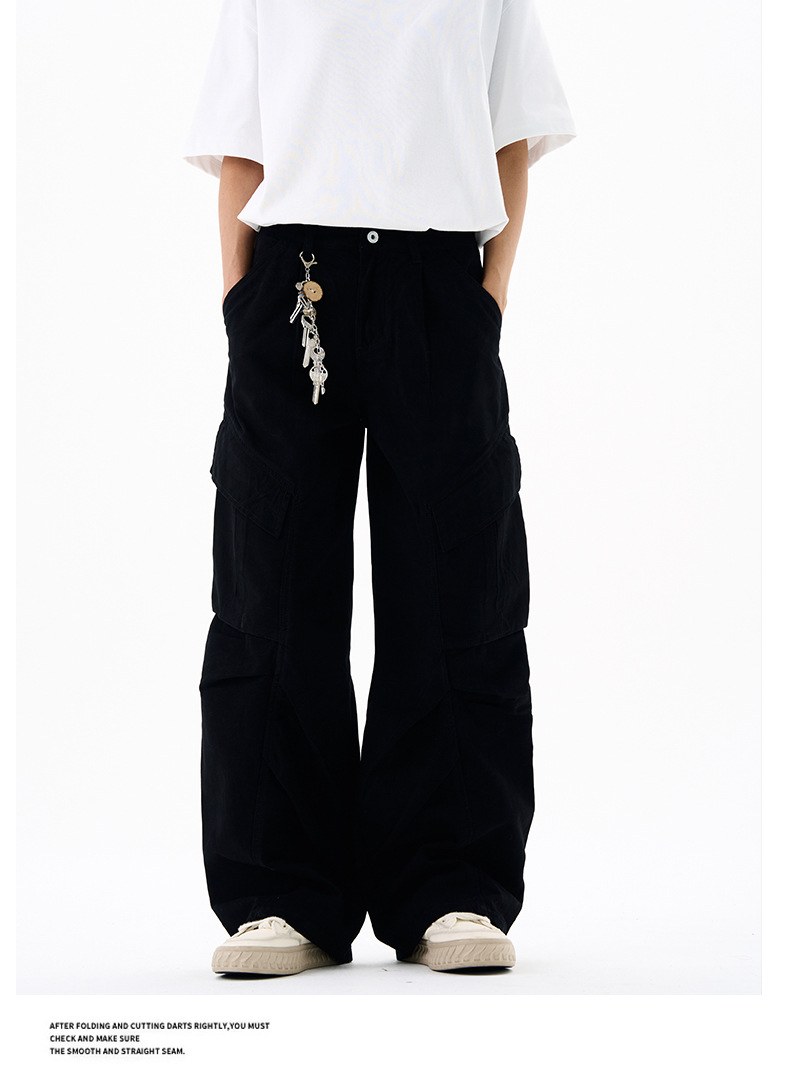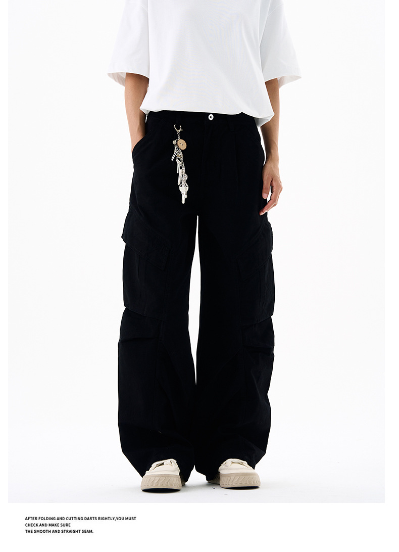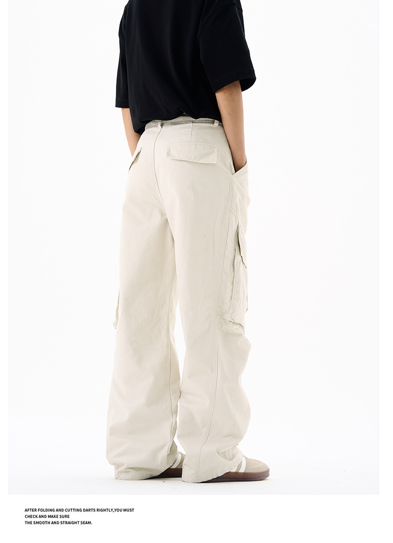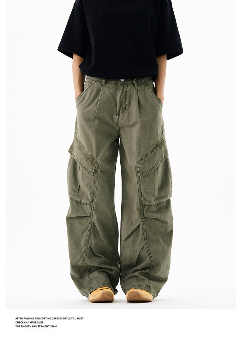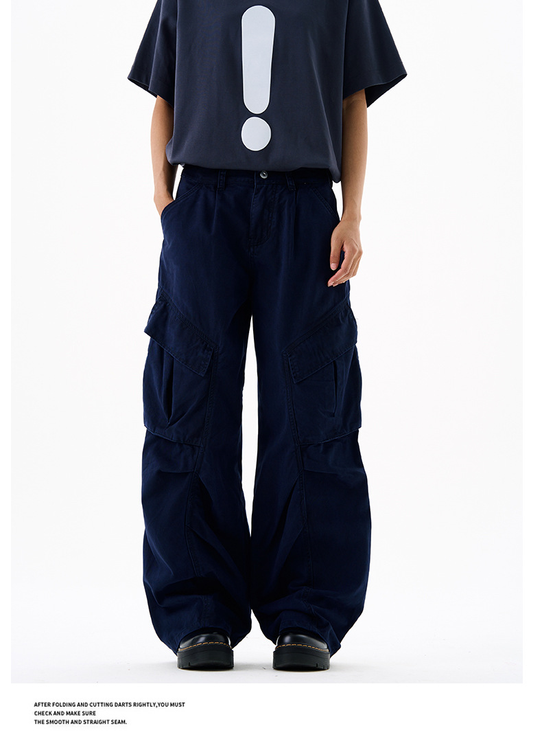 Muqiu 남성복 | 미국 트렌디 브랜드 스트리트 레트로 워싱 오버올 남녀 동일 스타일 루즈 와이드 레그 캐주얼 바지스토어 가기