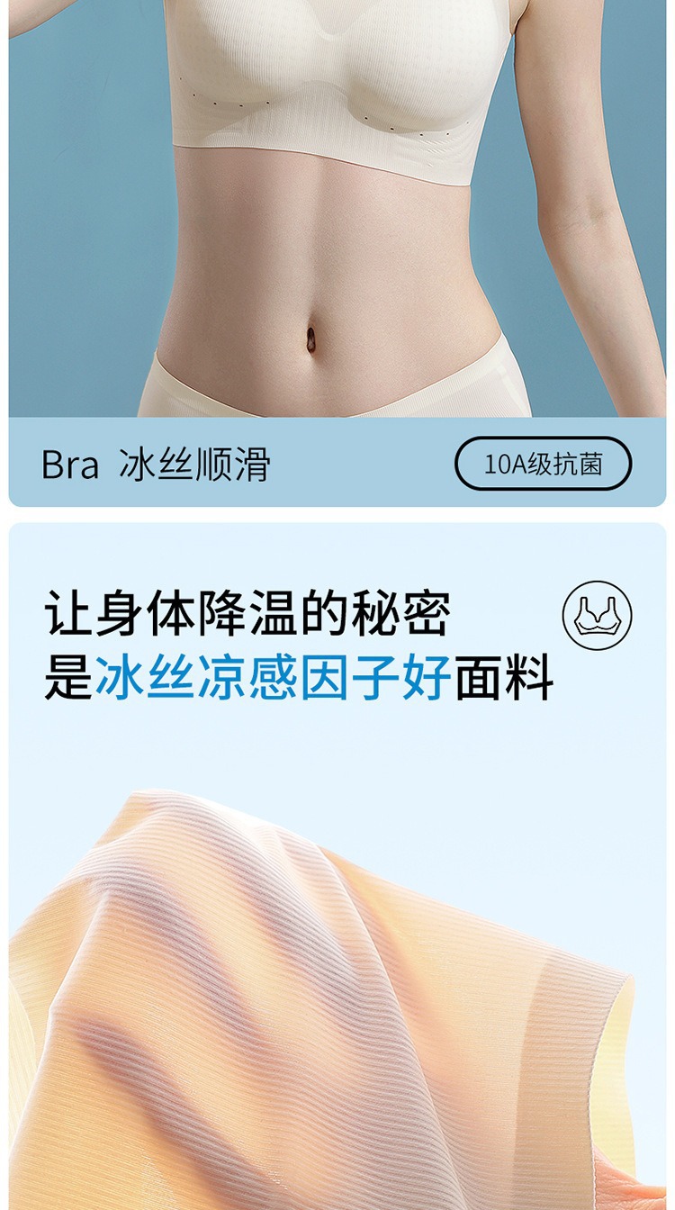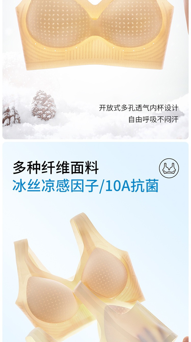 초박형 아이스 실크 브라, 시원한 에어컨 일체형 고정컵, 와이어 프리, 심리스 속옷, 조끼 스타일의 아름다운 등 브라스토어 가기