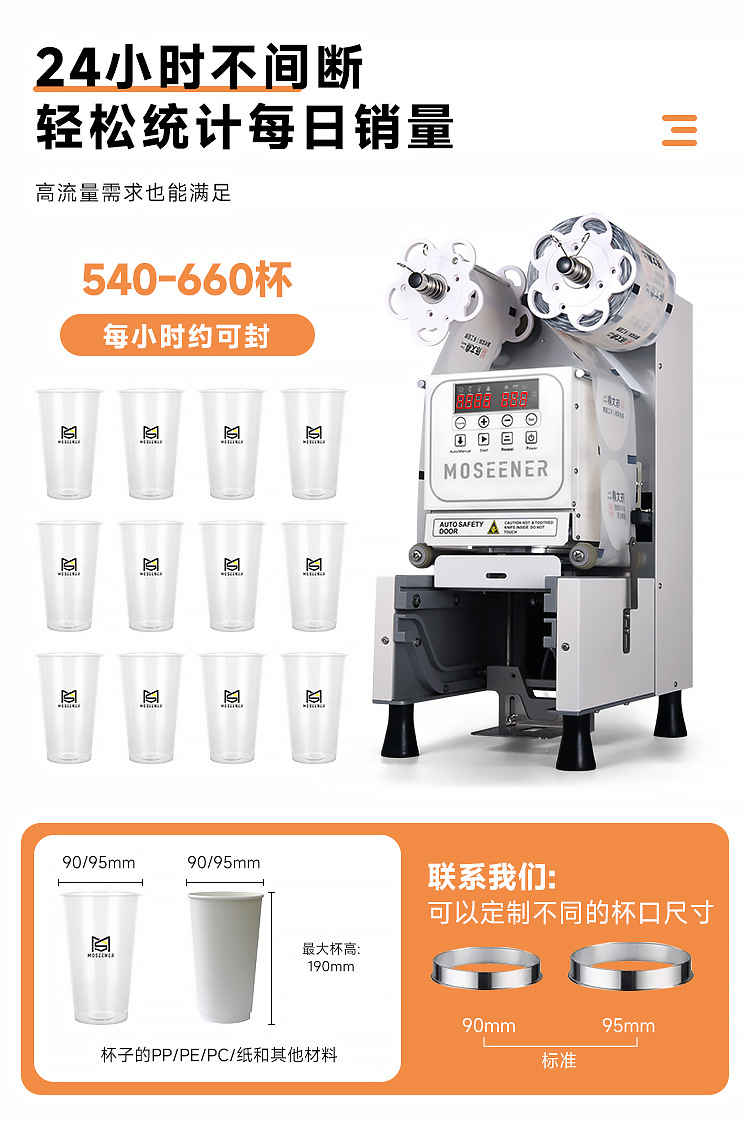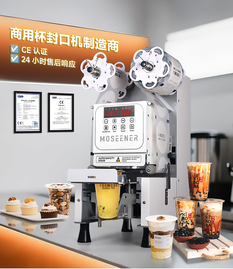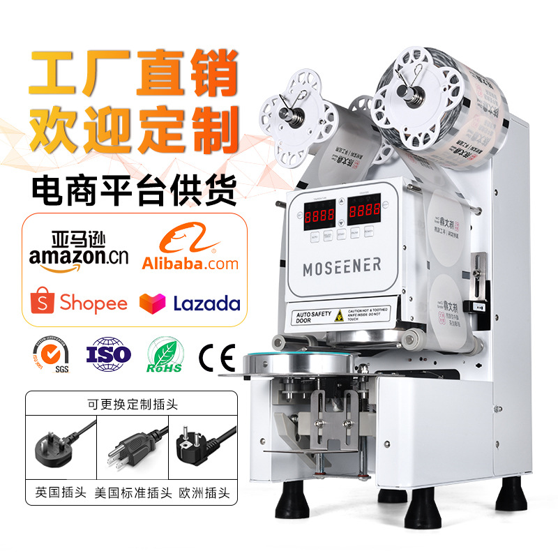 Mosen 완전 자동 진주 우유 차 씰링 기계 종이 플라스틱 이중 목적 두유 컵 씰링 기계 음료 컵 씰링 기계 식품스토어 가기