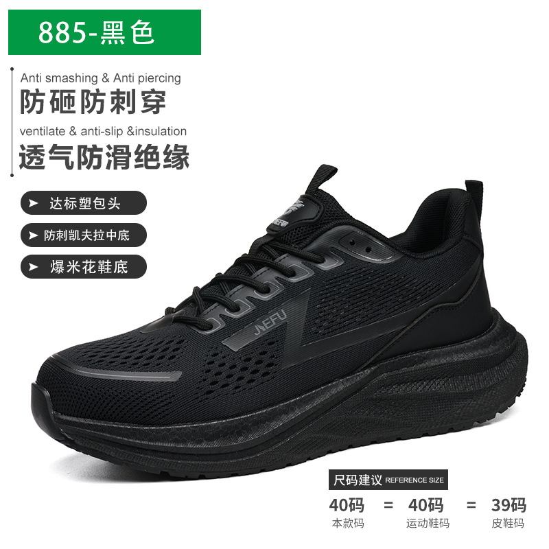 Jiefu 남성용 안티 스매싱 및 안티 스파이크 절연 노동 보호 신발, 발가락이없는 미끄럼 방지 요리사 신발, 가볍고 통기성이 뛰어난 사계절 작업 신발스토어 가기