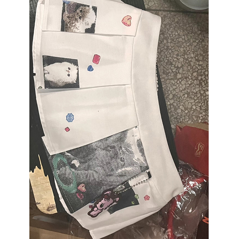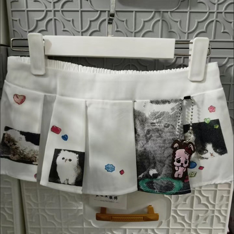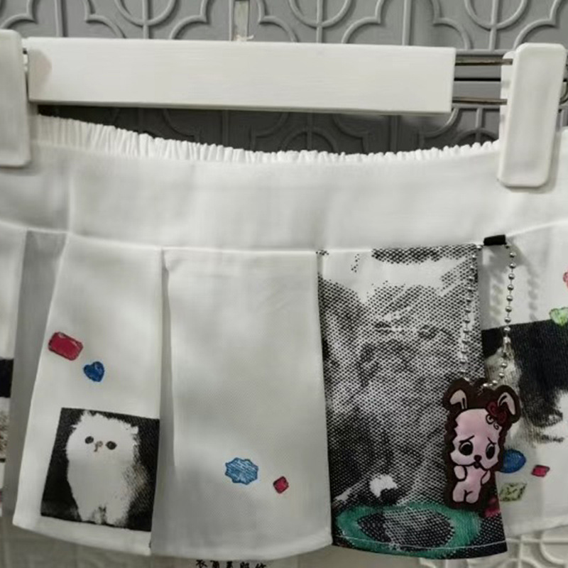 키티 프린트 귀여운 플리츠 힙 커튼 신축성 있는 허리 짧은 스커트 힙 커튼 플리츠 미니 스커트 2025 여름 신제품