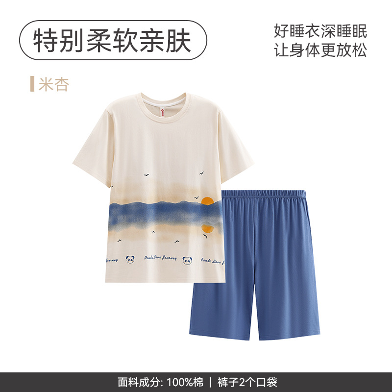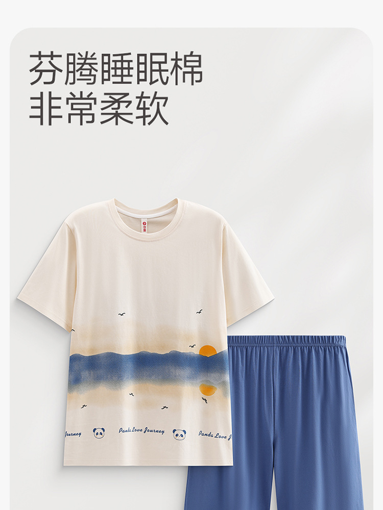 펜텐【슬리핑 코튼】남성용 순면 반팔 잠옷 세트 루즈핏 캐주얼 대형 사이즈 얇은 풀오버 홈웨어스토어 가기