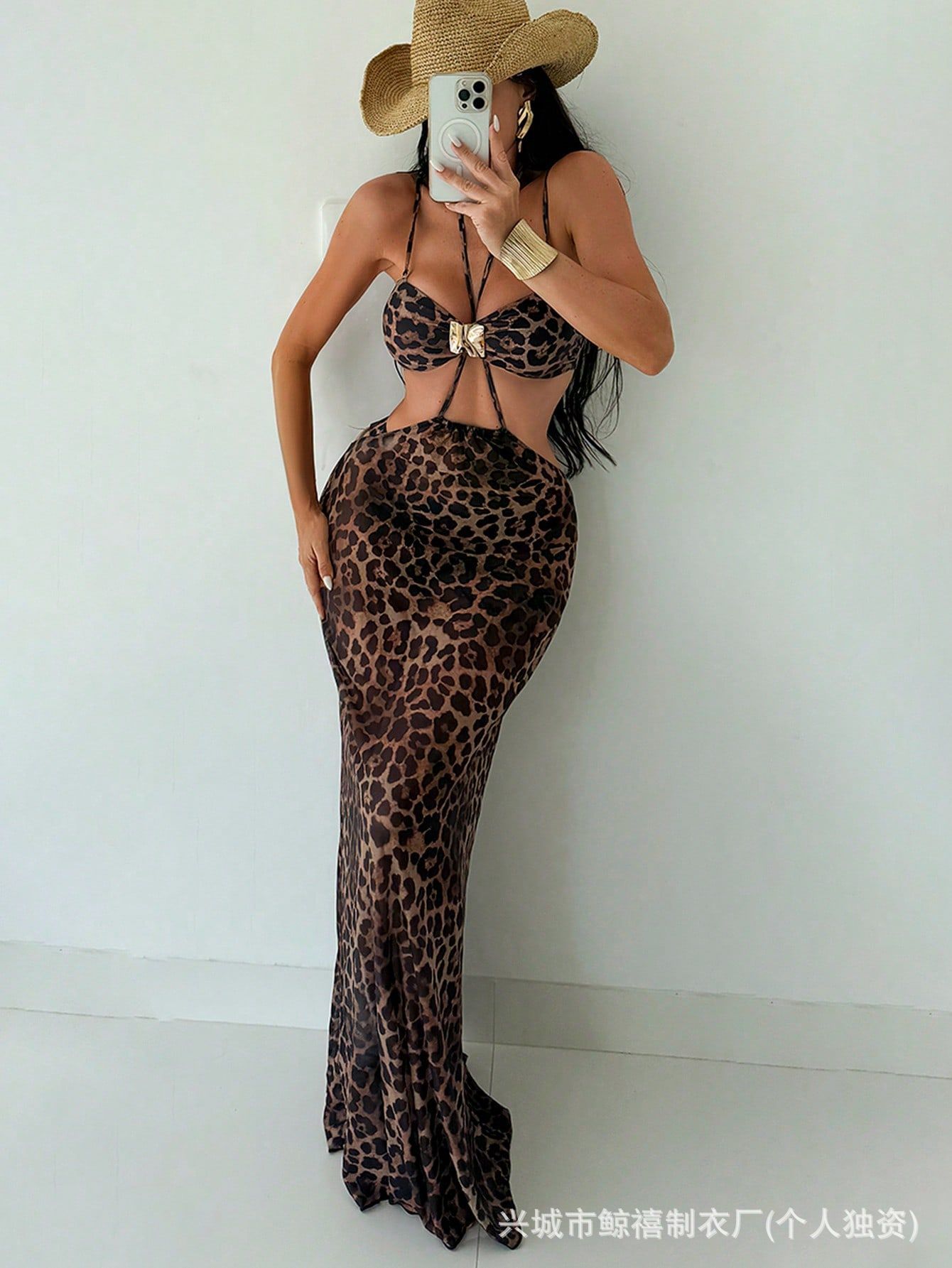 2025 비키니 아마존 유럽과 미국의 레오파드 프린트 섹시한 백리스 스플릿 3피스 여성 비키니스토어 가기
