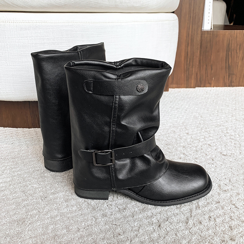 2025년 신형 여성용 웨스턴 스타일 카우보이 부츠, 주름 장식 미드카프 부츠, 레트로 다용도 두꺼운 굽 바지 라이더 부츠