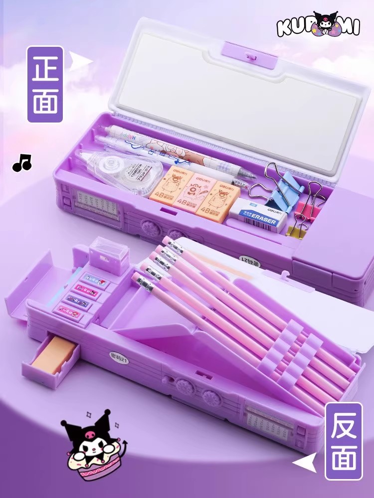 양면 다기능 비밀번호 잠금 문구 상자 쿠로미 필통 어린이 필통 초등학생 대용량 필통