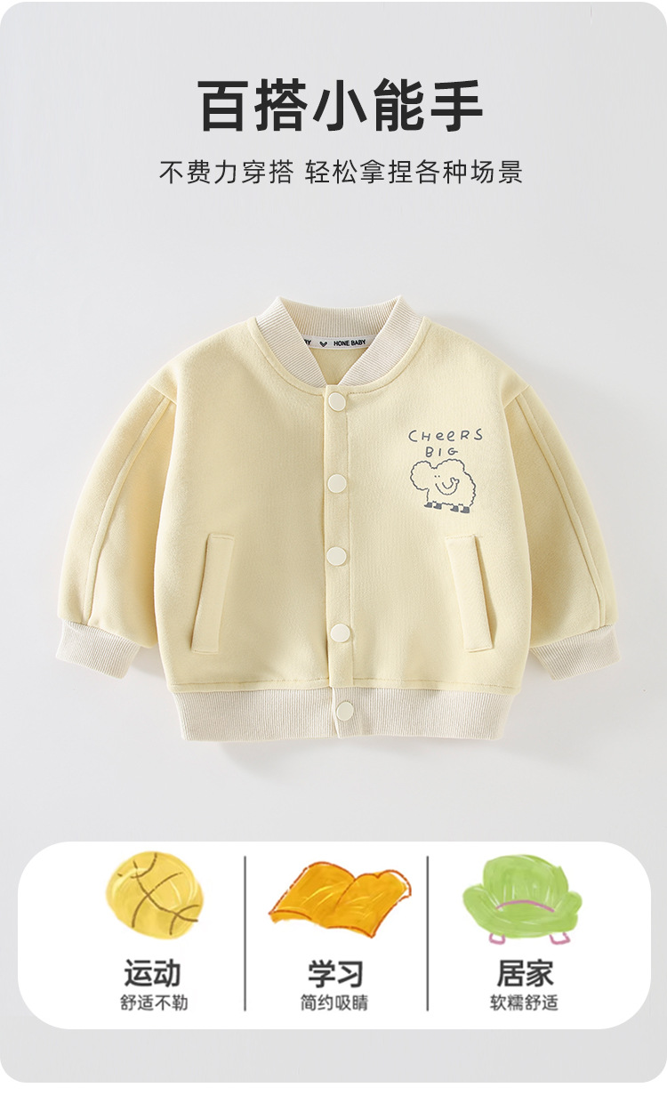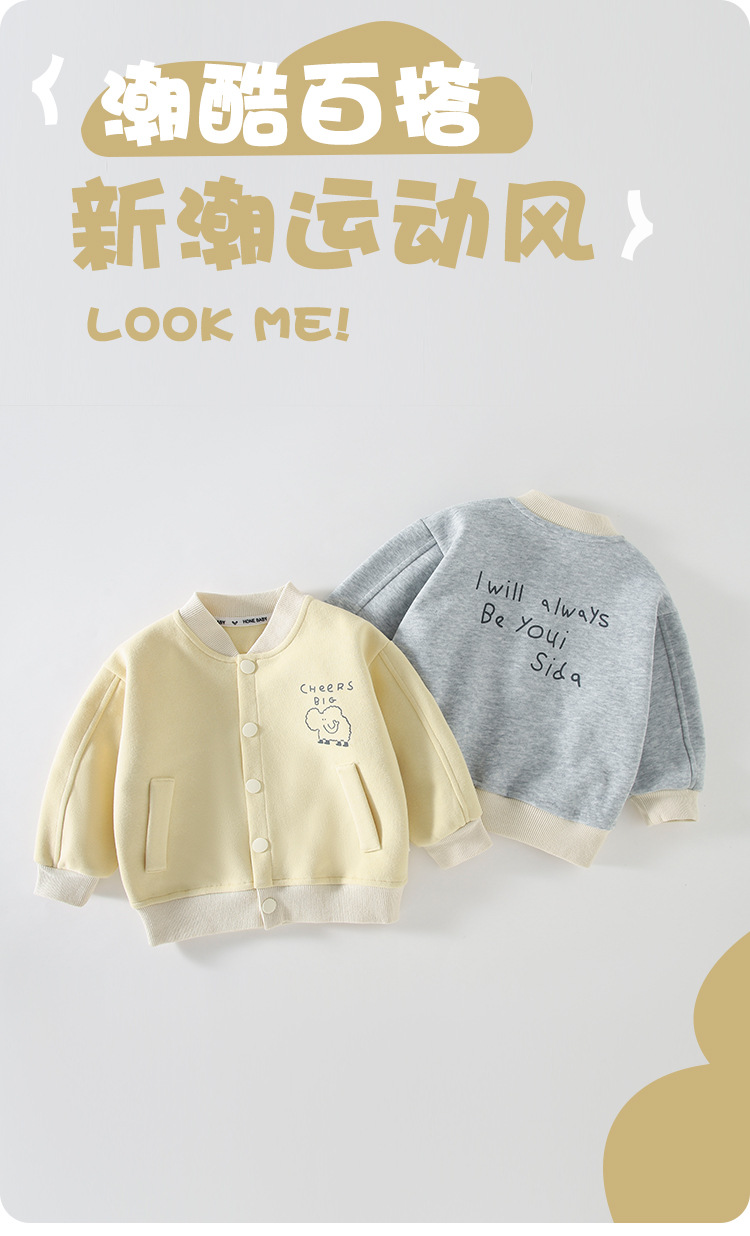 아동용 새 야구 유니폼 재킷, 귀여운 베이비 크림 스타일 탑, 가을 겨울 캐주얼 피부 친화적인 일상 여행복스토어 가기