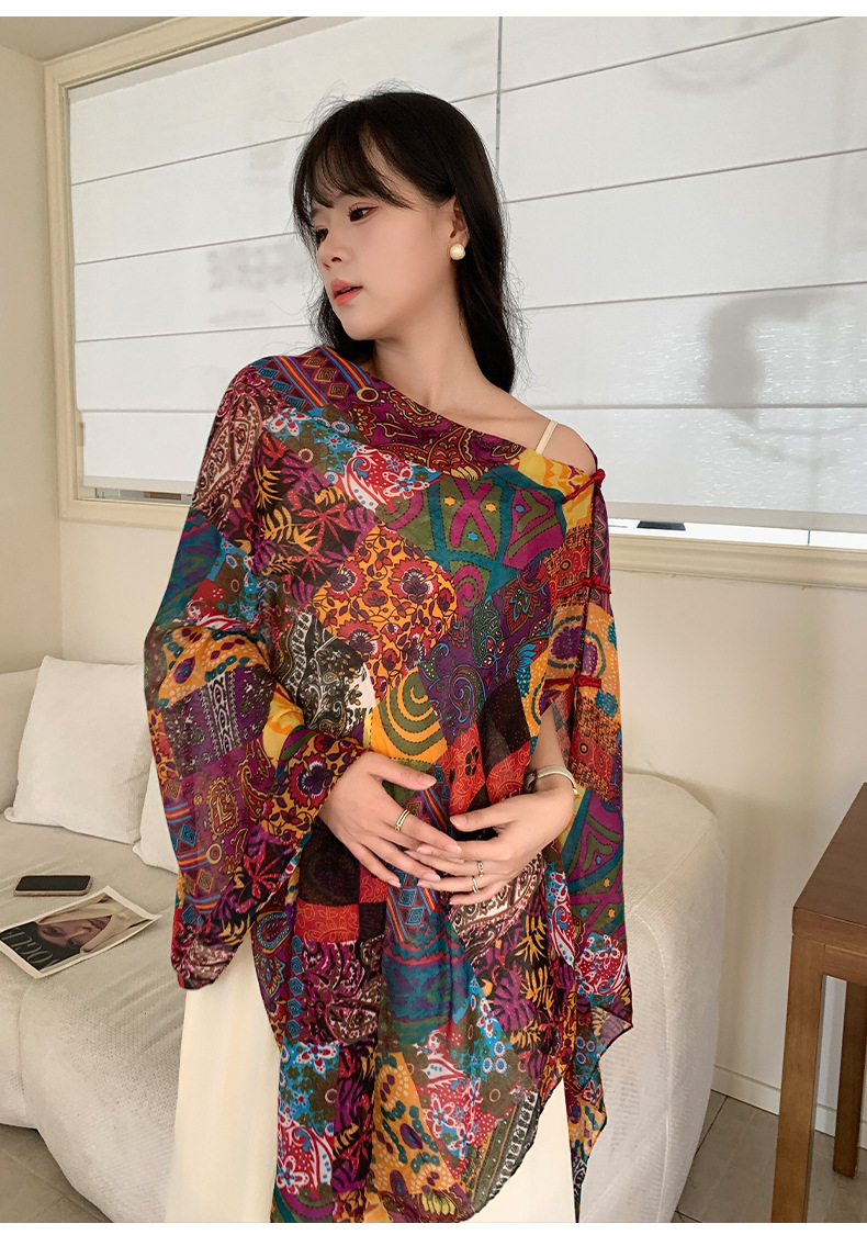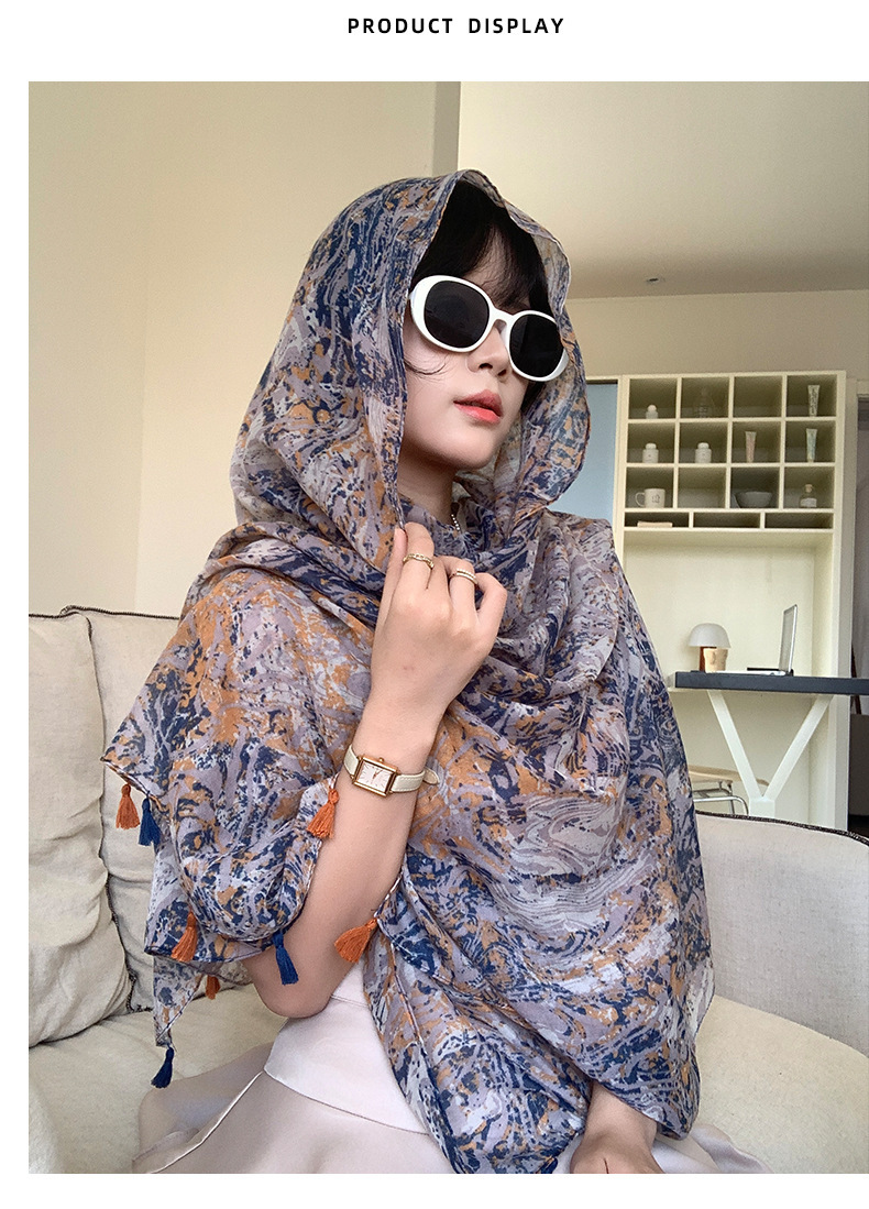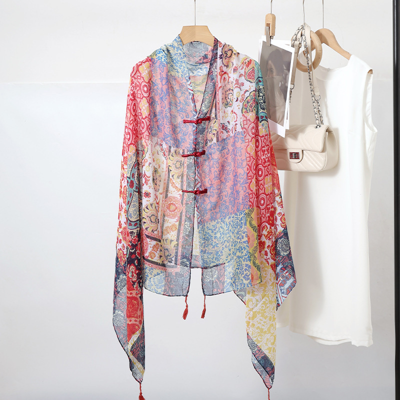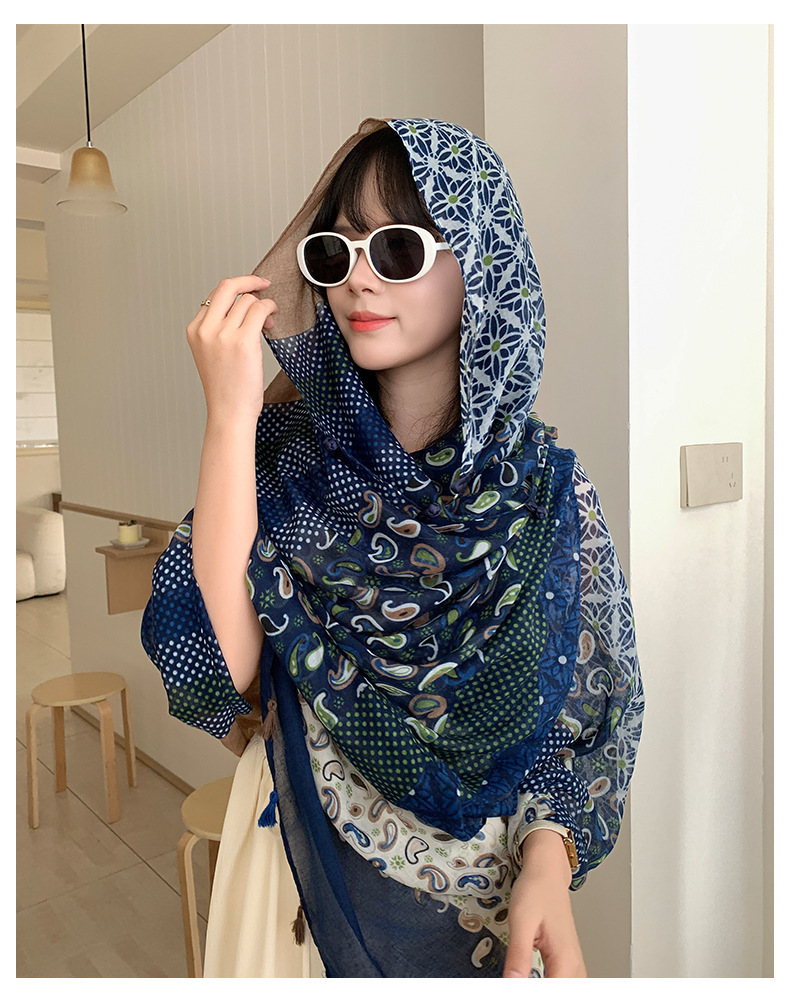 새로운 중국 스타일 버튼 숄 보헤미안 민족 스타일 문학 복고풍 면화 및 린넨 숄 여행 사진 긴 스카프